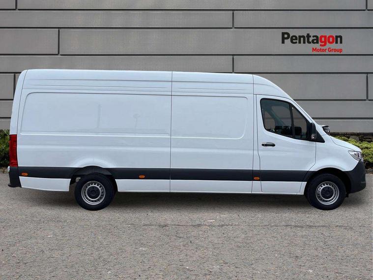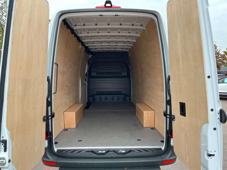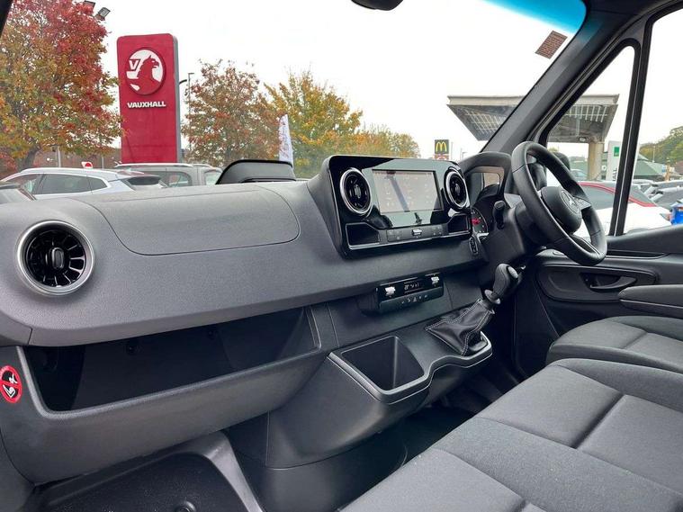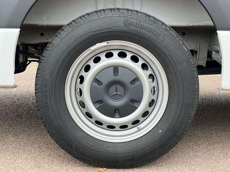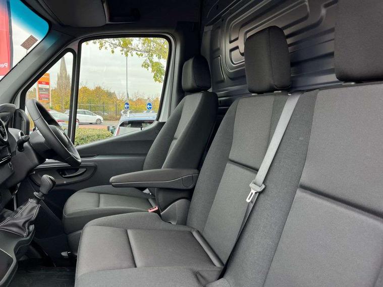 4th generation SCR emission control system, Blind spot assist, Change year G4-I, Digital owner's manual, Electrical components for trailer socket, Engine oil level display at cold start, Instrument cluster with colour display, Intelligent Speed Assist, National version for EU - EFTA - UK, Outside temperature gauge, PAS, Tyre pressure monitoring front/rear, wireless, VIN encoded vehicle data with check digit, MBUX multimedia system, Adaptive brake lights, Bodyshell, additional measures, Bodyshell, additional measures 2, Delete parking lamp, Deletion of vehicle lowering, Electric folding door mirrors with electrically heated and adjustable door mirrors, Electric front windows, Entrance handle on left rear corner pillar, Headlight assistant, Lights for left hand traffic, Noise reduction, Rain sensor, Rear towing eye, Side marker lights, Third rear brake light, Cable duct on rear portal, Cable duct on side wall, Coat hook, Full length partition, Grab handle at load compartment sliding door partition, Height and reach adjustable steering wheel, Interior lights - load/passenger compartment with door cont, Multi function steering wheel, Acoustic package - Sprinter, Smartphone integration package - Sprinter, Attention assist, Breakdown management, Crosswind assist, Driver's airbag, Mercedes-Benz emergency call system, Passenger airbag, Double locking, Emergency glass breaking system, Integration of alcolock interface in electronic ignition key lock, VIN visible from outside, ABS, ASR traction control, EBD, ECO gear 6 speed manual transmission, Front axle with increased load capacity, Hill start assist, Starting aid contact, Vehicle HVO-capable, Resistance-optimised tyres, Spare wheel bracket below frame end,