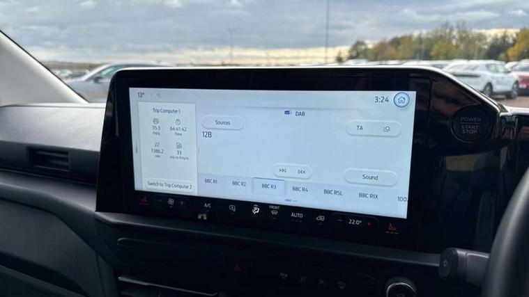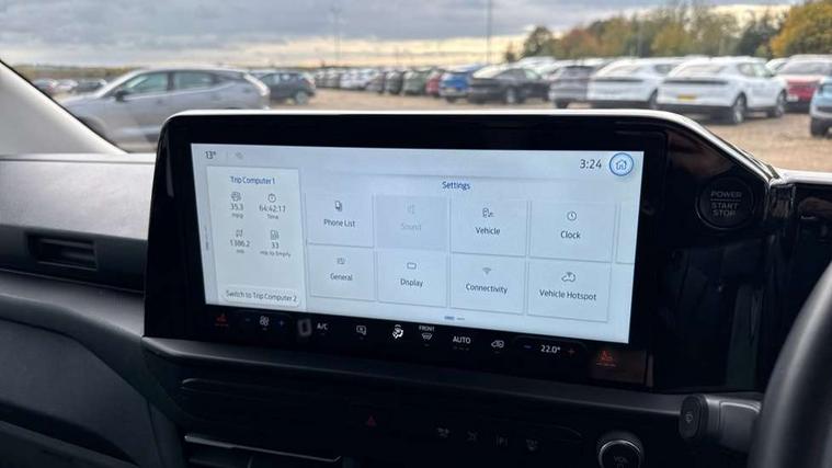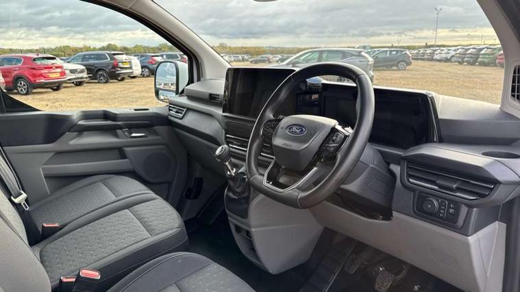 13" Touchscreen, 5G embedded modem, AECS NO SMS/Roll Detect 2G, PAS, Tyre pressure monitor, SYNC 4 - Android Auto/Apple Car Play, advance speech recognition, over the air update capability, Automatic headlights, Body coloured door mirrors, Body coloured front bumper, Body coloured rear bumpers, Daytime running lights, Electric front windows with one touch facility for driver and front passenger, Fixed DSS LED headlamps with auto high headlamp, Front splash guards, Low roof line, Quickclear front window defroster, Rear cargo hinged door, Rear splash guards, Trailer sway control, 8 Load compartment tie down loops, Courtesy light, Interior grab handle with driver's sunglasses holder, LED lights, Locking glove box lid, Sensico gearshift knob, Super bright load compartment lights, Passenger airbag, 2 remote keys, Alcohol Interlock wiring preparation pack, Keyless entry and start, Locking wheel lug nut, Thatcham category 1 alarm, 20L AdBlue tank, ABS, Diesel particulate filter, ESP, Hill launch assist, Traction control, 16" Steel spare wheel, Full wheelcovers,