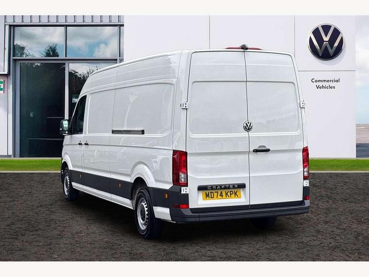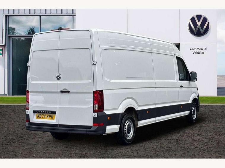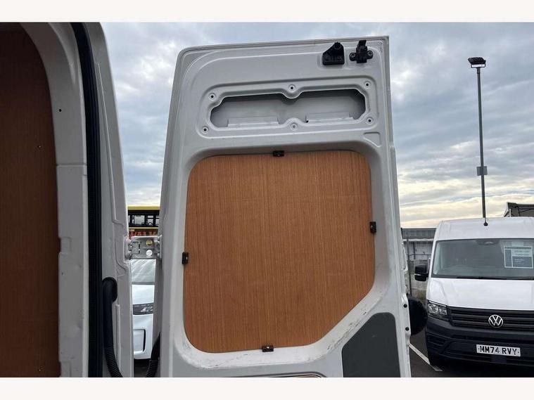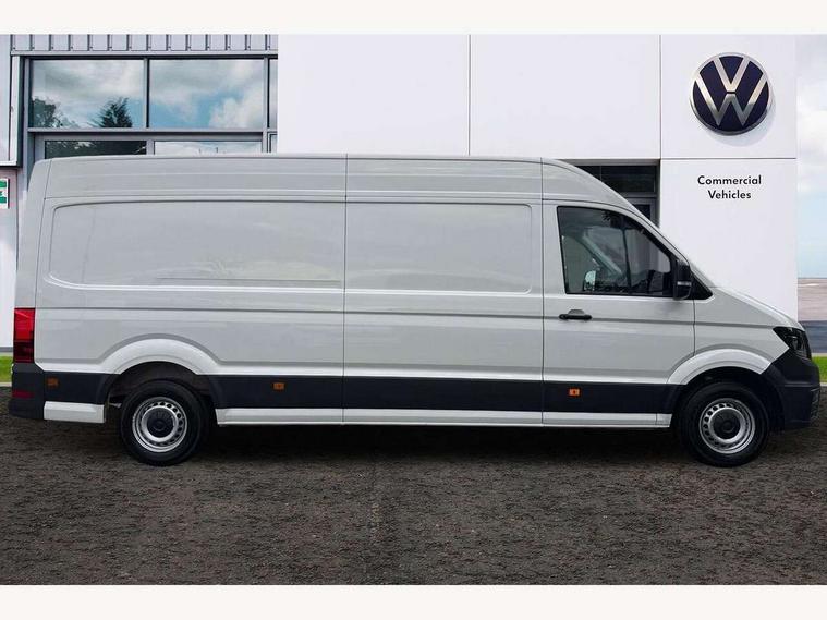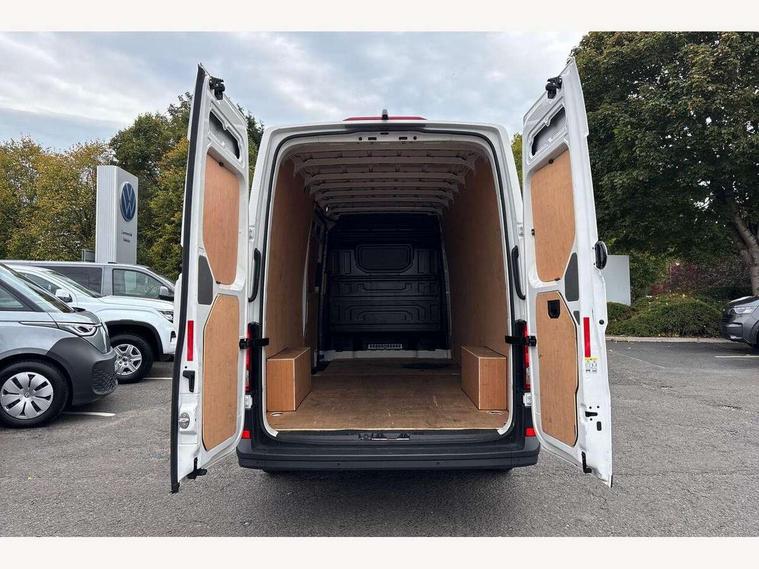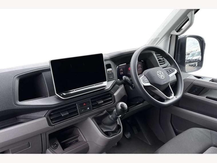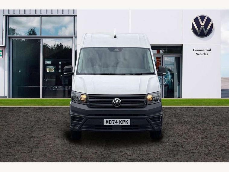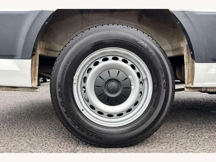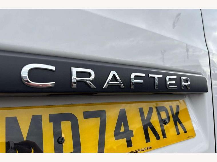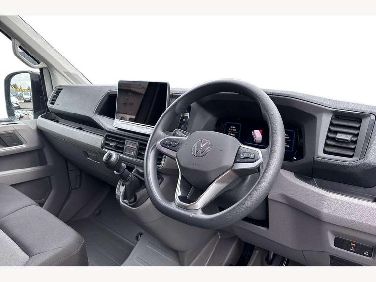 Advanced driver attention and drowsiness monitor, Blind spot monitor, Bluetooth, Digital clock, Digital cockpit with active Info display, Dynamic road sign display, E-call + We connect basic preparation, Forward collision warning with warning and braking reaction to vehicles, pedestrians and cyclists, Front assist including city emergency braking, Instrument cluster, Lane keeping assist, Lights on warning buzzer, Locking fuel cap, Rev counter, Roof console for interior lighting control, Service indicator, Speedometer, USB socket at top of windscreen, Wireless charging, 2 USB C ports in dashboard, DAB Radio, Auto low beam mode, Leaving home function and manual coming home function, Black unpainted plastic front bumper, Cab doors, Convex and wide angle mirror, Driver seatbelt warning light, Electric windows, Heat insulating glass, Indicators in front door mirrors, One towing eye in front, Rear badges, Special identification plate, Touch panel control for exterior lights, Unpainted radiator grille, Windscreen wiper auto control with light and rain sensor, Air recirculation system, Ashtray, Centre console storage tray, CFCU preparation, Charcoal filter, Document holder on centre console, Drinks holders, Electromechanical Servotronic steering, Electronically controlled heating system, Fully adjustable suspension type driver seat, Height adjustable head restraints, Height and reach adjustable steering wheel, Illuminated glove compartment with lockable lid, Interior light, including 2 reading lights, Interior light, switchable by door, Jack and tool kit, Preparation for interface for external use with terminal block, Storage compartments in doors and in step, right, Storage tray on dashboard, Two 12V outlets in the cab (in the dashboard), Without rear side trim panel passenger load compartment, Non-smokers pack - Crafter, 3 point inertia reel belt on all seats, Automatic hazard light with emergency braking, Crosswind assist, Driver and front passenger airbag with front passenger airbag deactivation, Height adjustable seatbelts for outer cab seats, 1 rigid key, Central locking system with Keyless Go without SAFELOCK entry - Keyless entry and start, Engine immobiliser, ABS, Automatic post collision braking system, EBA, EBD, EDL, Electronic parking brake - hill hold control, ESP, Front disc brakes, HBA, Hill start assist, Start and stop system with regenerative braking, TCS, Hub cap covers,