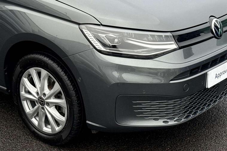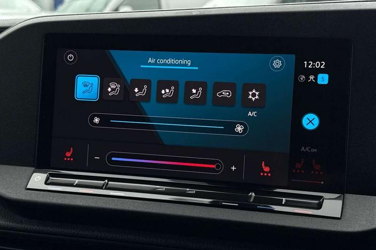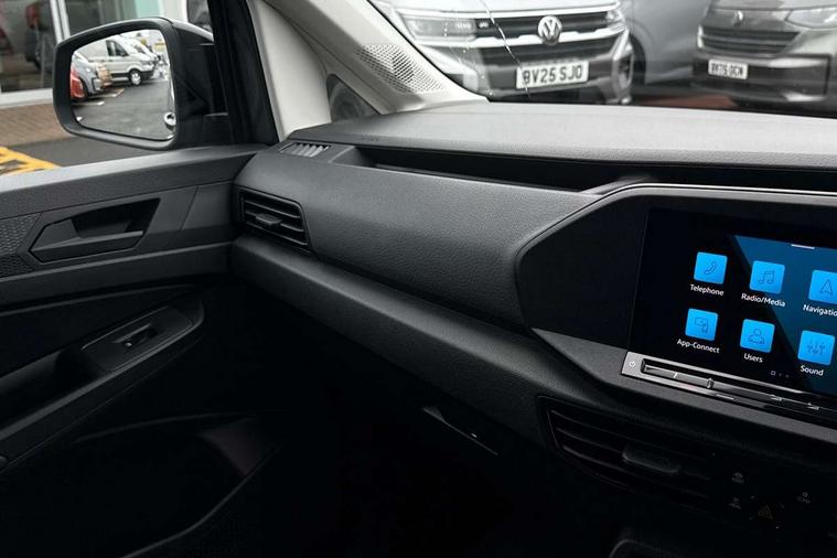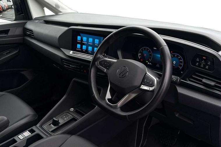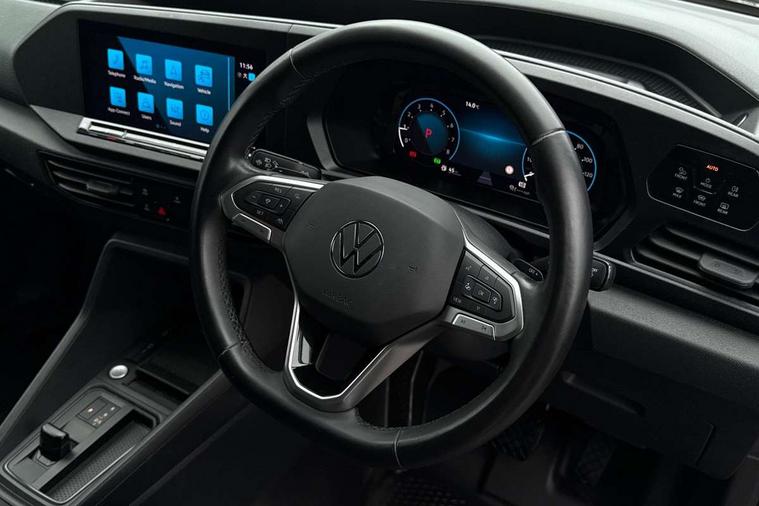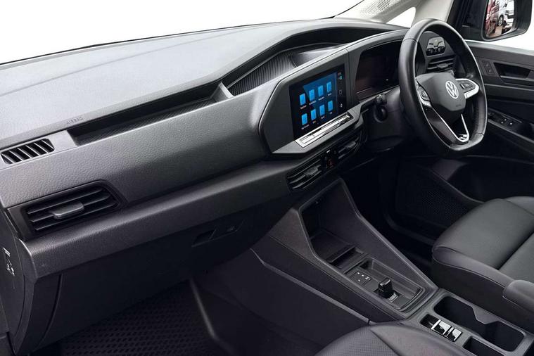Driver alert system includes drowsiness detection, Emergency call control unit with eCall, Multi-function Display, Seatbelt warning indicator, Service indicator, Start-stop system with regenerative braking, DAB Radio, We Connect Plus Preparation, Automatic hazard light activation under emergency braking, Black painted exterior mirror housings, body-colored door handles and Silver sliding door rail, Body coloured bumpers, Electric front windows, Exterior mirrors, power-folding, power-adjustable, separately heated, Heated windscreen, LED rear combination lights, LED rear tail lights, Roof rail preparation, Windscreen wiper with variable intermittent delay and wash-wipe system, Armrests for both front seats, Electronically controlled heating system, ergoComfort seats for driver, Interior light in headlining, Lockable glove compartment door with light, Manual height adjustment for front seats and seat cushion inclination and depth adjustment on drivers seat, Multi function leather steering wheel, Power-adjustable lumbar support for drivers seat, Reach and rake adjustable steering column, Six lashing points for securing loads, Steering wheel paddle shift, Storage compartments under driver and front passenger seats, Sun visors with mirror, airbag label on front passenger sun visor, 3-point seat belts in front, with pretensioner and height adjustment, Driver and front passenger airbag with front passenger airbag deactivation, Anti-theft alarm system, interior monitoring, backup horn, and towing protection, Electronic engine immobiliser, Remote central locking with deadlocks, interior locking, Anti locking braking system (ABS), Automatic post collision braking system, Electric parking brake with auto hold function, Electronic brake force distribution (EBD), Electronic differential lock (EDL), Electronic stabilisation programme (ESP), Emergency brake assist, Engine drag torque control (MSR), Hill hold assist, Traction control system (TCS), Decorative beige birch vein inserts, Wheel bolts with anti-theft protection (unlockable),