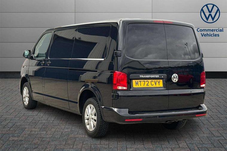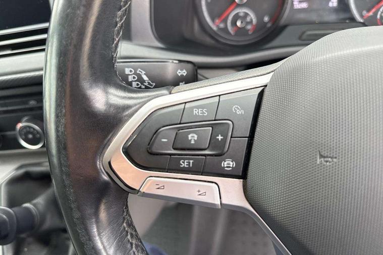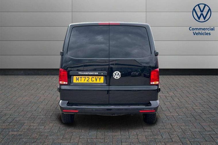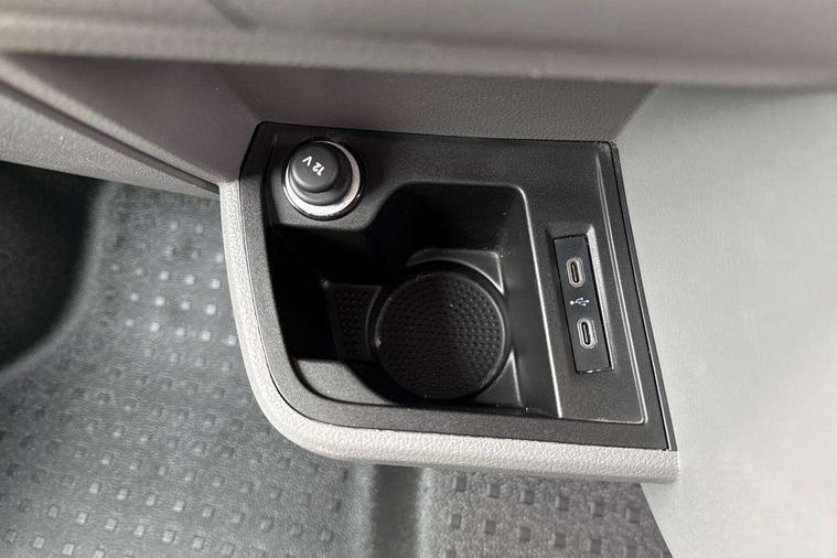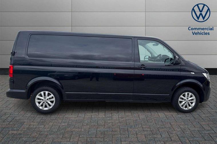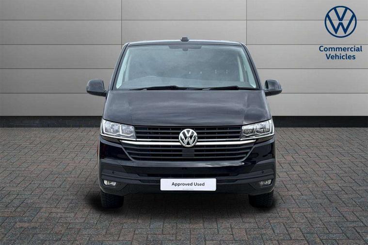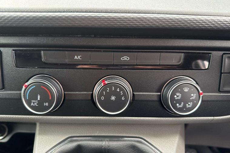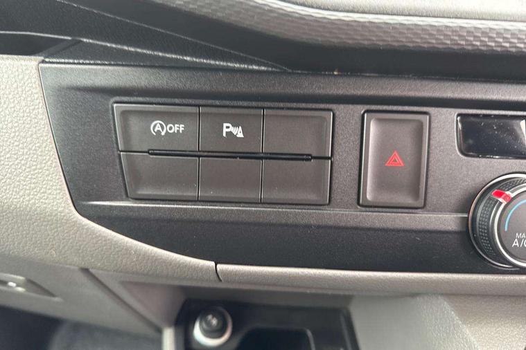 Adaptive cruise control, Cross wind assist, Dimmable illuminated instruments, Driver alert with Multi-function display plus, eCall emergency system, Electromechanical speed sensitive power steering, height and longitudinally adjustable steering column, Forward collision warning front assist with autonomous emergency braking, Mobile phone interface, Multi function display plus with black and white display, 2 USB interfaces type C in dashboard, 4 speakers with 2 tweeters and 2 woofers, Composition colour radio with 6.5" touchscreen, Digital radio reception (DAB+), Volkswagen app connect, Automatic headlight control, leaving home and manual coming home feature, Closing rear wing door with unlatching from the inside, Front fog lamps with cornering light, Heat insulating glass (green) in cab and passenger/load compartment, Heated front windscreen, Left convex exterior mirror, Power folding adjustable door mirrors with separately heated, Radiator grille with 2 chrome trims, Rear wing doors without window apertures, Right convex exterior mirror, Transporter nameplate on the rear fender, Windshield wiper intermittent control with rain sensor for windshield wipers, 3 spoke leather wrapped multi function steering wheel, Auto dimming breakaway interior rear view mirror, Comfort headliner in cab, hardboard roof trim in passenger and load compartment, Dust/pollen filter, Front and rear left without window closed side panel in load compartment, Front seats on the right in 1st row of seat, Glove compartment with illumination, Heavy duty tool kit and jack, High partition, Interior plastic loading edge protection, LED Interior lighting in load and passenger compartment, Manual adjustable lumbar support for right single seat in 1st row seats, Refrigerant R134a, Standard lower part dashboard in palladium, Storage compartments on cab seats and reading light, Without right side window apertures in passenger and load compartment, Comfort pack - Transporter, Exterior pack without fog light- Transporter, Light and vision pack - Transporter, Non smoker pack - Transporter, 3 point height adjustable seat belts on outer seats cab with electric pretensioners, Driver and front passenger airbag with front passenger airbag deactivation, Warning buzzer and light for driver and front passenger seat belt not fastened, Without child safety lock in passenger compartment, Anti theft alarm system with interior monitoring in cab, backup horn and towing protection, Lockable wheel bolts, 16" chassis with 16" brake system, Additional 12V socket, Diesel particulate filter, Electronic stability control, ABS, ASR with deactivation button, hill start assist and brake assist system, Start/stop system with regenerative breaking, 16" Clayton alloy wheels,