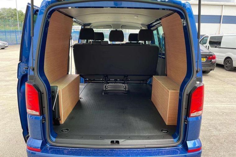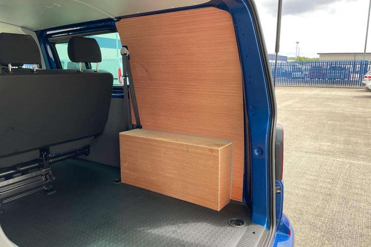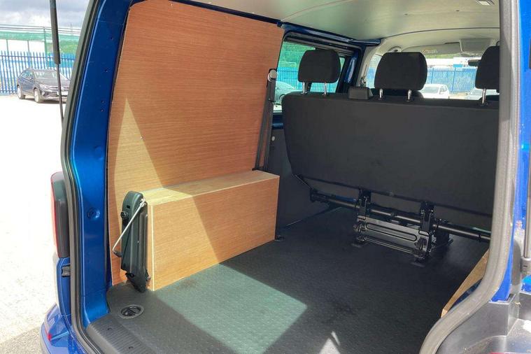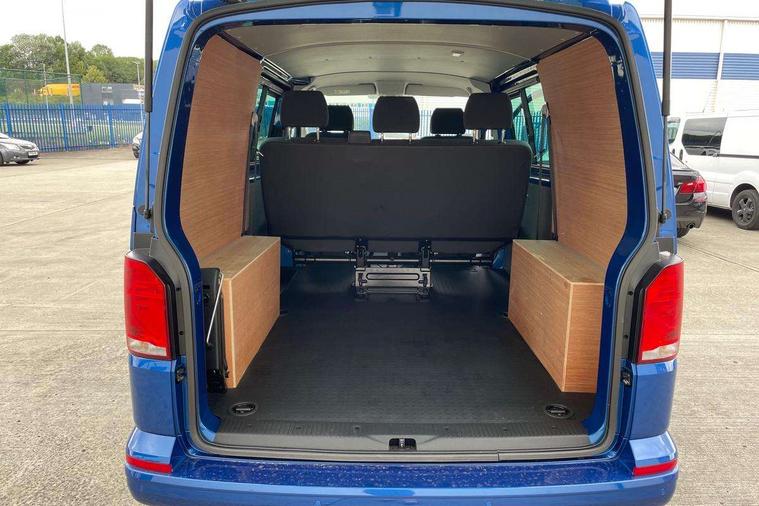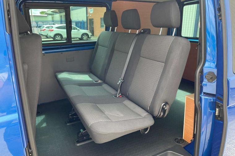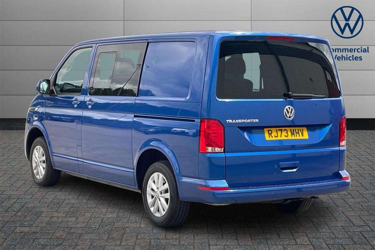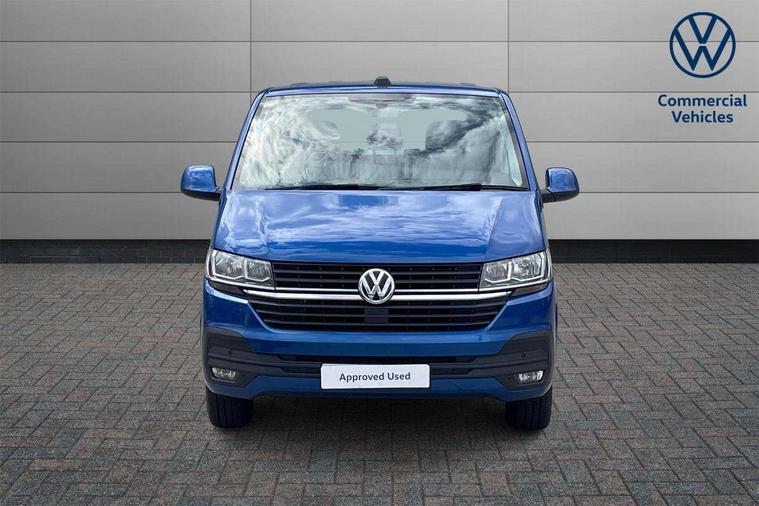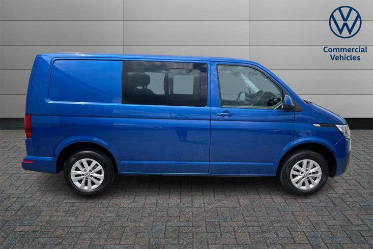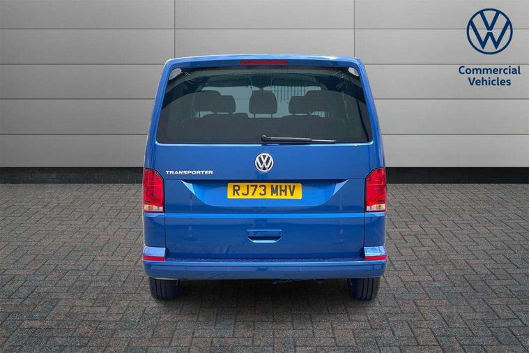 Adaptive cruise control, Child seat anchors ISOFIX and top tether in 2nd row of seats, Cross wind assist, Dimmable illuminated instruments, Driver alert with black and white multi function display plus, eCall emergency system, Forward collision warning front assist with autonomous emergency braking, Headlight range control, Mobile phone interface, Without voice control, 2 USB interfaces type C in dashboard, 4 speakers with 2 tweeters and 2 woofers, Composition colour radio with 6.5" touchscreen, Digital radio reception (DAB+), Volkswagen app connect, Automatic headlight control, leaving home and manual coming home feature, Front fog lamps with cornering light, Green heat insulating glass, Heated front windscreen, Illuminated steps in passenger/load compartment, Left convex exterior mirror, Power folding adjustable door mirrors with separately heated, Privacy glass from the B-pillar and heat-insulating glass in front, Radiator grille with 2 chrome trims, Rear window with heated insulating glass, heated rear window wiper and washer system, Right convex exterior mirror, Tailgate closing with unlatching from the inside, Transporter nameplate on the rear fender, Windshield wiper intermittent control with rain sensor for windshield wipers, Without adhesive film, 3 spoke leather wrapped multi function steering wheel, Additional sound deadening measures in cab and passenger compartment, Auto dimming breakaway interior rear view mirror, Comfort headliner in cab, hardboard roof trim in passenger and load compartment, Dust/pollen filter, Folding grab handles and storage compartments on cab seats, reading light, Front seats on the right in 1st row of seat, Glove compartment with illumination, Heavy duty tool kit and jack, Interior plastic loading edge protection, Lashing rings for load restraint system, LED Interior lighting in load and passenger compartment, Manual height adjustable and lumbar support for driver and single passenger seats, Medium height for vehicles with window aperture hardboard side trim panels in passenger/load compartment, Refrigerant R134a, Standard lower part dashboard in palladium, Without partition, Without seats in 3rd row of seats, Comfort pack - Transporter, Exterior pack without fog light- Transporter, Light and vision pack - Transporter, Non smoker pack - Transporter, 3 point height adjustable seat belts on outer seats cab with electric pretensioners, Driver and front passenger airbag with front passenger airbag deactivation, Power operated child safety lock, Warning buzzer and light for driver seat belt not fastened, Anti theft alarm system with interior monitoring in cab, backup horn and towing protection, Lockable wheel bolts, 16" chassis with 16" brake system, Additional 12V socket, Diesel particulate filter, Electronic stability control, ABS, ASR with deactivation button, hill start assist and brake assist system, Speed limiter, Start/stop system with regenerative breaking, 16" Clayton alloy wheels, Wheel trims,