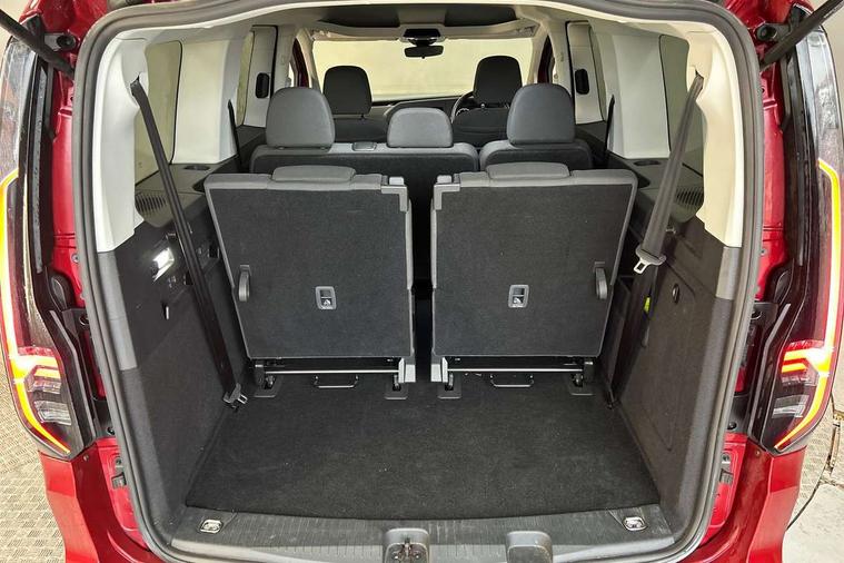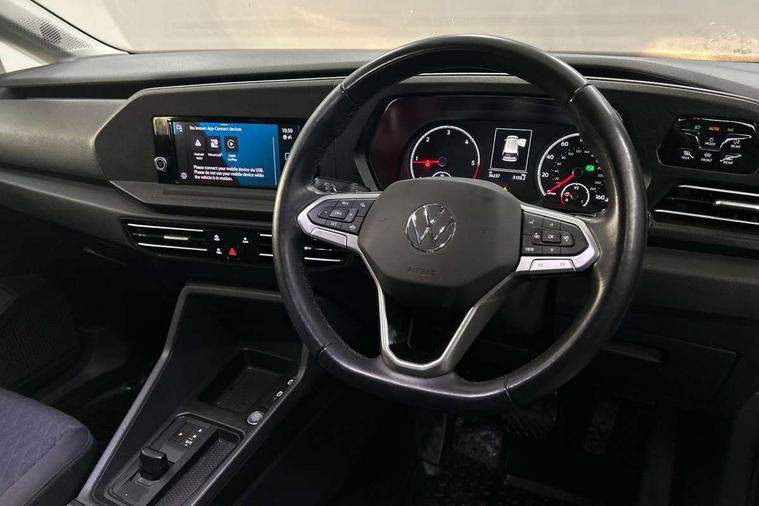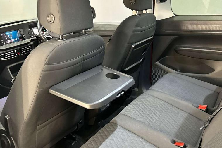 Driver alert system, eCall emergency call system, Lane keeping system, Multi function display, On board computer, Service interval indicator, Start/stop system with regenerative braking, Tailgate with window, We connect plus preparation, Diesel particulate filter, Electronic differential lock, 2 Type C USB, DAB Digital radio, Automatic hazard lights activation under emergency braking, Automatic headlight levelling system, Black painted exterior mirror housings, Body colour bumpers, Body colour door handles, Electric front windows, Exterior mirrors - power adjustable, heated and power folding, Fixed side window in load/passenger compartment, Heat insulating windscreen, Heated rear window, LED rear combination lights, Rear window wiper and washer system with intermittent control, Silver sliding door rail, Third high level brake light, Twin near side and off side sliding doors, Windscreen wiper with variable intermittent delay and wash wipe system, 12V socket in passenger compartment, 2 single seats in 3rd row, 3 seat bench in 2nd row, 5 standard interior lights in passenger compartment, Backrest release for front passenger seat, Carpet floor covering in cab, Carpet floor covering in passenger compartment, Centre console high with armrests adjustable, Centre console with 2 cupholders, Door and side trim panel in fabric, Electrically controlled heating system, Folding table on front seat backrests, Front head restraints, Front passenger seat foldable, Glove compartment cover with light, Height adjustable head restraints, Interior light in headlining, Isofix on 2nd row outer seats, Leather gearshift knob/handle, Leather multifunction steering wheel, Lockable glove compartment with light, Manual adjustable lumbar support in front seats, Manual front seats with height adjustment, Reach and rake adjustable steering column, Rear head restraints, Removable waste bin with cover for cab, Seat occupied recognition for front seats, Sliding trunk cover, Split folding rear seat, Storage drawers under front seats, Sun visors with mirror and airbag label on front passenger, Trialog cloth upholstery, 3-point seat belts in front with pretensioner and height adjustment, 3x3 point rear seatbelts, Anti-lock braking system (ABS), Automatic post collision braking system, Autonomous emergency braking front assist with pedestrian and cyclist monitoring, Brake assist, Child locks on rear doors, Curtain airbag for outer seats in rear, Direct tyre pressure monitoring system, Driver and front passenger airbag with front passenger airbag deactivation, Electric parking brake with auto hold function, Electronic brake force distribution, Engine drag torque control, ESP, First aid kit with warning triangle and safety vest, Front centre airbag, Power operated child safety locks, Seat belt reminder, Side and curtain airbag for driver and front passenger, Traction control system (TCS), Anti theft alarm system with interior monitoring, backup horn and towing protection, Wheel bolts unlockable anti-theft protection, Decorative inserts in beige birch vein,
