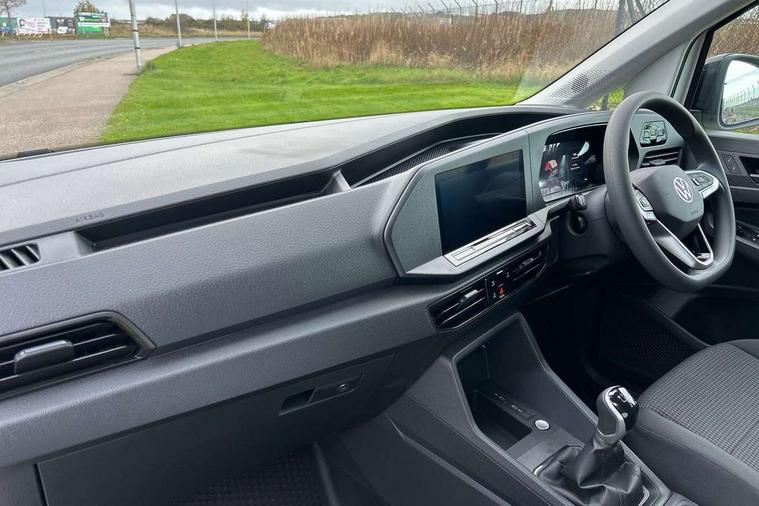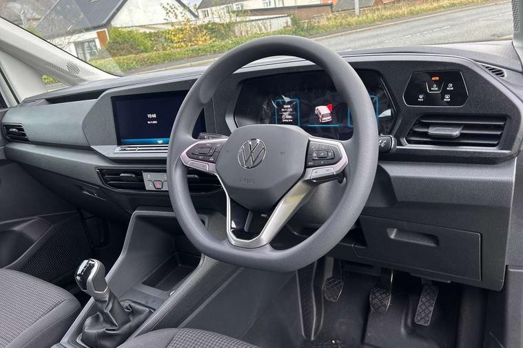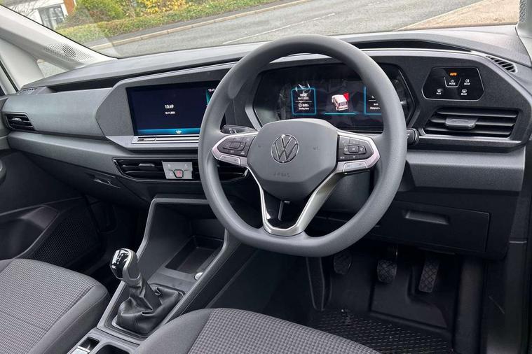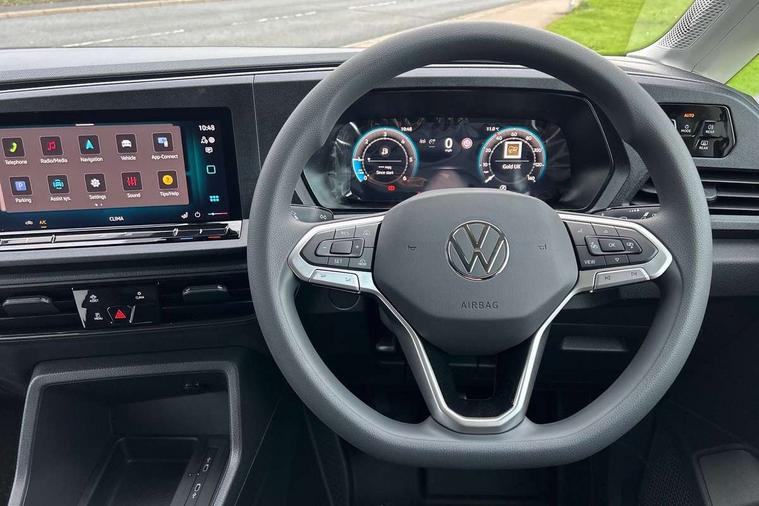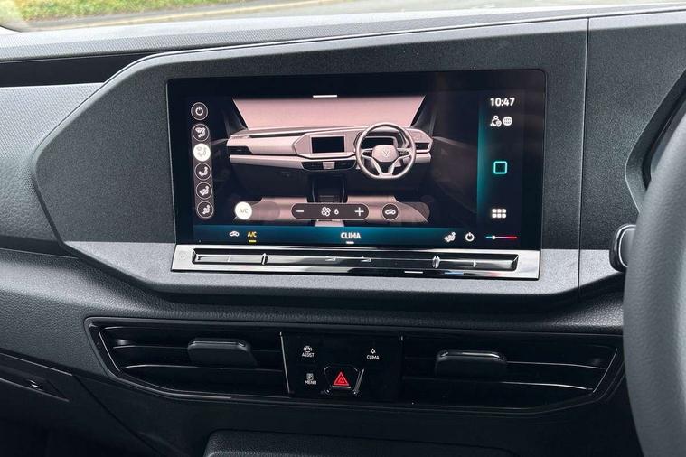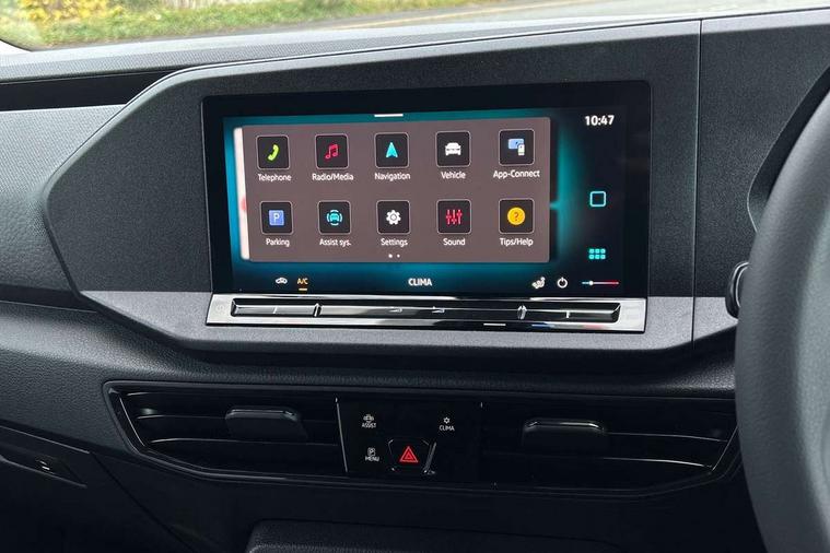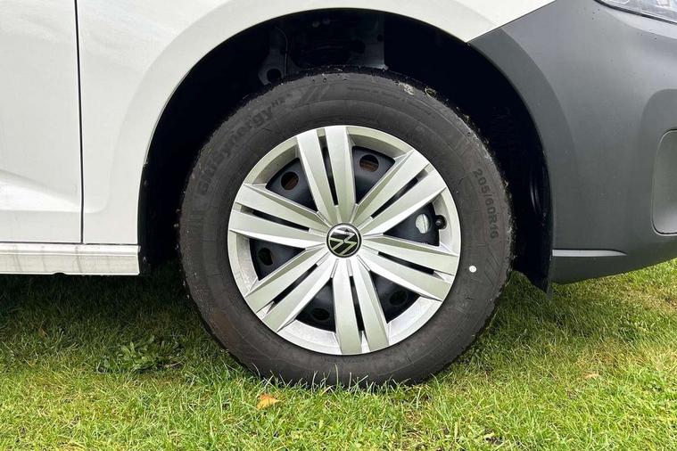 Bluetooth - Mobile phone interface, Car2X technology, Driver alert system, eCall emergency system, Intelligent Speed Assist, Lane assist, Seatbelt warning indicator, Service indicator, Start-stop system with regenerative braking, 2 USB interfaces type C in dashboard, DAB Radio, We Connect Basic Preparation, Automatic hazard light activation under emergency braking, Black front and rear bumpers, Electric front windows, Heat insulating windscreen, Roof rail preparation, Windscreen wiper with variable intermittent delay and wash-wipe system, Dimming breakaway interior rear view mirror, Electronically controlled heating system, Interior light in headliner incorporting LED technology, Lockable glove compartment door with light, Manual heating and ventilation system, Manual height adjustment for front seats, Reach and rake adjustable steering column, Six lashing points for securing loads, 3-point seat belts in front, with pretensioner and height adjustment, Driver and front passenger airbag with front passenger airbag deactivation, Tyre pressure monitoring system, Anti-theft alarm system, interior monitoring, backup horn, and towing protection, Electronic engine immobiliser, Remote central locking with deadlocks, interior locking, Anti locking braking system (ABS), Automatic post collision braking system, Autonomous Emergency Braking Front Assist with Pedestrian Monitoring, Brake assist, Diesel particulate filter, Electric parking brake with auto hold function, Electronic brake force distribution (EBD), Electronic differential lock (EDL), Electronic stabilisation programme (ESP), Engine drag torque control (MSR), Hill hold assist, Traction control system (TCS), Decorative beige birch vein inserts, Full size wheel trims,