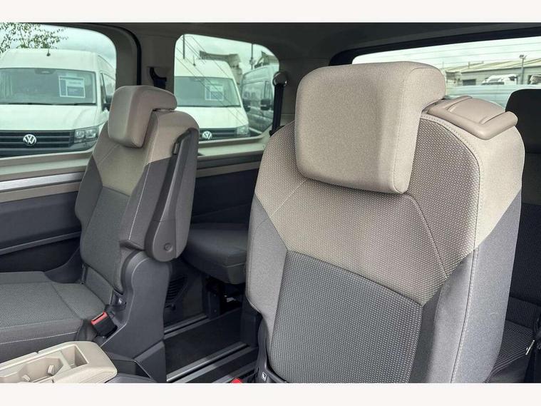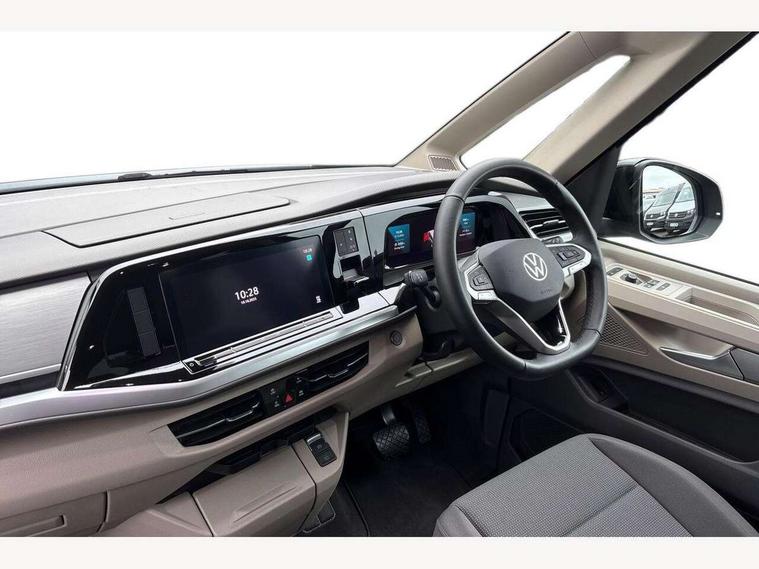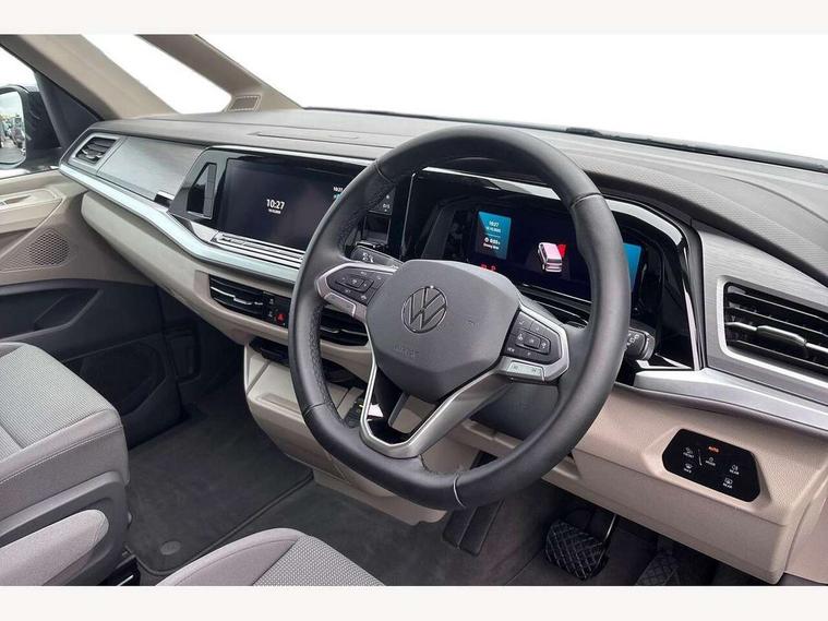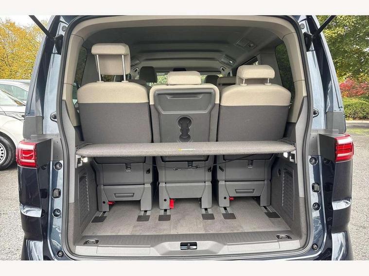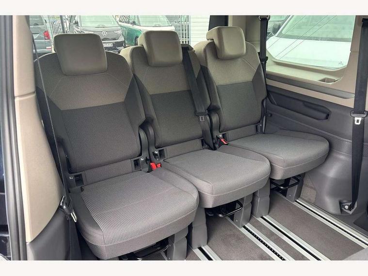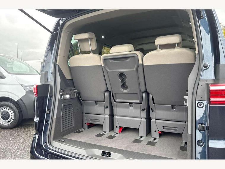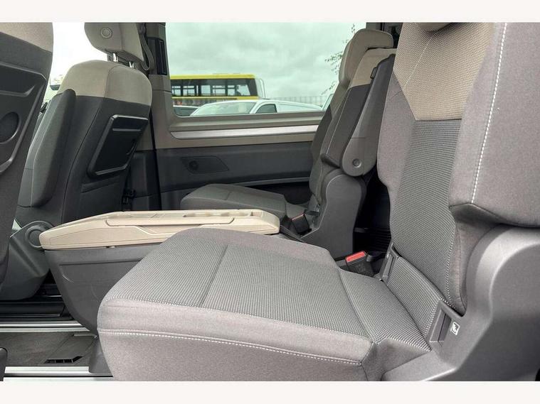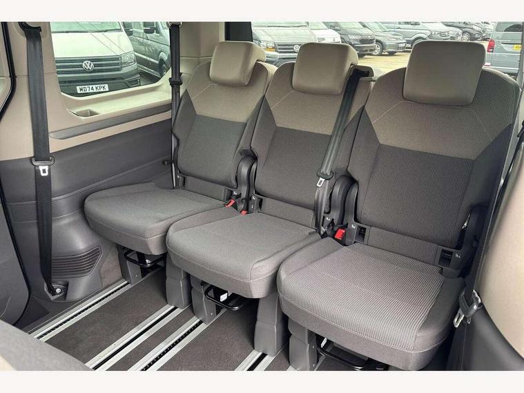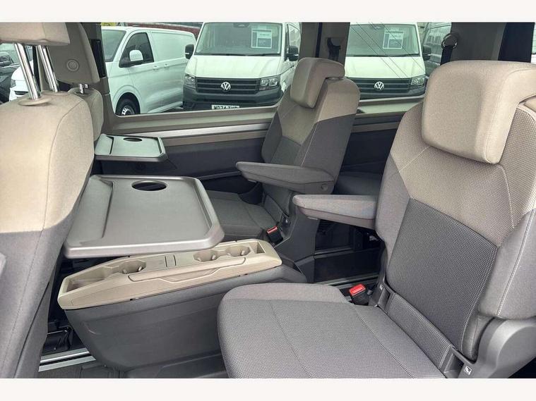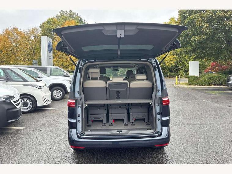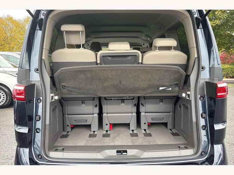 Adaptive cruise control with C2X including front assist and city emergency braking system, App-Connect incl. App-Connect Wireless for Apple CarPlay and Android Auto, Digital Cockpit Pro with 10.25" Display, Driver alert system, Dynamic road sign display, eCall emergency system, Lane keeping system Lane Assist, Mobile phone interface, PAS, Rear view camera, Socket AC Type 2, Tailgate, Voice control system including Alexa web app, We connect preparation, 1 x 6 metre charging cables - 16amp AC cable for wallbox chargepoints (mode 3), Charging cable Mode 3 Type 2 / 3 (16A), Electronic differential lock, 2 USB-C ports in front and 4 USB-C ports in passenger compartment, Digital radio reception (DAB+), Automatic headlight control with welcome home lights, Body coloured exterior door handles, Break away auto dimming rear view interior mirror, Dynamic headlight range control (self adjusting), Electrically adjustable, heated and folding door mirrors, Front fog lights, Glossy black painted radiator grille with 2 chrome trims, Heated rear window with window wiper and washer system, High gloss black exterior mirror housing, Interior noise reduction measures, Laminated safety glass windshield, heat and sound insulating, LED 3rd brake lamp, LED main headlamps with LED separate daytime running light, LED rear combination lamps, Rear wiper, Sliding door on left/right with power latching, Windshield wiper intermittent control with rain sensor, 1 x 12V sockets on the dash panel, 12V socket in passenger compartment, 3 seat bench in 3rd row, 7 single seats removable/movable, Carpet mats in cab, Front and rear head restraints, Grab handles on A pillar for access, on driver and front passenger side, Height adjustable seats, Height and longitudinal adjustment steering wheel with gear shift paddles, Illumination lockable glovebox compartment, ISOFIX (including i-size) and top tether in all seats in 2nd and 3rd rows, LED luggage compartment lighting X 2, Load compartment partition to 20kg with bag hooks and luggage net, Luggage compartment lid power latching with unlatching from inside, Multifunction leather steering wheel with tiptronic, Reinforced carpet floor covering in passenger compartment, Removable armrests for front seats with power adjustable lumbar support and folding table for 2nd row passenger seats, Removable armrests in 2nd row passenger seats, Single front passenger seat, Storage compartment under the 2nd and 3rd row seat and two waste bins, Sun visors with illuminated vanity mirrors and airbag warning label on front passenger sun visors, Surround lighting in door area, 3x3 point rear seat belts, ABS, Automatic post collision braking system, Autonomous emergency braking front assist with pedestrian and cyclist monitoring, Driver and front passenger airbag with front passenger airbag deactivation, Electric childproof lock, Electronic stability control (ESC) and Electromechanical brake booster, ESP, First aid kit with warning triangle and safety vest, Hill hold assist, Seat belt warning for the drivers and all passengers seats if unfastened, Side and curtain airbags for driver and front passenger, curtain airbags for outer seats in rear, centre airbag in front, Single tone horn, Traction control, Tyre pressure monitoring system, Anti theft alarm system with interior monitoring in cab, backup horn and towing protection, Keyless Start, Start/stop button on centre console, Dark silver brushed decorative inserts,