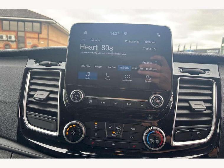 Adjustable steering column, Blind spot monitor, Easy fuel capless refuelling system, Ford Eco mode, Front and rear parking aid + front fog lamps, PAS, Rear view camera with trailer hitch assist include rear LED downlighter, Seatbelt warning indicator, Trip computer, Tyre pressure monitor, 4 speakers, Audio controls mounted on steering wheel, Aux input socket, 'Guide me home' headlights, Automatic lights and wipers, Body colour door and tailgate handles, Body coloured body side mouldings, Body coloured door mirrors, Body coloured front bumper, Body coloured rear bumpers, Electric front windows with one touch facility for driver and front passenger, Front mud flaps, GT roof and bonnet stripes, Headlamp levelling, Intermittent front wash/wipe, Power folding electric heated and adjustable door mirrors, Quickclear heated windscreen, Rear mudflaps, Sports body kit, Assist handle, Courtesy light, Driver and passenger sunvisors with illuminated vanity mirrors, Drivers seat with lumbar adjustment, Easy clean load floor, Front manual air conditioning, Front passenger grab handle, Half height load compartment trim boards, Heated front seats, Height adjustable front headrests, Illuminated footwell, Load area protection kit, Lockable glove box, Map reading lights, Moulded cab headlining, Part leather upholstery, Reach and rake adjustable steering column, Recirculation heater, Rubber floor covering, Tie-down loops, Underseat storage compartment, 3 point seatbelts for all seats, Driver's airbag, Front outer passenger airbag with deactivation switch, Front passenger airbag, Front seatbelt pretensioners, Height adjustable drivers seatbelt mount, Passenger seatbelt height adj, 2nd remote key, Auto locking on drive-away, Auto relocking, Configurable Unlocking, Power door dead locks, Remote central locking, Thatcham category 1 alarm, 2 12v sockets, 80 litre fuel tank, ABS, Diesel particulate filter, ESP + EBA, Power point plug 400W - Level 2, Roll stability control, Side wind mitigation, 18" 7.5 5x2 spoke alloy wheels, Mini steel spare wheel,
