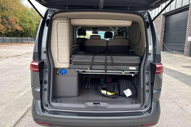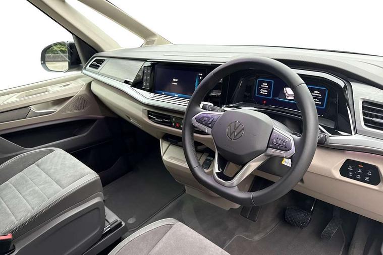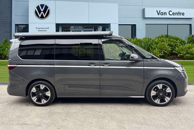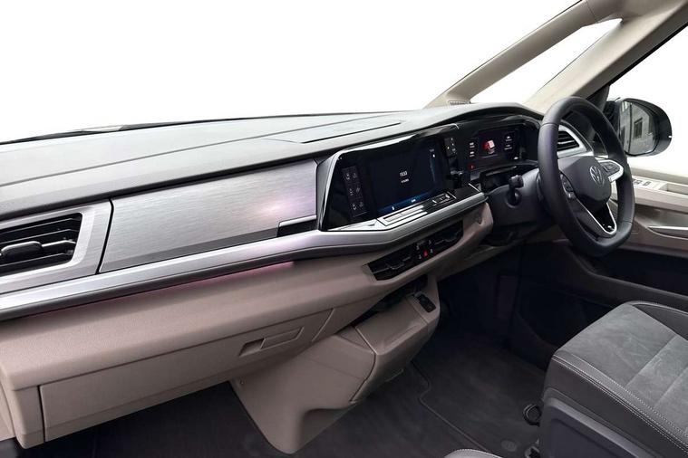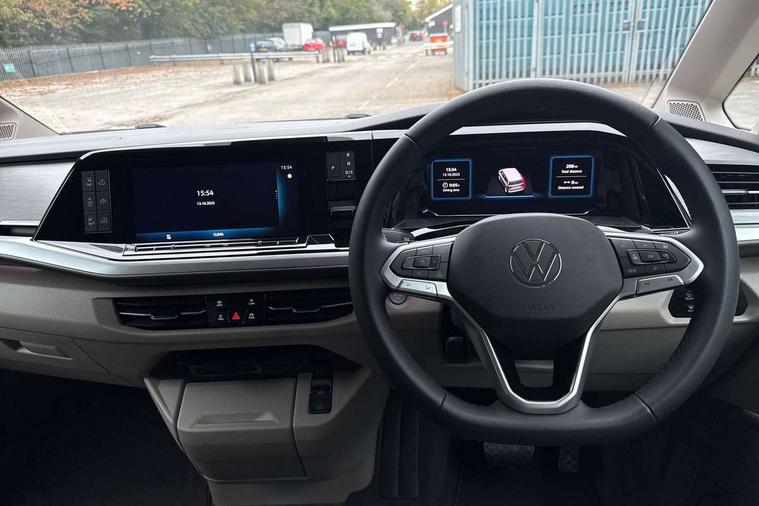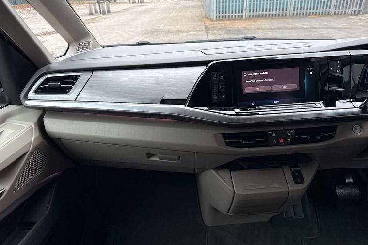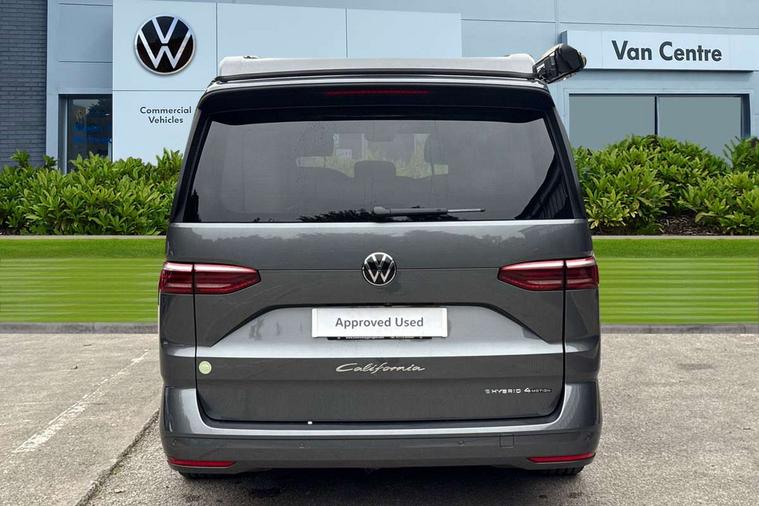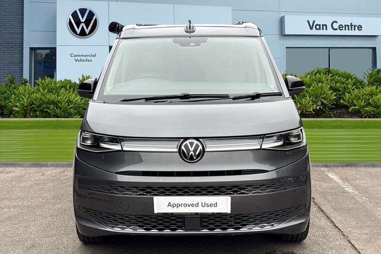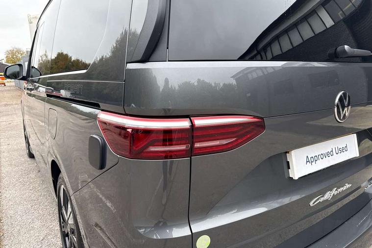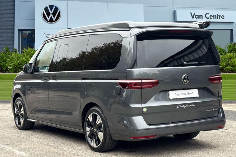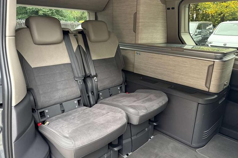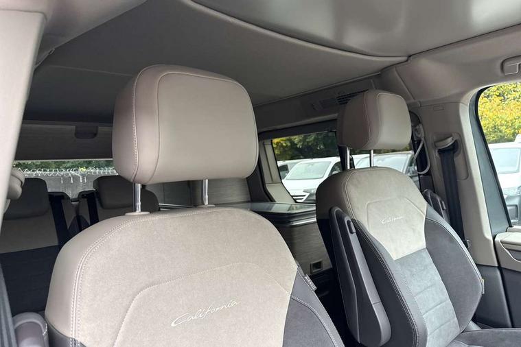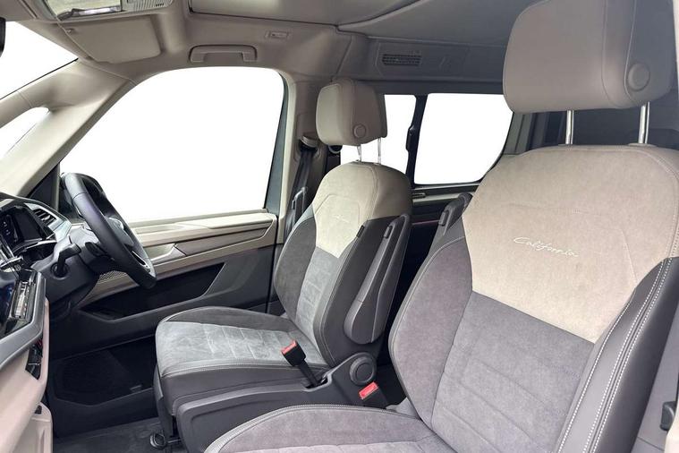 Advanced driver attention and drowsiness monitor, California on tour app, Digital cockpit pro, Discover Pro Navigation system, Driving profile selection, Dynamic road sign display, eCall emergency system, Emergency assist, Front cross traffic assist, Function control unit, IDA voice assistant and voice enhancer, Lane keeping system Lane Assist, Mobile phone interface, Motorhome Registration, Multifunction camera, PAS, Preparation for online services, Preparation for We connect and We connect plus, Servotronic speed sensitive power steering, Speed limiter and predicative speed limiter, Tailgate with window aperture and with power latching, Travel assist, Turn assist with evasive assistance, Volkswagen wired and wireless app connect, Alternator 60A, 2nd and 3rd auxiliary batteries with low -voltage converter, Battery 380 A (68 Ah), Battery without capacity specification, Charging cable mode 3, type 2/3, 16 A, Standard battery/generator, Standard suspension and shock absorption, 10.4 inch infotainment system with scalable module options, 2 USB-C ports at the front, 4 USB-C charging sockets in the passenger compartment, 8 Speakers, Digital radio reception (DAB), 3rd brake light, Dynamic headlight range control, Electro hydraulic elevating roof, with three windows including one front passengers panorama opening, canvas in Basalt Grey, Four speed control for windscreen wipers, Gloss black grille with 2 illuminated chrome trim, Heat and sound insulating laminated safety glass windshield, Heated windscreen, High gloss black door mirrors, Illuminated molding between headlamps, Nameplate set California, Poor weather light including cornering light, Rear boot, Red LED tail lights, Sliding window in front with fly screen in passenger compartment left/right & including privacy glass in rear, Windscreen wiper intermittent control, 2 single seats with integrated seatbelt and sleeping mat, 230V external inlet with charging feature for vehicle batteries, 230V inverter with socket on driver seat, Additional interior noise attenuation, Ambient interior lighting, Armrest on front swivel seats in both sides with electric lumbar support, Camper parking heater for continuous operation, Darkening roller blinds and thermo mats, Drawers under the outer seats in the cab and passenger compartment & 2 waste bins, Front and rear headrests, Heated front seats, Heated steering wheel, Kitchen with outdoor folding table for cooking and roof storage box in décor 2, Lockable glove compartment with lighting, Luggage compartmen with power latching, Multifunction leather steering wheel with paddle shifters, Reinforced plastic floor covering in wood look, Single front passenger seat, Storage compartment left and right 1st row of seats, Summer kitchen with outside folding table and 230-V outlet for cooking and roof storage box, Surround lighting in door area, Swivel seat on left with height adjustable including drawer, Swivel seat on right with height adjustable including drawer, Tailgate latching without unlatching function from inside, Velour floor mats in cab, Without loading edge protection, Without luggage compartment cover, Advanced assistance pack - California, Top package - California, 2x3 point automatic seatbelts at the rear outside with ECE label, with/without belt tensioner, Autonomous emergency braking, Child locks, Driver and front passenger airbags with front passenger airbag deactivation button, First aid kit with warning triangle and safety vest, Front Assist with pedestrian and cyclist detection, Front disc brakes, Height adjustable three point automatic seatbelts at front with belt and end fitting tensioners, Occupants detection only display, Side and curtain airbags for driver and front passenger, curtain airbags for outer seats in rear, centre airbag in front, Swerve support and oncoming vehicle braking when turning, Tyre pressure loss indicator, Warning signal and warning lamp for front and rear seat belts not fastened, Anti theft alarm system with interior monitoring in cab, backup horn and towing protection, Central locking + keyless locking and starting system Keyless Advanced with safe lock, Lockable wheel bolts, Preparation for alcohol interlock, 5+ Promise service plan, Dark silver brushed decorative inlays, 235/50 R18 tyres with low rolling resistance, Tool kit, Trims for alloy wheels, Tyre mobility kit, Without spare wheel,