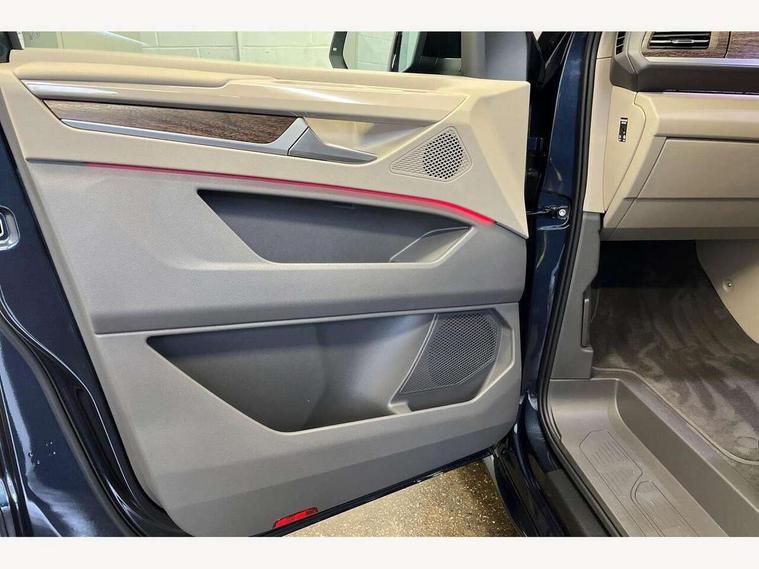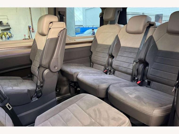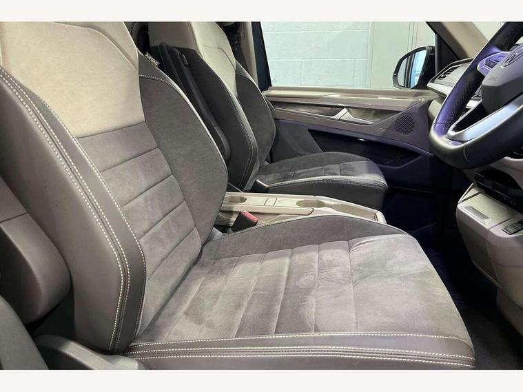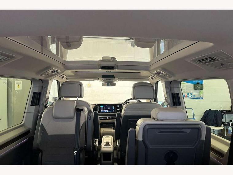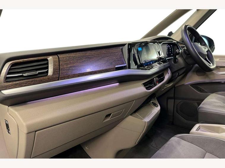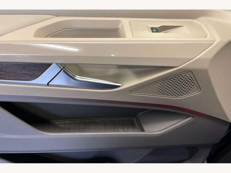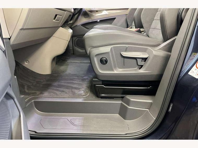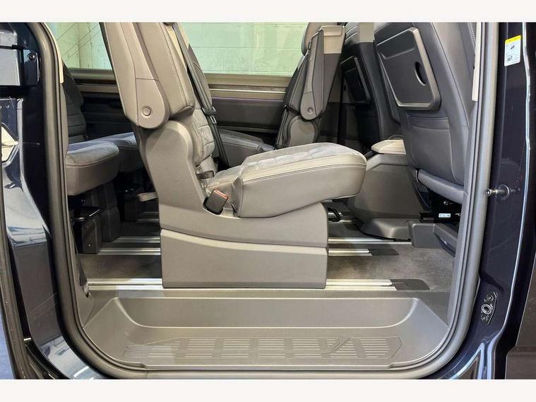Adaptive cruise control with C2X including front assist and city emergency braking system, Digital Cockpit Pro with 10.25" colour display with adaptable display includes navigation map display, telephone contact images and audio information, Discover media pro navi system with 10" colour touch incl DAB+radio/appconnect for apple carplay/android auto/streaming and internet/gesture control, Driver alert system, Dynamic road sign display, eCall emergency system, Electrically-operated tailgate opening and closing function (Easy open), operated via foot movement under rear tailgate, Emergency assist, Front Cross Traffic Alert, Lane change system with side assist including blind spot monitor, rear traffic alert and exit warning system, Lane keeping system Lane Assist, Mobile phone interface, PAS, Semi-automated driving assistance, Tailgate, Travel assist, Voice control system including Alexa web app, We connect preparation, Electronic differential lock, 2 USB-C ports in front and 4 USB-C ports in passenger compartment, Additional interior noise reduction measures, Advanced high beam control dynamic light assist for LED matrix headlamps, Automatic headlight control with welcome home lights, Body coloured exterior door handles, Break away auto dimming rear view interior mirror, Chrome trim decorative strip mid-way on side and rear, Dynamic headlight range control with dynamic cornering light, Electrically adjustable, heated and folding door mirrors, Front fog lights, Glossy black painted radiator grille with 2 illuminated chrome trims, Heated rear window with window wiper and washer system, Heated windscreen, High gloss black exterior mirror housing, IQ.Light LED matrix headlamps with LED separate daytime running light, Laminated safety glass windshield, heat and sound insulating, LED 3rd brake lamp, LED rear combination lamps, Rear wiper, Stainless steel tailgate trim, Surround lighting in door area and tailgate with logo projection in door area, Windshield wiper intermittent control with rain sensor, 1 x 12V sockets on the dash panel, 12V socket in passenger compartment, 3 seat bench in 3rd row, 30 colours ambient interior lighting and tailgate surround lighting, 7 single seats removable/movable, Carpet mats in cab, Climatronic 3 zone air conditioning with additional control panel in passenger compartment, Front and rear head restraints, Grab handles on A pillar for access, on driver and front passenger side, Height adjustable seats, Height and longitudinal adjustment steering wheel with gear shift paddles, Illumination lockable glovebox compartment, ISOFIX (including i-size) and top tether in all seats in 2nd and 3rd rows, LED luggage compartment lighting X 2, Load compartment partition to 20kg with bag hooks and luggage net, Luggage compartment lid power latching with unlatching from inside, Multifunction leather steering wheel with tiptronic, Reinforced carpet floor covering in passenger compartment, Removable armrests for front seats with power adjustable lumbar support and folding table for 2nd row passenger seats, Removable armrests in 2nd row passenger seats, Single front passenger seat, Slidable multifunction table/centre console with 3 cup holders, Stainless steel pedals, Storage compartment under the 2nd and 3rd row seat and two waste bins, Sun visors with illuminated vanity mirror, ticket holder on driver side with airbag warning label on sunvisor and B-pillar, Easy open package - Multivan, 3x3 point rear seat belts, ABS, Automatic post collision braking system, Autonomous emergency braking front assist with pedestrian and cyclist monitoring, Driver and front passenger airbag with front passenger airbag deactivation, Electric childproof lock, Electronic stability control (ESC) and Electromechanical brake booster, ESP, First aid kit with warning triangle and safety vest, Front disc brakes, Hill hold assist, Seat belt warning for the drivers and all passengers seats if unfastened, Side and curtain airbags for driver and front passenger, curtain airbags for outer seats in rear, centre airbag in front, Single tone horn, Traction control, Tyre pressure monitoring system, Anti theft alarm system with interior monitoring in cab, backup horn and towing protection, Central locking system with interior control and safe lock, Keyless advanced with keyless entry, Start/stop button on centre console, Dark woodgrain optic decorative inserts,