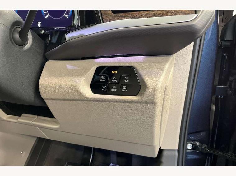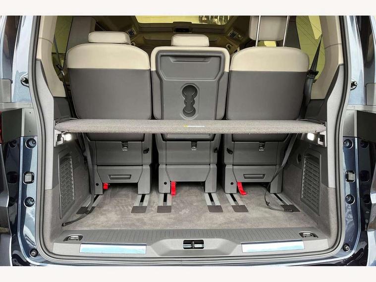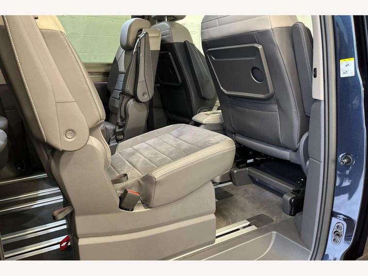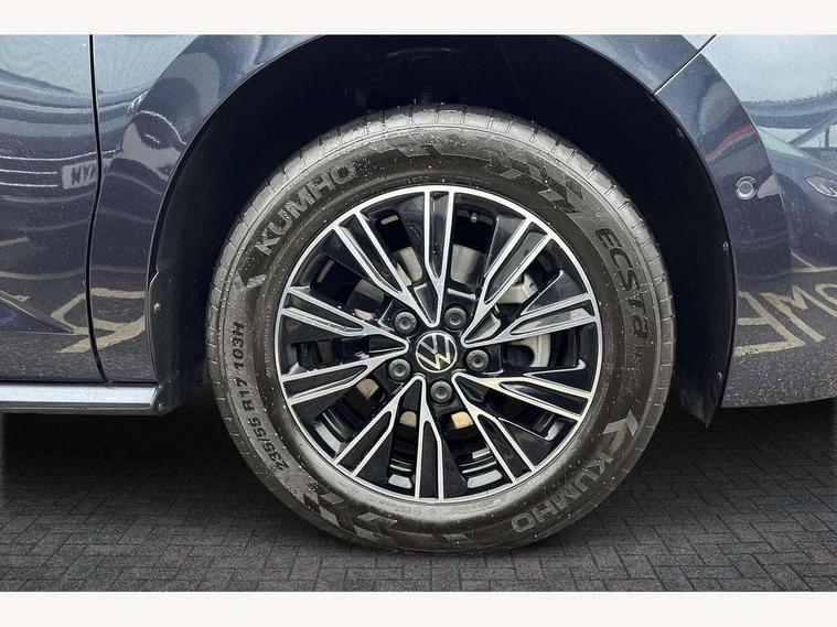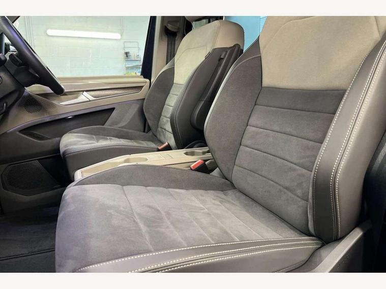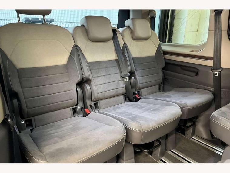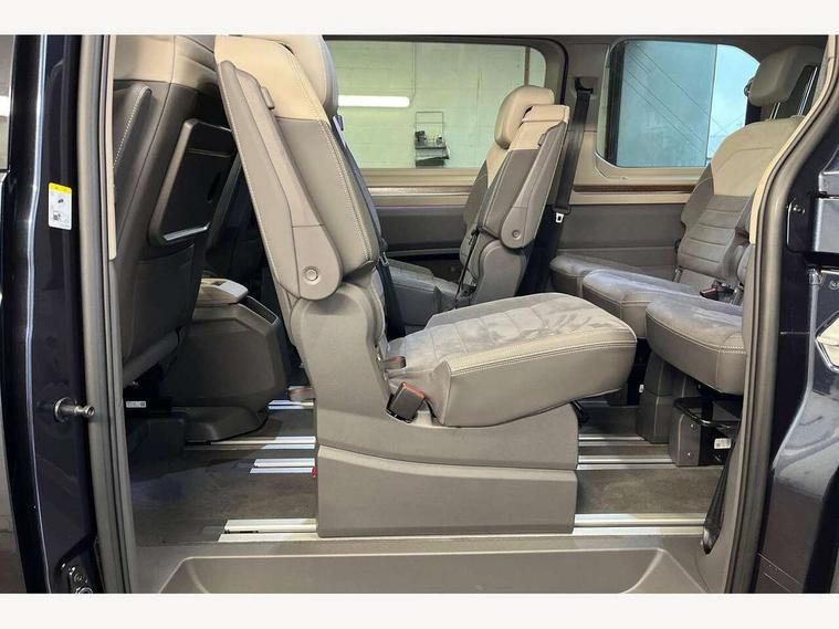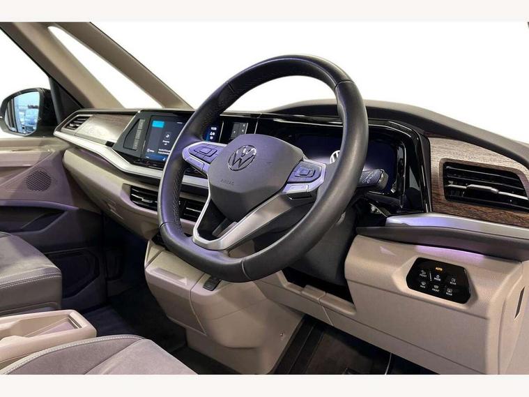Adaptive cruise control with C2X including front assist and city emergency braking system, Digital Cockpit Pro with 10.25" colour display with adaptable display includes navigation map display, telephone contact images and audio information, Discover media pro navi system with 10" colour touch incl DAB+radio/appconnect for apple carplay/android auto/streaming and internet/gesture control, Driver alert system, Dynamic road sign display, eCall emergency system, Electrically-operated tailgate opening and closing function (Easy open), operated via foot movement under rear tailgate, Emergency assist, Front Cross Traffic Alert, Lane change system with side assist including blind spot monitor, rear traffic alert and exit warning system, Lane keeping system Lane Assist, Mobile phone interface, PAS, Semi-automated driving assistance, Tailgate, Travel assist, Voice control system including Alexa web app, We connect preparation, Electronic differential lock, 2 USB-C ports in front and 4 USB-C ports in passenger compartment, Additional interior noise reduction measures, Advanced high beam control dynamic light assist for LED matrix headlamps, Automatic headlight control with welcome home lights, Body coloured exterior door handles, Break away auto dimming rear view interior mirror, Chrome trim decorative strip mid-way on side and rear, Dynamic headlight range control with dynamic cornering light, Electrically adjustable, heated and folding door mirrors, Front fog lights, Glossy black painted radiator grille with 2 illuminated chrome trims, Heated rear window with window wiper and washer system, Heated windscreen, High gloss black exterior mirror housing, IQ.Light LED matrix headlamps with LED separate daytime running light, Laminated safety glass windshield, heat and sound insulating, LED 3rd brake lamp, LED rear combination lamps, Rear wiper, Stainless steel tailgate trim, Surround lighting in door area and tailgate with logo projection in door area, Windshield wiper intermittent control with rain sensor, 1 x 12V sockets on the dash panel, 12V socket in passenger compartment, 3 seat bench in 3rd row, 30 colours ambient interior lighting and tailgate surround lighting, 7 single seats removable/movable, Carpet mats in cab, Climatronic 3 zone air conditioning with additional control panel in passenger compartment, Front and rear head restraints, Grab handles on A pillar for access, on driver and front passenger side, Height adjustable seats, Height and longitudinal adjustment steering wheel with gear shift paddles, Illumination lockable glovebox compartment, ISOFIX (including i-size) and top tether in all seats in 2nd and 3rd rows, LED luggage compartment lighting X 2, Load compartment partition to 20kg with bag hooks and luggage net, Luggage compartment lid power latching with unlatching from inside, Multifunction leather steering wheel with tiptronic, Reinforced carpet floor covering in passenger compartment, Removable armrests for front seats with power adjustable lumbar support and folding table for 2nd row passenger seats, Removable armrests in 2nd row passenger seats, Single front passenger seat, Slidable multifunction table/centre console with 3 cup holders, Stainless steel pedals, Storage compartment under the 2nd and 3rd row seat and two waste bins, Sun visors with illuminated vanity mirror, ticket holder on driver side with airbag warning label on sunvisor and B-pillar, Easy open package - Multivan, 3x3 point rear seat belts, ABS, Automatic post collision braking system, Autonomous emergency braking front assist with pedestrian and cyclist monitoring, Driver and front passenger airbag with front passenger airbag deactivation, Electric childproof lock, Electronic stability control (ESC) and Electromechanical brake booster, ESP, First aid kit with warning triangle and safety vest, Front disc brakes, Hill hold assist, Seat belt warning for the drivers and all passengers seats if unfastened, Side and curtain airbags for driver and front passenger, curtain airbags for outer seats in rear, centre airbag in front, Single tone horn, Traction control, Tyre pressure monitoring system, Anti theft alarm system with interior monitoring in cab, backup horn and towing protection, Central locking system with interior control and safe lock, Keyless advanced with keyless entry, Start/stop button on centre console, Dark woodgrain optic decorative inserts,