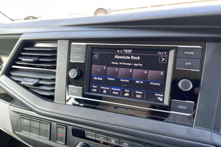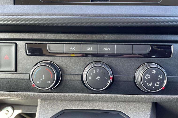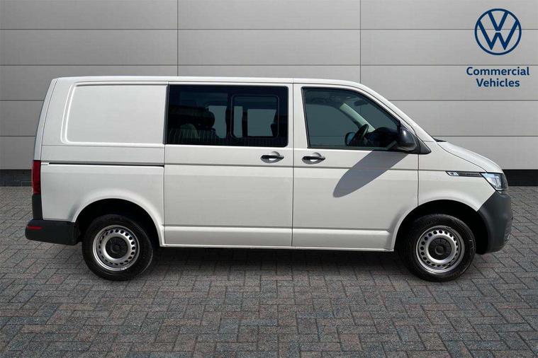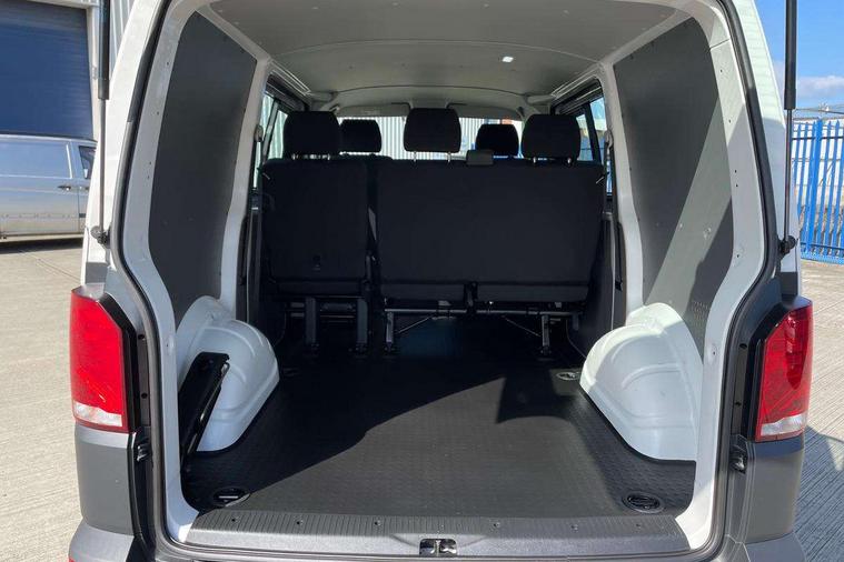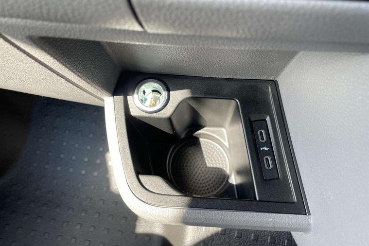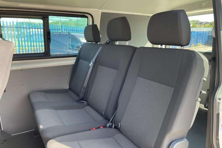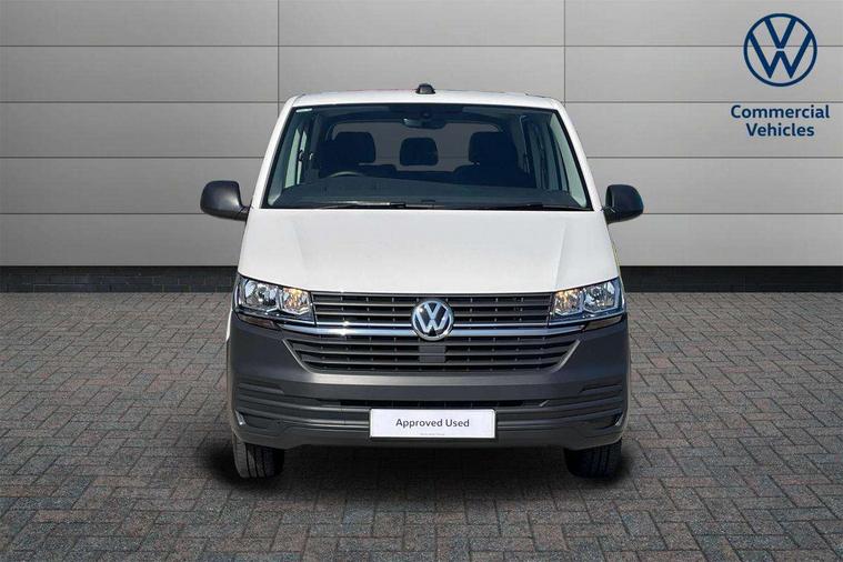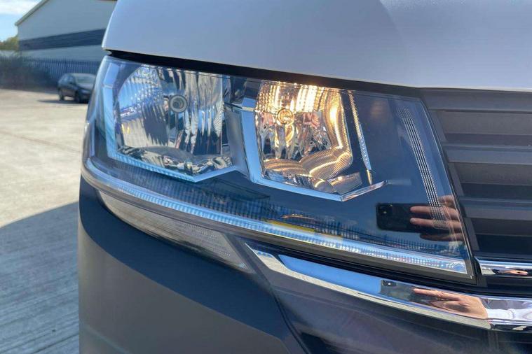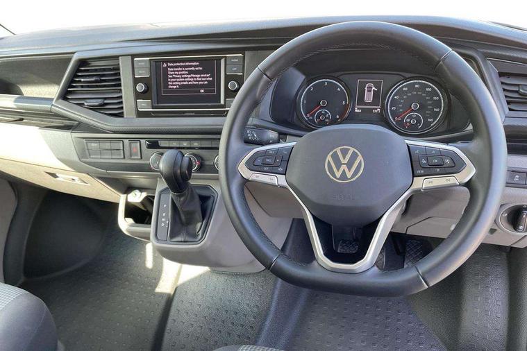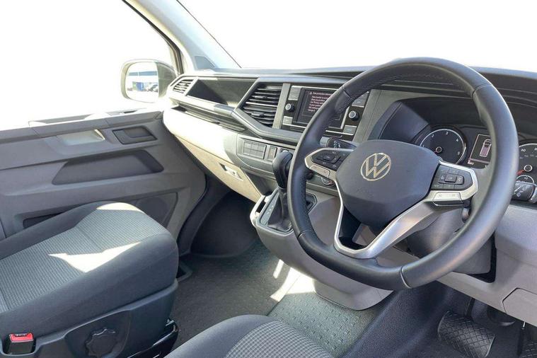 Child seat anchors ISOFIX and top tether in 2nd row of seats, Cross wind assist, Dimmable illuminated instruments, Driver alert with black and white multi function display plus, eCall emergency system, Forward collision warning front assist with autonomous emergency braking, Headlight range control, Mobile phone interface, Without voice control, 2 USB interfaces type C in dashboard, 4 speakers with 2 tweeters and 2 woofers, Composition colour radio with 6.5" touchscreen, Digital radio reception (DAB+), Volkswagen app connect, 4 stages windshield wiper intermittent control for windshield wipers, Green heat insulating glass, H7 twin halogen headlamps, Illuminated steps in passenger/load compartment, Left convex exterior mirror, Rear combination lamps, Rear window with heated insulating glass, heated rear window wiper and washer system, Right convex exterior mirror, Separate daytime running light (permanently switched on while driving), Tailgate closing with unlatching from the inside, Transporter nameplate on the rear fender, Unpainted radiator grille with 2 chrome trims, Without adhesive film, 1 12V outlet in dashboard, 3 spoke leather wrapped multi function steering wheel, Additional interior noise suppression, Additional sound deadening measures in cab and passenger compartment, Comfort headliner in cab, hardboard roof trim in passenger and load compartment, Dimming breakaway interior rear view mirror, Dust/pollen filter, Folding grab handles on roof frame, Front seats on the right in 1st row of seat, Heavy duty tool kit and jack, Interior plastic loading edge protection, Lashing rings for load restraint system, LED Interior lighting in load and passenger compartment, Medium height for vehicles with window aperture hardboard side trim panels in passenger/load compartment, Standard lower part dashboard in palladium, Sun visors with pocket on driver side and airbag label on front passenger side, Without grab handle for access on A pillar, Without partition, Without refrigerant, Without seats in 3rd row of seats, Non smoker pack - Transporter, Without storage pack - Transporter, 3 point height adjustable seat belts on outer seats cab with electric pretensioners, Driver and front passenger airbag with front passenger airbag deactivation, Power operated child safety lock, Warning buzzer and light for driver seat belt not fastened, Electronic immobiliser, Wheel bolts without wheel locks, 16" chassis with 16" brake system, Diesel particulate filter, Electronic stability control, ABS, ASR with deactivation button, hill start assist and brake assist system, Standard anti drum measures, Start/stop system with regenerative breaking, 16" 20 hole style steel wheels, Wheel trims,