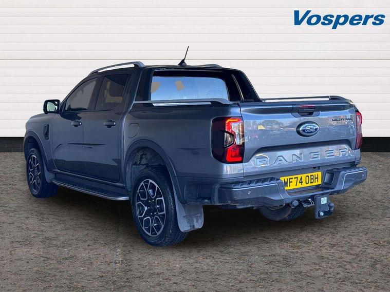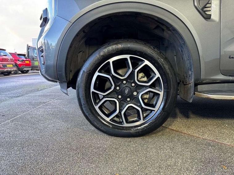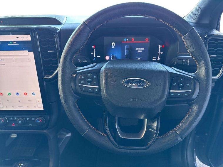 AEB and ISA, Conventional gearshift, Electric power assisted steering, Evasion steer assist, Ford pass connect embedded modem, Ice warning, Partial TFT/LCD instrument cluster, Passenger side roof mounted grab handle, Pre collision assist, Road departure warning, Traffic sign recognition, Trip computer, 360 lighting, Accent colour exterior mirrors, Accent colour front bumper, Accent colour grille, Accent colour rear bumper, Acoustic laminated windscreen, Active grille shutter, Assisted conventional tailgate, Automatic headlights, Black rear underrun bar, Black wheel molding, Body coloured door handles, Daytime running lights, Dual power heated fold back door mirror with puddle lamps, E-marked glass, Electric rear window defroster, Electric windshield defroster, Electrochromic interior mirror, Fog lamp bezel, Front fender painted grill, Front headlamp leveling, Front splash guard, Front towing hooks, High mounted stop lamp, Ladder rack, LED Front fog lamp, Level 2 LED headlamps, Level 2 LED taillamps, Manual liftgate, Narrow bodyside moulding and insert, Non locking capless fuel fill, Outside thermometer, Plastic cab roll over bar, Power front windows with one touch up/down, Privacy glass, Rain sensitive windshield wipers, Rear bumper extension, Rear bumper step, Rear fog lamps, Rear mudflaps, Rear splash guard, Roof rails, Self coloured decklid handles, Side step - Bar only, Side step with bright finish inserts, Silver matte step bar, Standard green glass windscreen, Trailer tow class I, Trailer tow wiring, Under hood engine cover, Cargo light, Console with double lid, Door handles with inside MIC, Driver and passenger sunvisor with mirror, Ebony headliner, Electronic dual zone automatic air conditioning, Fold flat rear seat with durabale surface, Fresh air heater, Glove box lights, Heated steering wheel, LED ambient interior lighting, Less load rest, Less outside tie down hooks, Locking glove box lid, Micro rib embossed leather upholstery, Non woven carpet, Overhead console with dome lamps, Pollen filter, Premium air register, Premium front and rear floor mats, Pull out cup holder, Reach and rake adjustable steering column, Rear floor ducts, Roof storage for driver sunglasses, Steering wheel with multimedia controls, Tie down rails and rope hooks, Washer tank level warn lamp, Body protection pack 2 - Ranger, Front seat pack 7 - Ranger, Functional upgrade pack 3 - Ranger, Heavy duty terrain pack - Ranger, Interior trim pack 13 - Ranger, Rear seat pack 15 - Ranger, Tachograph prep pack - Ranger, Child proof rear door locks, Driver and passenger airbag, Driver knee airbag, Head and thorax airbag in 2nd row, ISOFIX child safety seat attachment, Passenger knee airbag, Tyre pressure sensors, 2 Remote control unit - key fob, Flip key, Immobiliser, Locking wheel lug nut, Passive anti theft system, Passive keyless entry and start system, Power door dead locks, Power tailgate lock, Thatcham alarm system, Thatcham security system, 12V aux rear power point plug, ABS/ESP brakes with electronic brake boost, Electric parking brake, Emergency brake assist, Front and rear disc brakes, Loadbox power point plug, Open style rear axle, Soft ride suspension, 18" Aluminium spare wheel, Spare tire lock,