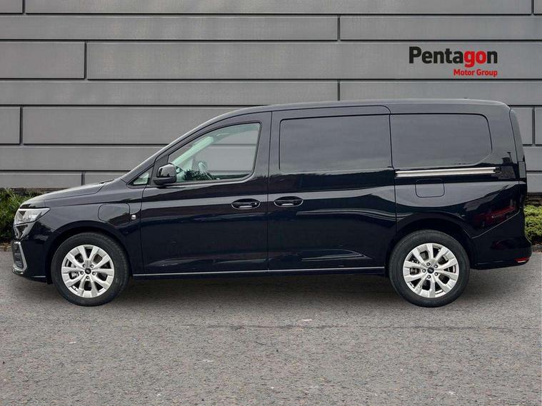 10" touchscreen infotainment display with volume and temperature slider controls, Android Auto and Apple Carplay with USB or wireless connectivity, Brake wear indicator, Enhanced digital cluster with navigation integration, Fordpass connect modem including eCall, Front camera system, PAS, Tyre pressure monitoring system with cluster display of tyre pressures, Wireless charging pad, 4 speakers, DAB radio bluetooth, voice control and navigation, Two USB (45W type C) front power/Data points, Auto Headlamps - Follow Me Home, Automatic headlamps on/off, Automatic windshield wiper, Black painted exterior mirror caps, Body colour door handles with silver door rail, Body coloured exterior tailgate handle, Body coloured front bumper, Body coloured rear bumper, Chrome grille and fog light surrounds, Day and night inside mirror, Dual power heated mirrors, Emergency brake light flashing, Front fog lights, High mounted stop lamp, Less roof rails, Misfuel Inhibitor, Power folding door mirrors, Power front windows - One touch up-down, Quickclear electric windshield defroster, Rear tinted glass, Standard green class windscreen, Tail lamps, Weather protection seals, 12V socket in cabin, 2 way front headrestraints, 4 way manually adjustable driver seat, 4 way manually adjustable passenger seat, Cargo area dual LED lights, Cargo area hardboard trim, Centre console with open stowage, Chrome air register, Driver and passenger sunvisor with mirror, Driver seat rotary recliner, Electronic dual zone automatic air conditioning, First row LED light with map lights, Fold flat passenger seat with integrated work surface, Foot pedal, Overhead storage compartment, Pollen filter without carbon filter, Reach and rake adjustable steering column, Recirculation heater, Rubber cab floor cover, Rubber load floor cover, Sensico gear shift knob, Sensico steering wheel, Silver interior door handles, Curtain airbags, Driver and front passenger airbag, Driver and passenger seatbelt reminder, Front active seat belts, Front passenger airbag deactivation, Front seat belt adjuster, 2 remote keys, Ford KeyFree system with power starter button and deadlocking, Immobiliser, Locking wheel bolts, Thatcham alarm system, 12v socket on cargo area, 50L fuel tank, ABS, Charging cable (Type 2 Mode 3), Electric parking brake, Emergency brake assist, ESP, RSC, wind mitigation, Standard duty alternator, Start/stop system, Traction control, Gloss black cluster and infotainment bezels with silver painted instrument panel spear, 17" silver alloy wheels with blue centre caps, 215/55 R17 tyres, Tyre repair kit,