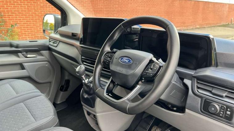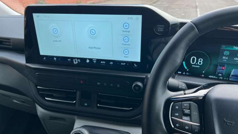 13" Touchscreen, 5G embedded modem, AECS NO SMS/Roll Detect 2G, PAS, Rear USB charge port, Tyre pressure monitor, SYNC 4 - Android Auto/Apple Car Play, advance speech recognition, over the air update capability, Automatic headlights, Automatic windscreen wipers, Body coloured door mirrors, Body coloured front bumper, Body coloured rear bumpers, Daytime running lights, Electric front windows with one touch facility for driver and front passenger, Front mud flaps, Front splash guards, Low roof line, Molded load floor liner, Quickclear front window defroster, Rear cargo hinged door, Rear splash guards, Trailer sway control, 3 Seat Rear seats with under seat stowage, 6 Load compartment tie down loops, Carpet floor in first row and second row, Courtesy light, DCiV Moulded polymer bulkhead, Interior grab handle with driver's sunglasses holder, LED lights, Locking glove box lid, Rear reading light, Rubber in cargo area, Sensico gearshift knob, Super bright load compartment lights, Passenger airbag, 2 remote keys, Alcohol Interlock wiring preparation pack, Keyless entry and start, Locking wheel lug nut, Thatcham category 1 alarm, 20L AdBlue tank, ABS, Diesel particulate filter, ESP, Hill launch assist, Traction control, Full wheelcovers,