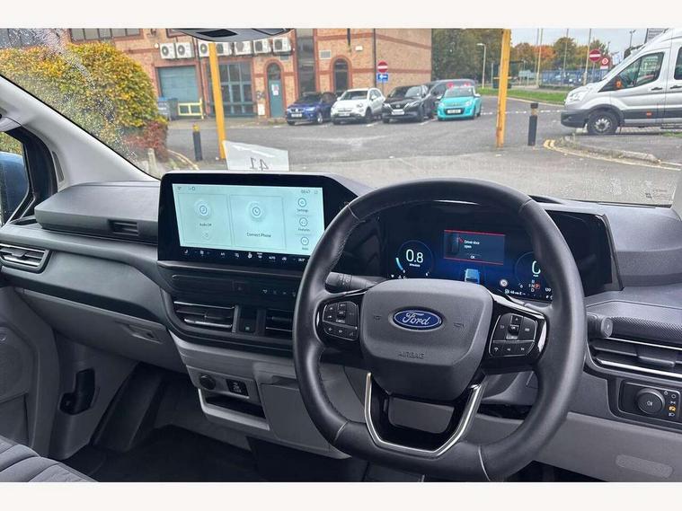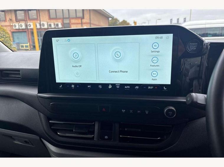 13" Touchscreen, 5G embedded modem, AECS NO SMS/Roll Detect 2G, PAS, Tyre pressure monitor, SYNC 4 - Android Auto/Apple Car Play, advance speech recognition, over the air update capability, Automatic headlights, Automatic windscreen wipers, Body coloured door mirrors, Body coloured front bumper, Body coloured rear bumpers, Daytime running lights, Electric front windows with one touch facility for driver and front passenger, Front mud flaps, Front splash guards, Low roof line, Quickclear front window defroster, Rear cargo hinged door, Rear splash guards, Trailer sway control, 8 Load compartment tie down loops, Courtesy light, Interior grab handle with driver's sunglasses holder, LED lights, Locking glove box lid, Sensico gearshift knob, 2 remote keys, Alcohol Interlock wiring preparation pack, Keyless entry and start, Locking wheel lug nut, Thatcham category 1 alarm, 20L AdBlue tank, ABS, Diesel particulate filter, ESP, Hill launch assist, Traction control, Full wheelcovers,