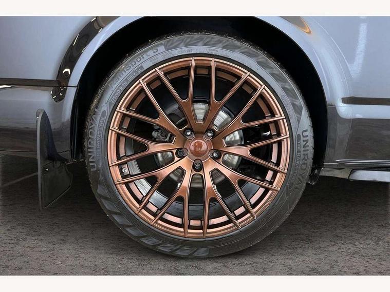 Adaptive cruise control, Cross wind assist, Dimmable illuminated instruments, Driver alert with Multi-function display plus, eCall emergency system, Forward collision warning front assist with autonomous emergency braking, Mobile phone interface, Multi function display plus with black and white display, 2 USB interfaces type C in dashboard, 4 speakers with 2 tweeters and 2 woofers, Composition colour radio with 6.5" touchscreen, Digital radio reception (DAB+), Volkswagen app connect, Automatic headlight control, leaving home and manual coming home feature, Closing rear wing door with unlatching from the inside, Front fog lamps with cornering light, Heat insulating glass (green) in cab and passenger/load compartment, Heated front windscreen, Left convex exterior mirror, Power folding adjustable door mirrors with separately heated, Radiator grille with 2 chrome trims, Rear wing doors without window apertures, Right convex exterior mirror, Transporter nameplate on the rear fender, Windshield wiper intermittent control with rain sensor for windshield wipers, 3 spoke leather wrapped multi function steering wheel, Auto dimming breakaway interior rear view mirror, Comfort headliner in cab, hardboard roof trim in passenger and load compartment, Dust/pollen filter, Front and rear left without window closed side panel in load compartment, Front seats on the right in 1st row of seat, Glove compartment with illumination, Heavy duty tool kit and jack, High partition, Interior plastic loading edge protection, LED Interior lighting in load and passenger compartment, Manual adjustable lumbar support for right single seat in 1st row seats, Refrigerant R134a, Standard lower part dashboard in palladium, Storage compartments on cab seats and reading light, Without right side window apertures in passenger and load compartment, Comfort pack - Transporter, Exterior pack without fog light- Transporter, Non smoker pack - Transporter, 3 point height adjustable seat belts on outer seats cab with electric pretensioners, Driver and front passenger airbag with front passenger airbag deactivation, Warning buzzer and light for driver and front passenger seat belt not fastened, Without child safety lock in passenger compartment, Anti theft alarm system with interior monitoring in cab, backup horn and towing protection, Lockable wheel bolts, 16" chassis with 16" brake system, Diesel particulate filter, Electronic stability control, ABS, ASR with deactivation button, hill start assist and brake assist system, Start/stop system with regenerative breaking, 17" Devonport alloy wheels,