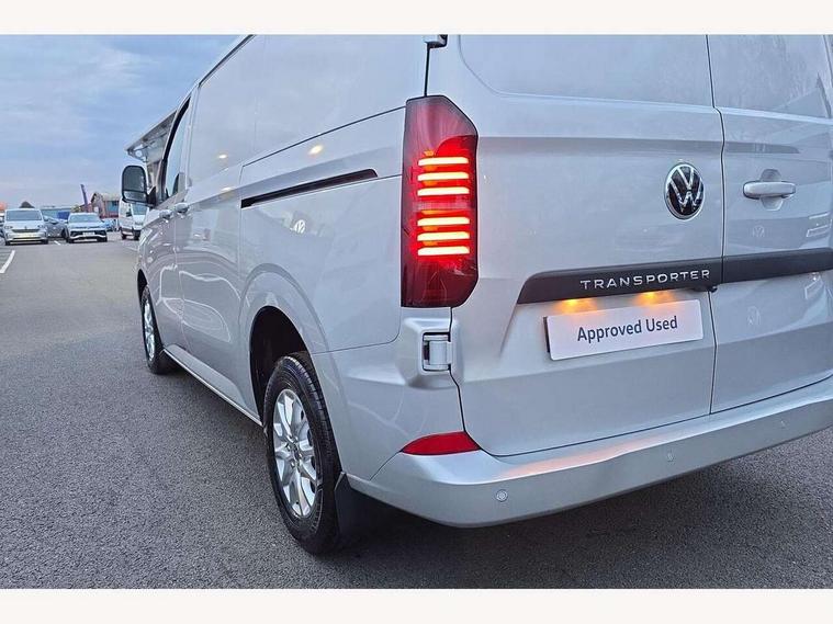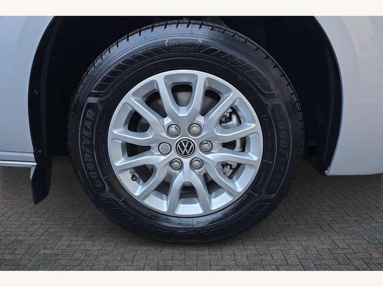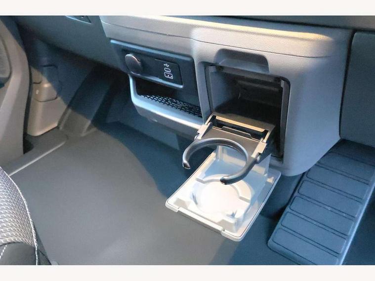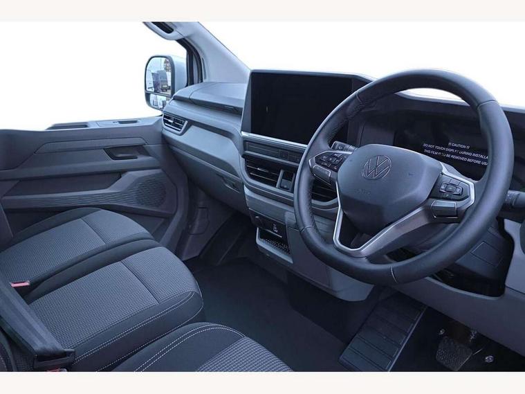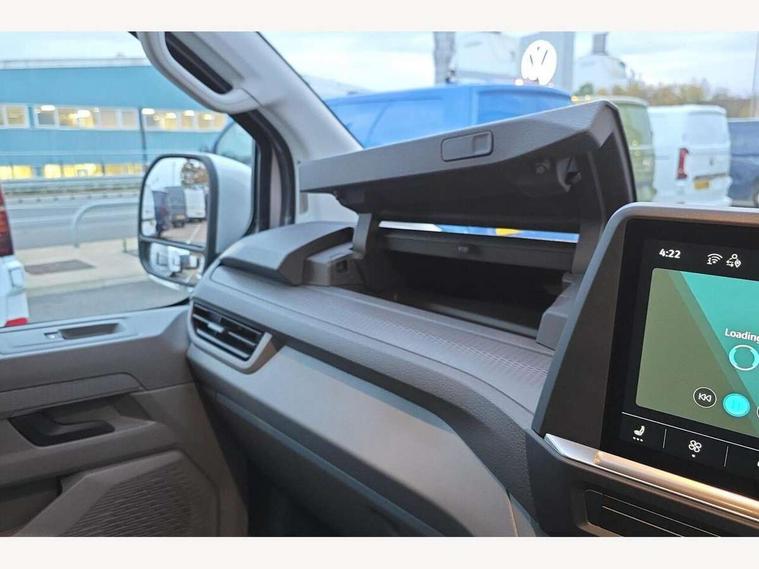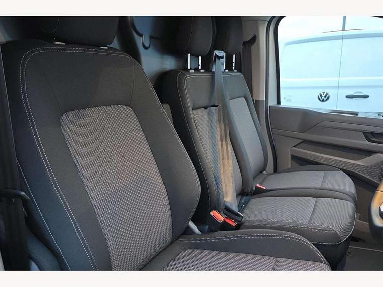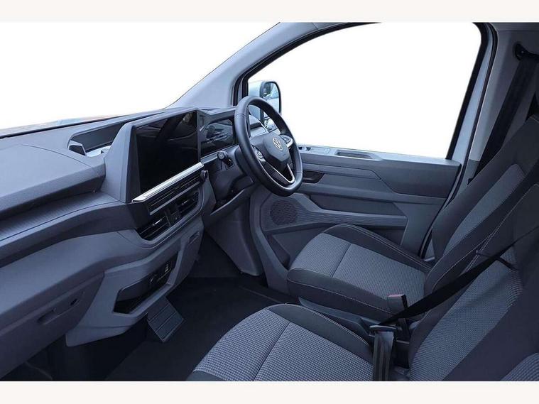 12" digital drivers display, 13" touchscreen infotainment display with wireless app connect and DAB radio, 5G Modem, Adaptive cruise control, Apple CarPlay and Android Auto, Dynamic road sign display, eCall emergency system, Electromechanical speed sensitive power steering, height and longitudinally adjustable steering column, Lane and blind spot assist with exit warning system, Preparation of VW connect and connect plus, Wireless mobile phone charging, Wrong way driver warning, Body colour bumpers, Body coloured door handles, Body coloured door mirrors, Body coloured radiator grille, Electrically heated, adjustable and folding door mirrors, Heat reflecting side window glass, Mud flaps front and rear, Rear Transporter nameplate in black grained decorative trim, Vehicle opening configuration 1x 1st row of seats, 2x all doors, 12V outlet in centre console and 12V outlet on rear right D-pillar, 2x 15-W USB data/charging ports in dashboard and 1x USB-C, 1x USB-A center bottom, 2x LED lights in load compartment, 3x additional super bright LED lights in load compartment, 4 way height and tilt adjustable head restraints, 5 additional USB-C charging ports, Black plastic scuff plate for sliding door in cargo without illumination, Cabin interior lighting, Glasses compartment in driver side roof, Grab handle on A-pillar passenger side, Illuminated lockable glovebox, Lashing rings for reinforced floor covering, Leatherette gear lever, Narrow centre console with cup holder and compartment for mobile phone, Overhead storage compartment, Rubber floor covering in cab, Striped fabric upholstery, Without passenger seats in load compartment, Driver and front passenger airbag with front passenger airbag deactivation, Dual tone horn, Front and curtain airbags for driver and front passenger, Seat belt pretensioner for driver seat, Anti theft alarm system with interior monitoring in cab, backup horn and towing protection, Electronic immobiliser, Lockable wheel bolts, Preparation for alcohol ignition interlock, 5+ Promise, Alternator - 230A, Electromechanical brake booster, Electronic stability control, ABS, ASR with deactivation button, hill start assist and brake assist system,