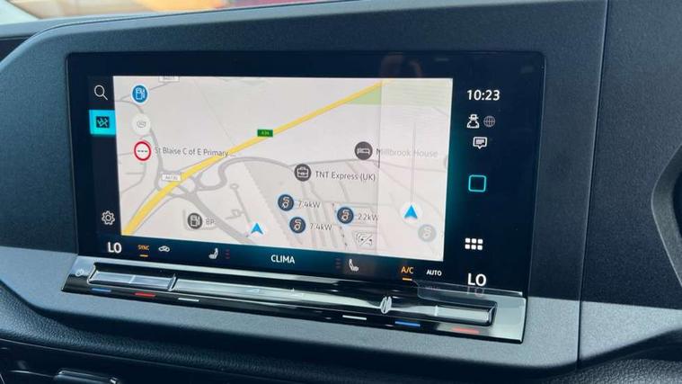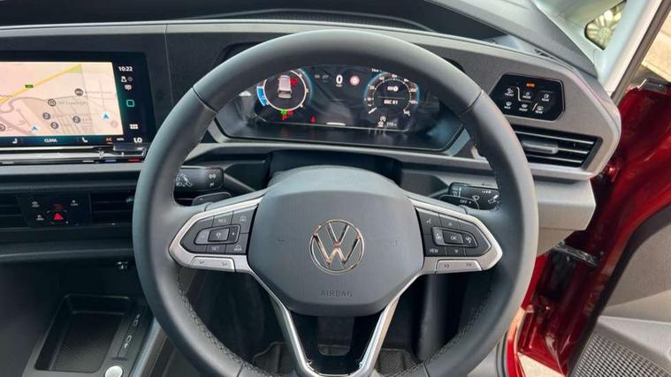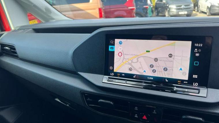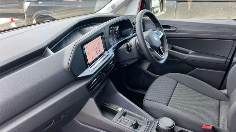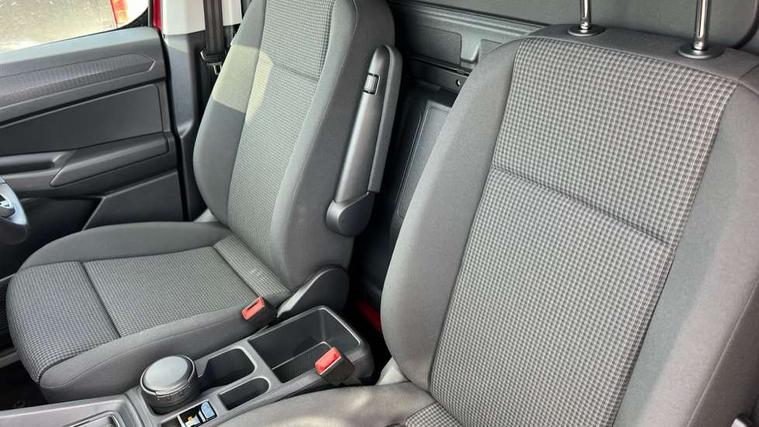 Bluetooth - Mobile phone interface, Car2X technology, Driver alert system, eCall emergency system, Intelligent Speed Assist, Lane assist, Seatbelt warning indicator, Service indicator, Start-stop system with regenerative braking, 2 USB interfaces type C in dashboard, App-Connect - Wireless for Apple CarPlay, DAB Radio, We Connect Plus Preparation, Automatic hazard light activation under emergency braking, Black painted exterior mirror housings, body-colored door handles and Silver sliding door rail, Body coloured bumpers, Electric front windows, LED rear combination lights, LED rear tail lights, Roof rail preparation, Windscreen wiper with variable intermittent delay and wash-wipe system, Dimming breakaway interior rear view mirror, Electronically controlled heating system, ergoComfort seats for driver, Interior light in headliner incorporting LED technology, Lockable glove compartment door with light, Manual heating and ventilation system, Manual height adjustment for front seats and seat cushion inclination and depth adjustment on drivers seat, Multi function leather steering wheel, Power-adjustable lumbar support for drivers seat, Reach and rake adjustable steering column, Six lashing points for securing loads, Steering wheel paddle shift, Storage compartments under driver and front passenger seats, Sun visors with mirror, airbag label on front passenger sun visor, Winter pack plus - Caddy, 3-point seat belts in front, with pretensioner and height adjustment, Driver and front passenger airbag with front passenger airbag deactivation, Tyre pressure monitoring system, Anti-theft alarm system, interior monitoring, backup horn, and towing protection, Electronic engine immobiliser, Remote central locking with deadlocks, interior locking, Anti locking braking system (ABS), Automatic post collision braking system, Brake assist, Diesel particulate filter, Electric parking brake with auto hold function, Electronic brake force distribution (EBD), Electronic differential lock (EDL), Electronic stabilisation programme (ESP), Engine drag torque control (MSR), Hill hold assist, Traction control system (TCS), Decorative beige birch vein inserts, Wheel bolts with anti-theft protection (unlockable),