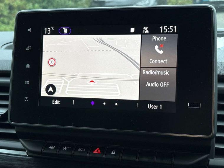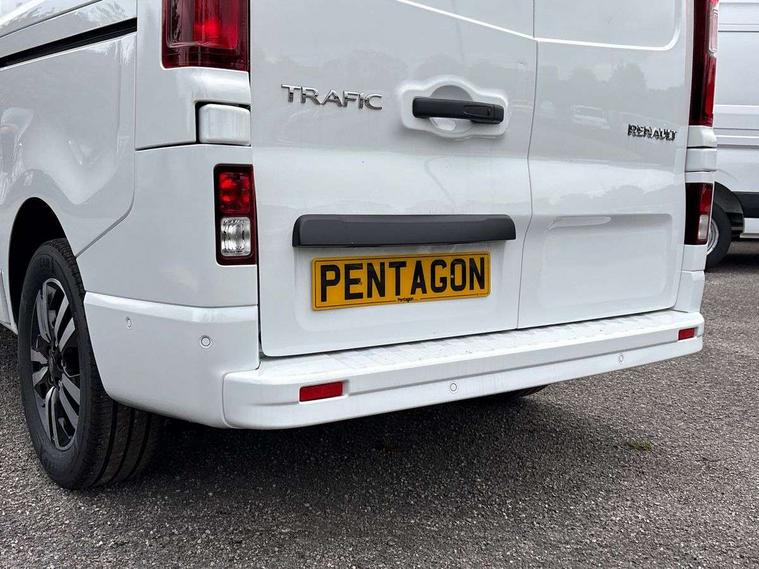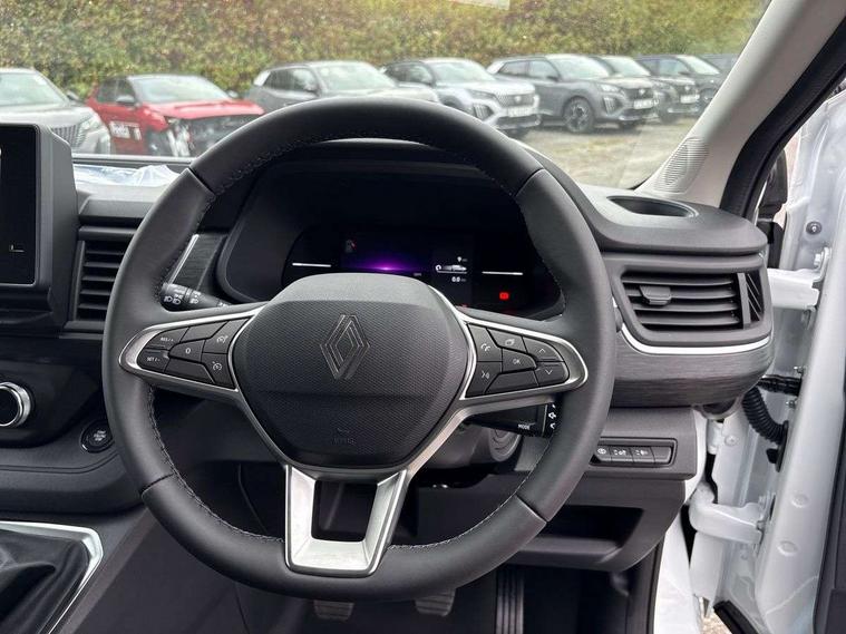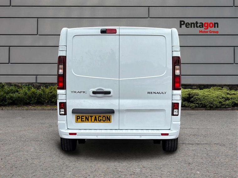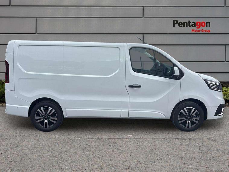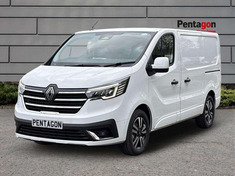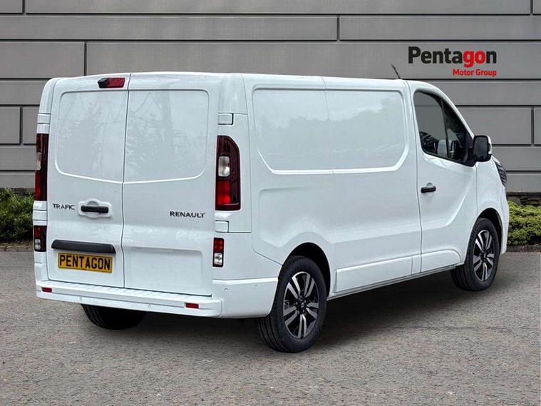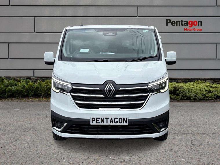 360 degree parking sensors (front, rear and lateral ultra sonic sensors), 7" Colour TFT driver information display, Driver attention alert, Driver drowsiness warning, E-Call - automated emergency call, Easy link navigation with 8" touchscreen DAB radio with bluetooth, USB + aux input, compatible with Apple CarPlay and Android Auto, ECO mode button, Gearshift indicator, Intelligent Speed Assist, Lane departure warning system, PAS, Rear parking camera, Smart phone integration with Android auto & Apple CarPlay, Trip computer, Automatic high beam, Blind spot mirror on passenger sunvisor, Body coloured door mirrors, Body coloured door rail and rear tail light column with chrome grille, Body coloured front bumper, Body coloured side mouldings, Chrome Grille, Electric folding door mirrors, Electric front windows with one touch drivers window, Front fog lights, Full LED headlights with C-shaped DRL, New brand identity, Roof bar fixings, Wide view mirror, 12V power socket in front, 14 load anchorage points, Climate control, Closed glovebox, Height adjustable drivers seat with armrest and lumbar adjustment, Interior LED cabin lighting, Java cloth upholstery, LED load space lighting, Premium dashboard with horizontal grain and chrome styling, Premium faux leather steering wheel, Look pack - Trafic, Parking pack - Trafic, Visibility pack - Trafic, 3 point height adjustable seatbelts with pretensioners and load limiter, Driver and passenger airbags, Driver and passenger seatbelt reminder, Front lateral and curtain airbags and passenger airbag with deactivation, Alarm - Thatcham T1 volumetric alarm, Alcohol interlock pre-device, Deadlocking, Electronic immobiliser, Hands free key card with push button stop/start function, Keyless entry system, Remote central locking, 20L AdBlue tank, 4 disc brakes, 6 speed gearbox, 80 litre fuel tank, ABS with EBD (Electronic Brake force Distribution), Active emergency braking system, ESC (Electronic Stability Control) with Hill Start Assist and Grip Xtend, 17" Avens diamond cut alloy wheels,