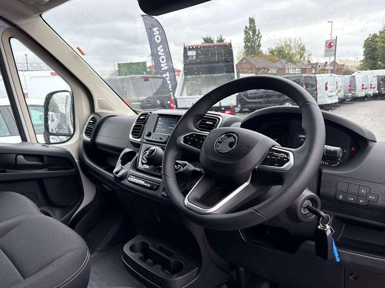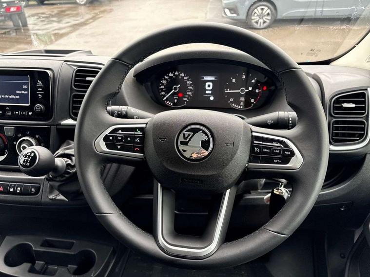 3.5" mono digital display, Advanced emergency braking system - Pedestrian and cyclist, Breakdown call, Cross wind assist, Cruise control with variable speed limiter, Digital fuel and water gauges, Driver drowsiness detection, Electric power steering, Global telematics box module, Intelligent Speed Assist, Lane support system, Pedestrian warning speaker, Traffic sign recognition, Tyre pressure monitor, Vauxhall connect, Phone book access, Vehicle microphone, Aerodynamic kit - Central spoiler, active grille shutter, Electric front windows, Flexible roof mounted aerial, High level third brake light, Side protection mouldings, Twin lens door mirrors with electrically adjustable and heated upper mirror, 6 way divers seat with lumbar adjustment, Driver seat armrest, Leashing hooks in cargo area, Two cup holders and mobile phone storage in centre or lower dashboard, Driver's airbag, Emergency call, Deadlocks, Perimeter alarm, Anti lock braking system (ABS), Electronic brake force distribution, Electronic Stability Control (ESC), Emergency brake assist, Leaf spring rear suspension, Post collision braking system, Trailer stability control system,