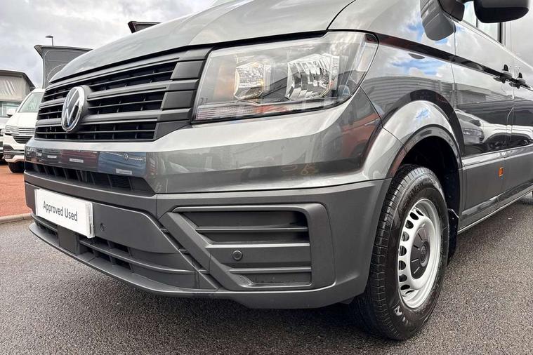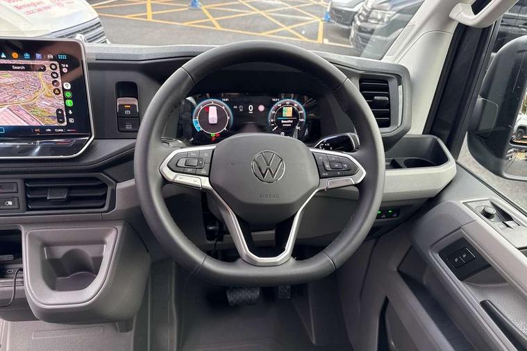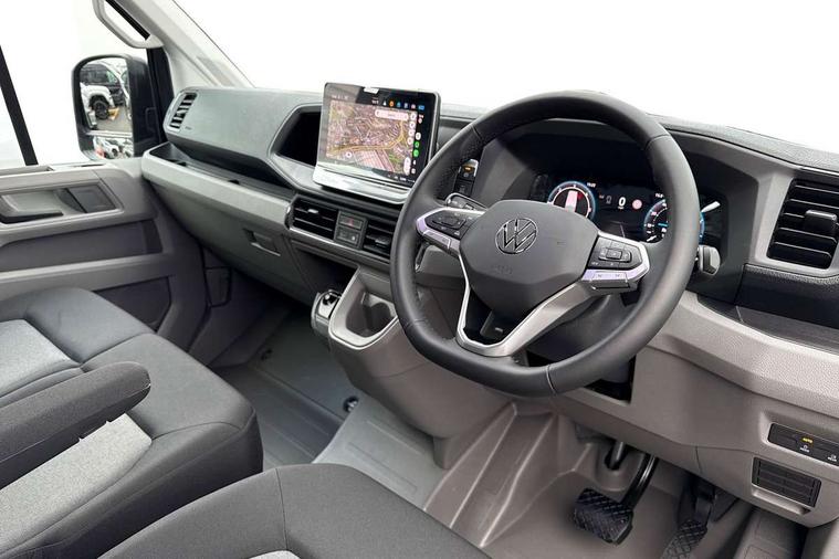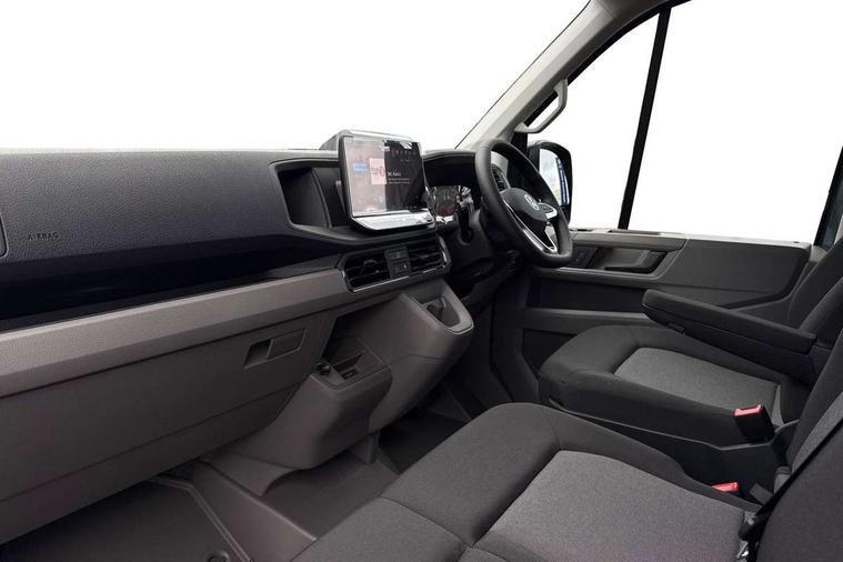 Bluetooth, Digital clock, Driver alert system, E-call + We connect basic preparation, Instrument cluster, Lights on warning buzzer, Locking fuel cap, Multi-function Display Plus, Rev counter, Service indicator, Speedometer, Voice control system, Composition media with 6.5" with we connect plus prep, 4 speaker, multifun display plus, USB, mob interface, app con, "We connect function", DAB Radio, Auto low beam mode, Leaving home function and manual coming home function, Cab doors, Convex and wide angle mirror, Driver seatbelt warning light, Electric windows, Electrically heated and adjustable door mirrors, Half painted front bumper, Heat insulating glass, Indicators in front door mirrors, One towing eye in front, Rear wing doors with 270 degree hinges, Special identification plate, Unpainted radiator grille, Air recirculation system, Ashtray, Centre console storage tray, CFCU preparation, Charcoal filter, Climatic air conditioning, Document holder on centre console, Drinks holders, Electromechanical Servotronic steering, Electronically controlled heating system, Fully adjustable suspension type driver seat, Grab handles on rear entry pillars, Height adjustable head restraints, Height and reach adjustable steering wheel, Illuminated glove compartment with lockable lid, Interior light, including 2 reading lights, Interior light, switchable by door, Jack and tool kit, Preparation for interface for external use with terminal block, Storage compartments in doors and in step, right, Storage tray on dashboard, Two 12V outlets in the cab (in the dashboard), Without rear side trim panel passenger load compartment, Non-smokers pack - Crafter, 3 point inertia reel belt on all seats, Automatic hazard light with emergency braking, Crosswind assist, Driver and front passenger airbag with front passenger airbag deactivation, Height adjustable seatbelts for outer cab seats, 1 rigid key, Anti-theft alarm with interior monitor, back up horn and tow away protect, overhead storage with two 1-DIN, reading light, SAFELOCK with 2 remote keys, Engine immobiliser, ABS, Automatic post collision braking system, EBA, EBD, EDL, ESP, Front disc brakes, HBA, Hill start assist, Parking brake - hill hold control, Start and stop system with regenerative braking, TCS, Hub cap covers,