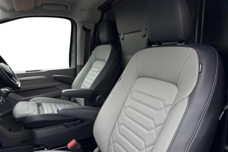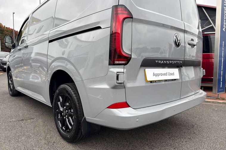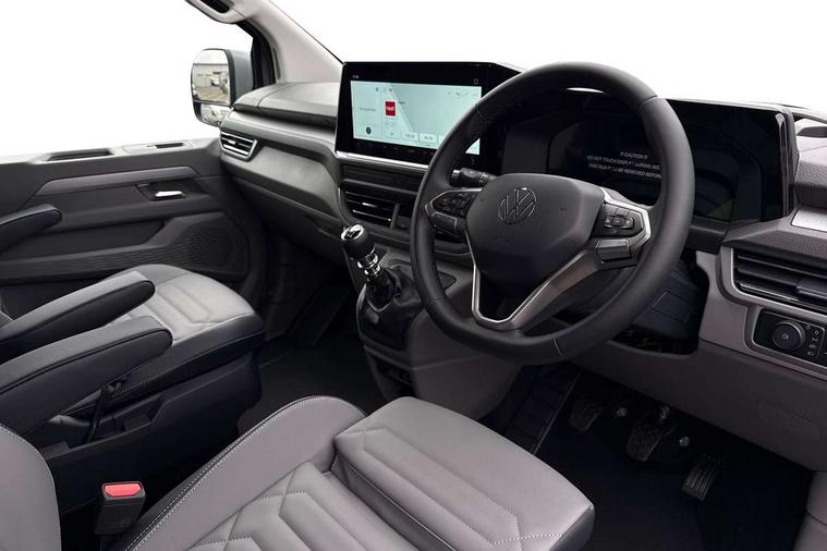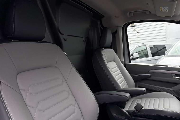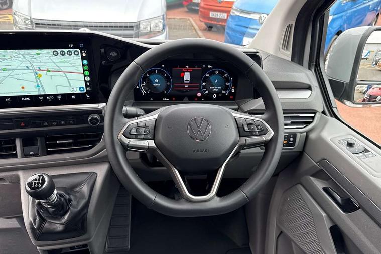 12" digital drivers display, 13" touchscreen infotainment display with wireless app connect and DAB radio, 5G Modem, Adaptive cruise control, Apple CarPlay and Android Auto, Dynamic road sign display, eCall emergency system, Electromechanical speed sensitive power steering, height and longitudinally adjustable steering column, Lane and blind spot assist with exit warning system, Preparation of VW connect and connect plus, Wireless mobile phone charging, Wrong way driver warning, Body colour bumpers, Body coloured door handles, Body coloured door mirrors, Body coloured radiator grille, Electrically heated, adjustable and folding door mirrors, Heat reflecting side window glass, Mud flaps front and rear, Rear Transporter nameplate in black grained decorative trim, Vehicle opening configuration 1x 1st row of seats, 2x all doors, 12V outlet in centre console and 12V outlet on rear right D-pillar, 2x 15-W USB data/charging ports in dashboard and 1x USB-C, 1x USB-A center bottom, 2x LED lights in load compartment, 3x additional super bright LED lights in load compartment, 4 way height and tilt adjustable head restraints, 5 additional USB-C charging ports, Black plastic scuff plate for sliding door in cargo without illumination, Cabin interior lighting, Glasses compartment in driver side roof, Grab handle on A-pillar passenger side, Illuminated lockable glovebox, Lashing rings for reinforced floor covering, Leatherette gear lever, Narrow centre console with cup holder and compartment for mobile phone, Overhead storage compartment, Rubber floor covering in cab, Striped fabric upholstery, Without passenger seats in load compartment, Driver and front passenger airbag with front passenger airbag deactivation, Dual tone horn, Front and curtain airbags for driver and front passenger, Seat belt pretensioner for driver seat, Anti theft alarm system with interior monitoring in cab, backup horn and towing protection, Electronic immobiliser, Lockable wheel bolts, Preparation for alcohol ignition interlock, 5+ Promise, Alternator - 230A, Electromechanical brake booster, Electronic stability control, ABS, ASR with deactivation button, hill start assist and brake assist system,