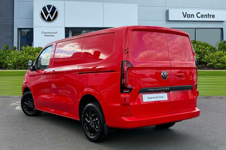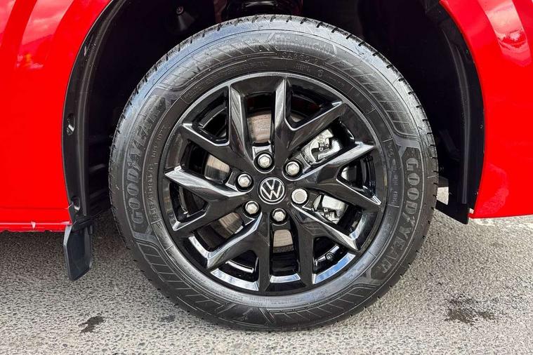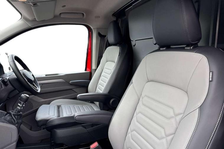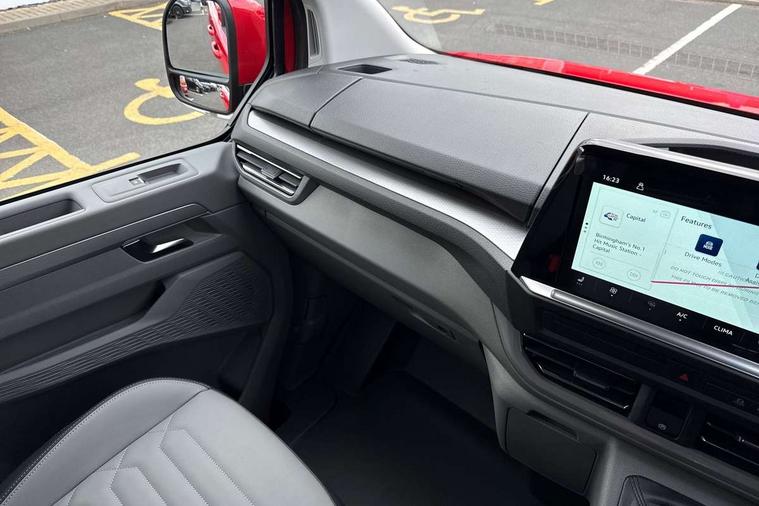 12" digital drivers display, 13" touchscreen infotainment display with wireless app connect and DAB radio, 5G Modem, Adaptive cruise control, Apple CarPlay and Android Auto, Dynamic road sign display, eCall emergency system, Electromechanical speed sensitive power steering, height and longitudinally adjustable steering column, Lane and blind spot assist with exit warning system, Preparation of VW connect and connect plus, Wireless mobile phone charging, Wrong way driver warning, Body colour bumpers, Body coloured door handles, Body coloured door mirrors, Body coloured radiator grille, Electrically heated, adjustable and folding door mirrors, Heat reflecting side window glass, Mud flaps front and rear, Rear Transporter nameplate in black grained decorative trim, Vehicle opening configuration 1x 1st row of seats, 2x all doors, 12V outlet in centre console and 12V outlet on rear right D-pillar, 2x 15-W USB data/charging ports in dashboard and 1x USB-C, 1x USB-A center bottom, 2x LED lights in load compartment, 3x additional super bright LED lights in load compartment, 4 way height and tilt adjustable head restraints, 5 additional USB-C charging ports, Black plastic scuff plate for sliding door in cargo without illumination, Cabin interior lighting, Glasses compartment in driver side roof, Grab handle on A-pillar passenger side, Illuminated lockable glovebox, Lashing rings for reinforced floor covering, Leatherette gear lever, Narrow centre console with cup holder and compartment for mobile phone, Overhead storage compartment, Rubber floor covering in cab, Striped fabric upholstery, Without passenger seats in load compartment, Driver and front passenger airbag with front passenger airbag deactivation, Dual tone horn, Front and curtain airbags for driver and front passenger, Seat belt pretensioner for driver seat, Anti theft alarm system with interior monitoring in cab, backup horn and towing protection, Electronic immobiliser, Lockable wheel bolts, Preparation for alcohol ignition interlock, 5+ Promise, Alternator - 230A, Electromechanical brake booster, Electronic stability control, ABS, ASR with deactivation button, hill start assist and brake assist system,