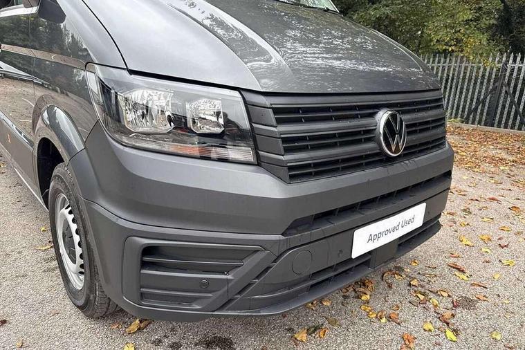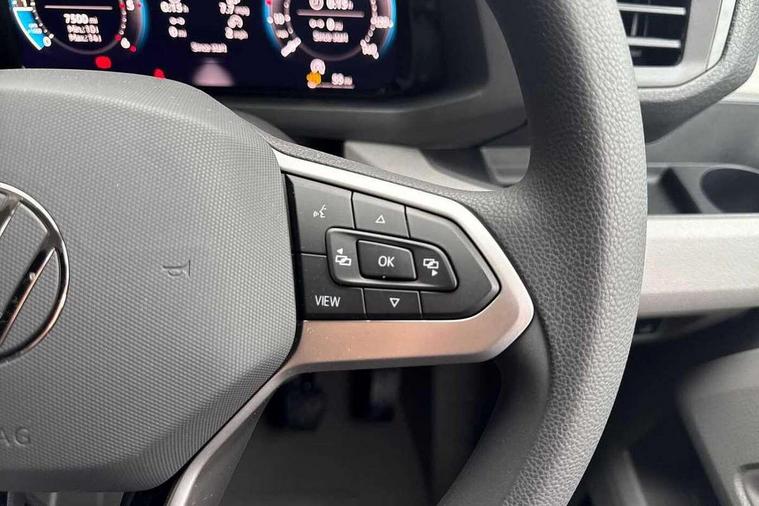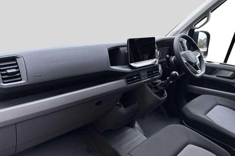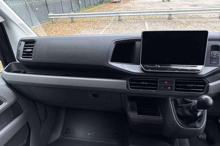 Advanced driver attention and drowsiness monitor, Blind spot monitor, Bluetooth, Digital clock, Digital cockpit with active Info display, Dynamic road sign display, E-call + We connect basic preparation, Forward collision warning with warning and braking reaction to vehicles, pedestrians and cyclists, Front assist including city emergency braking, Instrument cluster, Lane keeping assist, Lights on warning buzzer, Locking fuel cap, Rev counter, Roof console for interior lighting control, Service indicator, Speedometer, USB socket at top of windscreen, Wireless charging, 2 USB C ports in dashboard, DAB Radio, Auto low beam mode, Leaving home function and manual coming home function, Black unpainted plastic front bumper, Cab doors, Convex and wide angle mirror, Driver seatbelt warning light, Electric windows, Heat insulating glass, Indicators in front door mirrors, One towing eye in front, Rear badges, Special identification plate, Touch panel control for exterior lights, Unpainted radiator grille, Windscreen wiper auto control with light and rain sensor, Air recirculation system, Ashtray, Centre console storage tray, CFCU preparation, Charcoal filter, Document holder on centre console, Drinks holders, Electromechanical Servotronic steering, Electronically controlled heating system, Fully adjustable suspension type driver seat, Height adjustable head restraints, Height and reach adjustable steering wheel, Illuminated glove compartment with lockable lid, Interior light, including 2 reading lights, Interior light, switchable by door, Jack and tool kit, Preparation for interface for external use with terminal block, Storage compartments in doors and in step, right, Storage tray on dashboard, Two 12V outlets in the cab (in the dashboard), Without rear side trim panel passenger load compartment, Non-smokers pack - Crafter, 3 point inertia reel belt on all seats, Automatic hazard light with emergency braking, Crosswind assist, Driver and front passenger airbag with front passenger airbag deactivation, Height adjustable seatbelts for outer cab seats, 1 rigid key, Central locking system with Keyless Go without SAFELOCK entry - Keyless entry and start, Engine immobiliser, ABS, Automatic post collision braking system, EBA, EBD, EDL, Electronic parking brake - hill hold control, ESP, Front disc brakes, HBA, Hill start assist, Start and stop system with regenerative braking, TCS, Hub cap covers,