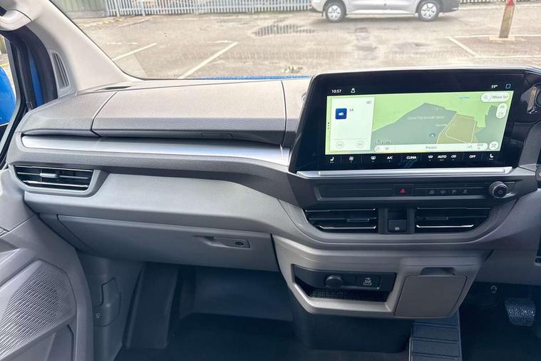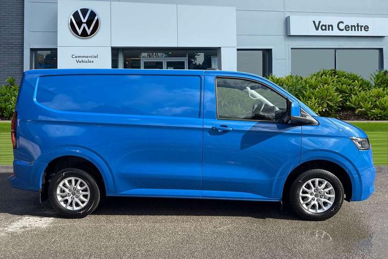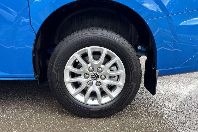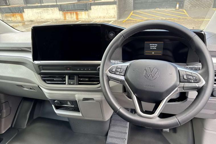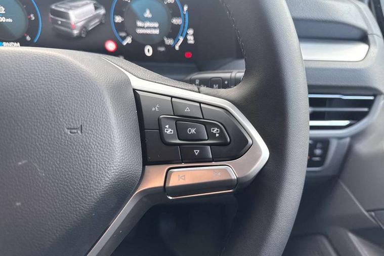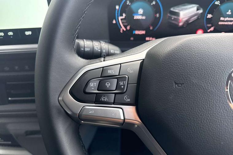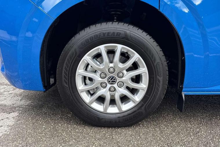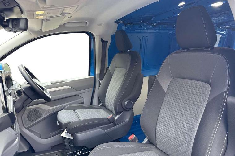 12" digital drivers display, 13" touchscreen infotainment display with wireless app connect and DAB radio, 5G Modem, Adaptive cruise control, Apple CarPlay and Android Auto, Dynamic road sign display, eCall emergency system, Electromechanical speed sensitive power steering, height and longitudinally adjustable steering column, Lane and blind spot assist with exit warning system, Preparation of VW connect and connect plus, Traffic jam assist, Wireless mobile phone charging, Wrong way driver warning, Body colour bumpers, Body coloured door handles, Body coloured door mirrors, Body coloured radiator grille, Electrically heated, adjustable and folding door mirrors, Heat reflecting side window glass, Mud flaps front and rear, Rear Transporter nameplate in black grained decorative trim, Vehicle opening configuration 1x 1st row of seats, 2x all doors, 12V outlet in centre console and 12V outlet on rear right D-pillar, 2x 15-W USB data/charging ports in dashboard and 1x USB-C, 1x USB-A center bottom, 2x LED lights in load compartment, 3x additional super bright LED lights in load compartment, 4 way height and tilt adjustable head restraints, 5 additional USB-C charging ports, Black plastic scuff plate for sliding door in cargo without illumination, Cabin interior lighting, Gear selector lever on steering wheel, Glasses compartment in driver side roof, Grab handle on A-pillar passenger side, Illuminated lockable glovebox, Lashing rings for reinforced floor covering, Narrow centre console with cup holder and compartment for mobile phone, Overhead storage compartment, Rubber floor covering in cab, Striped fabric upholstery, Without passenger seats in load compartment, Driver and front passenger airbag with front passenger airbag deactivation, Dual tone horn, Front and curtain airbags for driver and front passenger, Seat belt pretensioner for driver seat, Anti theft alarm system with interior monitoring in cab, backup horn and towing protection, Electronic immobiliser, Lockable wheel bolts, Preparation for alcohol ignition interlock, 5+ Promise, Alternator - 230A, Electromechanical brake booster, Electronic stability control, ABS, ASR with deactivation button, hill start assist and brake assist system,