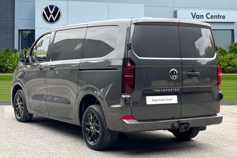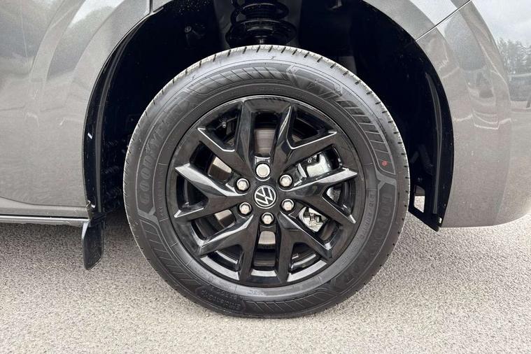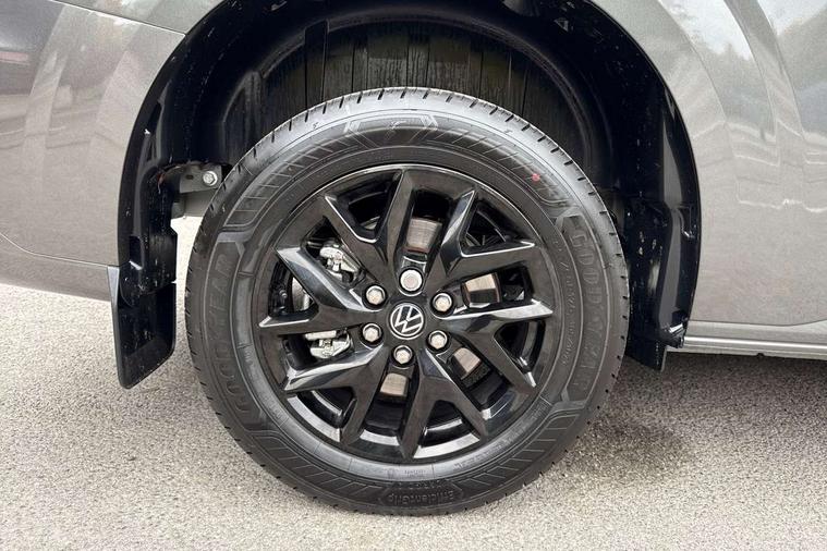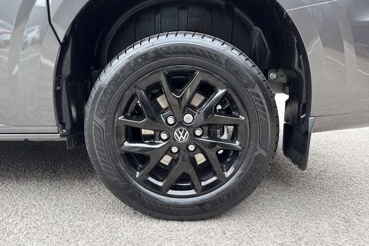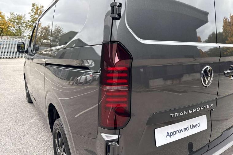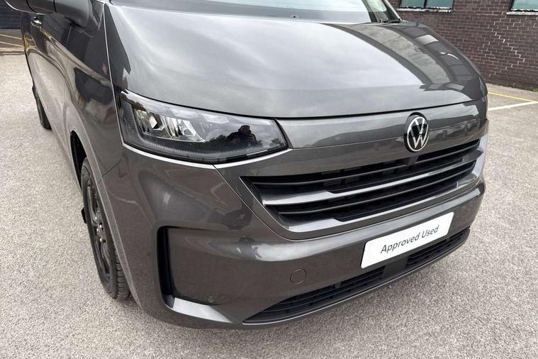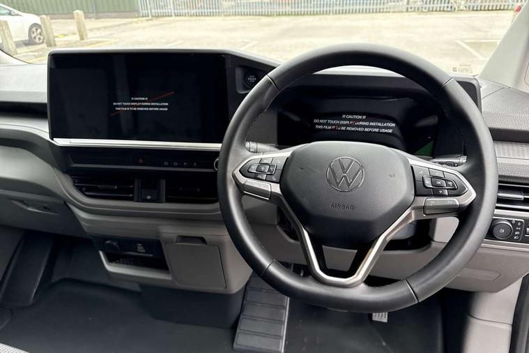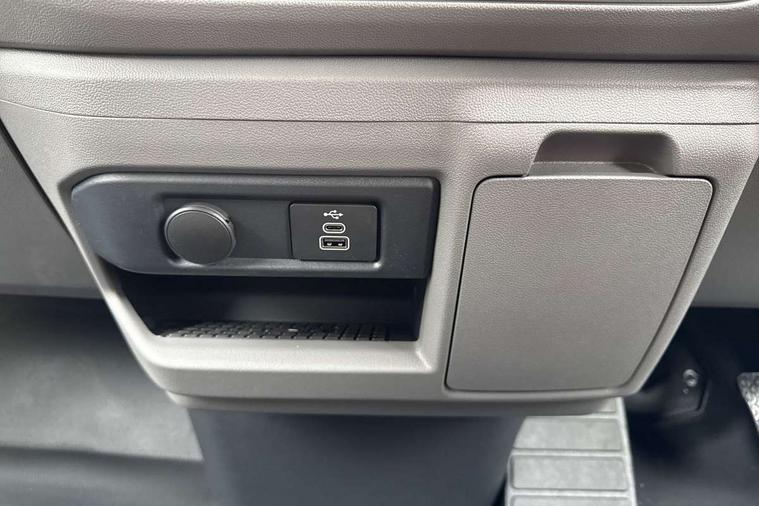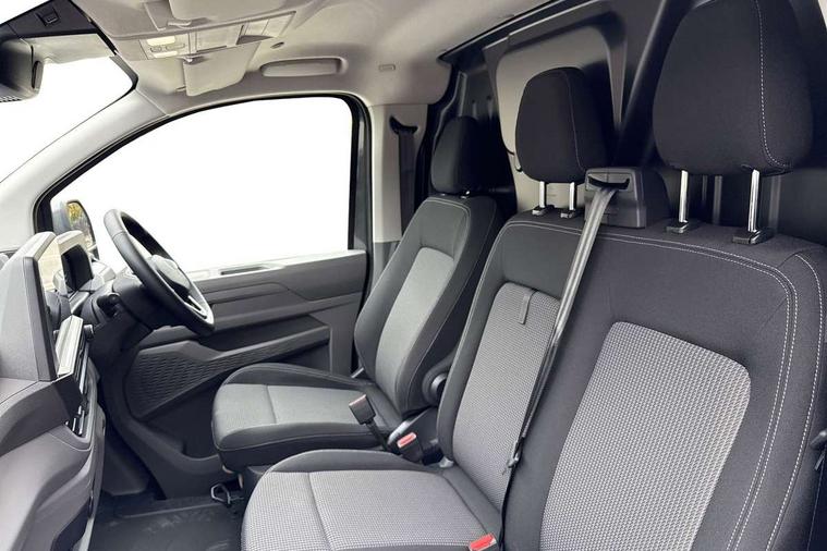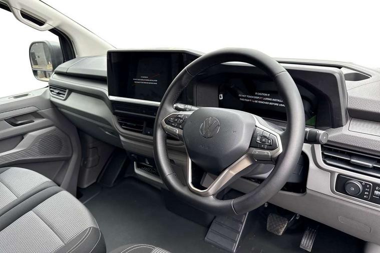 12" digital drivers display, 13" touchscreen infotainment display with wireless app connect and DAB radio, 5G Modem, Adaptive cruise control, Apple CarPlay and Android Auto, Dynamic road sign display, eCall emergency system, Electromechanical speed sensitive power steering, height and longitudinally adjustable steering column, Lane and blind spot assist with exit warning system, Preparation of VW connect and connect plus, Traffic jam assist, Wireless mobile phone charging, Wrong way driver warning, Body colour bumpers, Body coloured door handles, Body coloured door mirrors, Body coloured radiator grille, Electrically heated, adjustable and folding door mirrors, Heat reflecting side window glass, Mud flaps front and rear, Rear Transporter nameplate in black grained decorative trim, Vehicle opening configuration 1x 1st row of seats, 2x all doors, 12V outlet in centre console and 12V outlet on rear right D-pillar, 2x 15-W USB data/charging ports in dashboard and 1x USB-C, 1x USB-A center bottom, 2x LED lights in load compartment, 3x additional super bright LED lights in load compartment, 4 way height and tilt adjustable head restraints, 5 additional USB-C charging ports, Black plastic scuff plate for sliding door in cargo without illumination, Cabin interior lighting, Gear selector lever on steering wheel, Glasses compartment in driver side roof, Grab handle on A-pillar passenger side, Illuminated lockable glovebox, Lashing rings for reinforced floor covering, Narrow centre console with cup holder and compartment for mobile phone, Overhead storage compartment, Rubber floor covering in cab, Striped fabric upholstery, Without passenger seats in load compartment, Driver and front passenger airbag with front passenger airbag deactivation, Dual tone horn, Front and curtain airbags for driver and front passenger, Seat belt pretensioner for driver seat, Anti theft alarm system with interior monitoring in cab, backup horn and towing protection, Electronic immobiliser, Lockable wheel bolts, Preparation for alcohol ignition interlock, 5+ Promise, Alternator - 230A, Electromechanical brake booster, Electronic stability control, ABS, ASR with deactivation button, hill start assist and brake assist system,