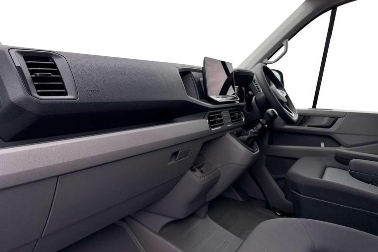 Bluetooth, Digital clock, Driver alert system, E-call + We connect basic preparation, Instrument cluster, Lights on warning buzzer, Locking fuel cap, Multi-function Display Plus, Rev counter, Service indicator, Speedometer, Voice control system, Composition media with 6.5" with we connect plus prep, 4 speaker, multifun display plus, USB, mob interface, app con, "We connect function", DAB Radio, Auto low beam mode, Leaving home function and manual coming home function, Cab doors, Convex and wide angle mirror, Driver seatbelt warning light, Electric windows, Electrically heated and adjustable door mirrors, Half painted front bumper, Heat insulating glass, Indicators in front door mirrors, One towing eye in front, Rear wing doors with 270 degree hinges, Special identification plate, Unpainted radiator grille, Air recirculation system, Ashtray, Centre console storage tray, CFCU preparation, Charcoal filter, Climatic air conditioning, Document holder on centre console, Drinks holders, Electromechanical Servotronic steering, Electronically controlled heating system, Fully adjustable suspension type driver seat, Grab handles on rear entry pillars, Height adjustable head restraints, Height and reach adjustable steering wheel, Illuminated glove compartment with lockable lid, Interior light, including 2 reading lights, Interior light, switchable by door, Jack and tool kit, Preparation for interface for external use with terminal block, Storage compartments in doors and in step, right, Storage tray on dashboard, Two 12V outlets in the cab (in the dashboard), Without rear side trim panel passenger load compartment, Non-smokers pack - Crafter, 3 point inertia reel belt on all seats, Automatic hazard light with emergency braking, Crosswind assist, Driver and front passenger airbag with front passenger airbag deactivation, Height adjustable seatbelts for outer cab seats, 1 rigid key, Anti-theft alarm with interior monitor, back up horn and tow away protect, overhead storage with two 1-DIN, reading light, SAFELOCK with 2 remote keys, Engine immobiliser, ABS, Automatic post collision braking system, EBA, EBD, EDL, ESP, Front disc brakes, HBA, Hill start assist, Parking brake - hill hold control, Start and stop system with regenerative braking, TCS, Hub cap covers,