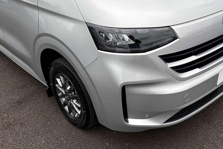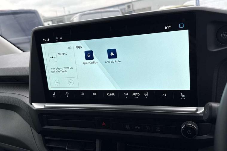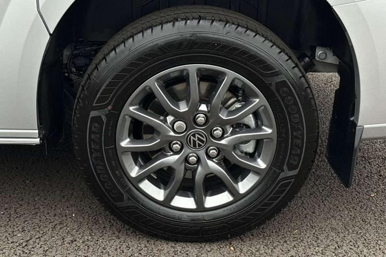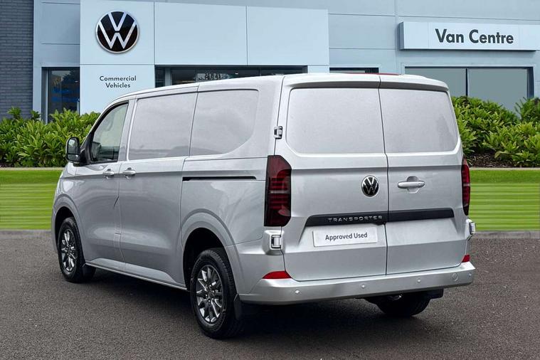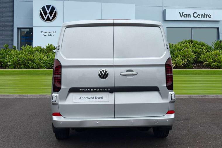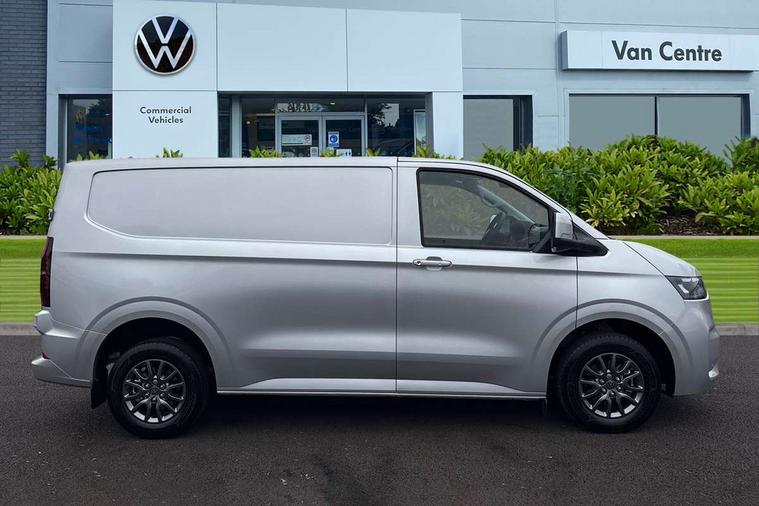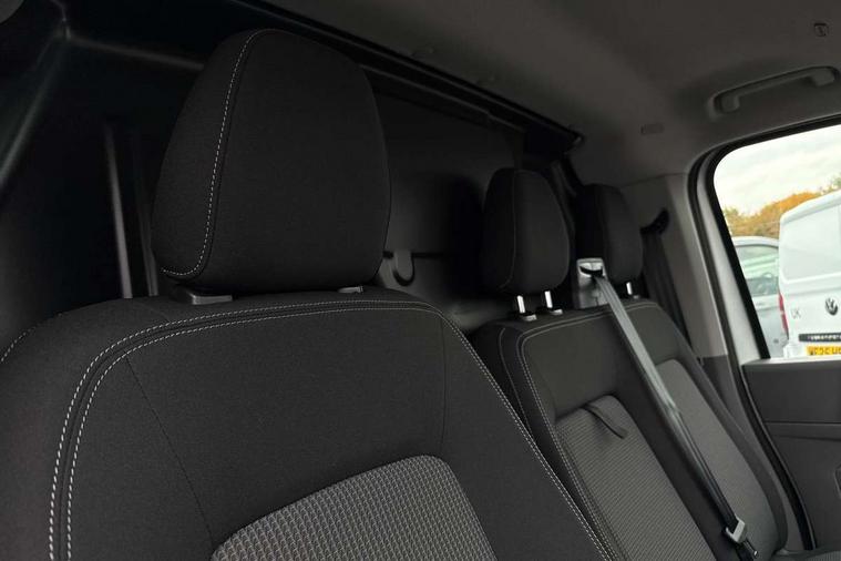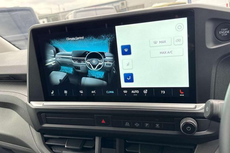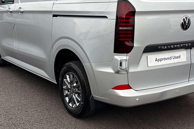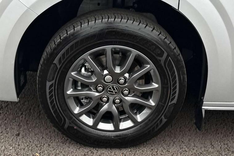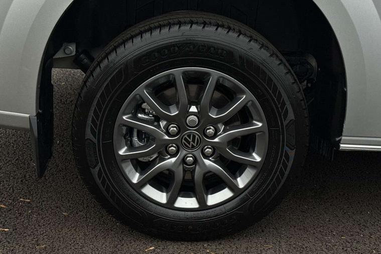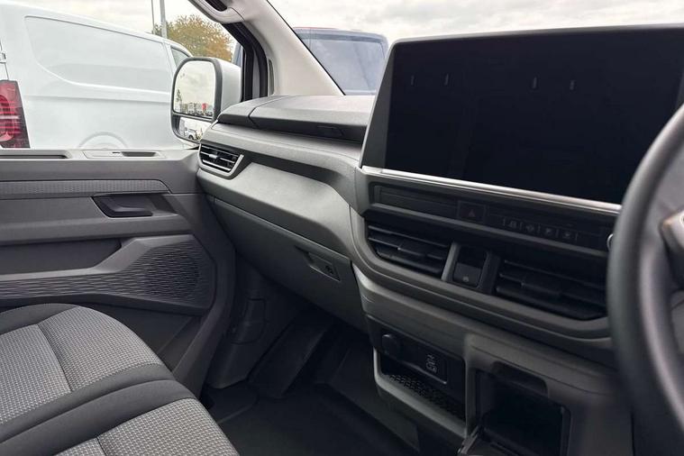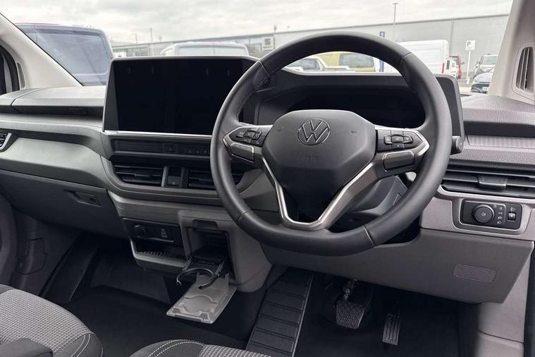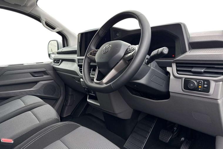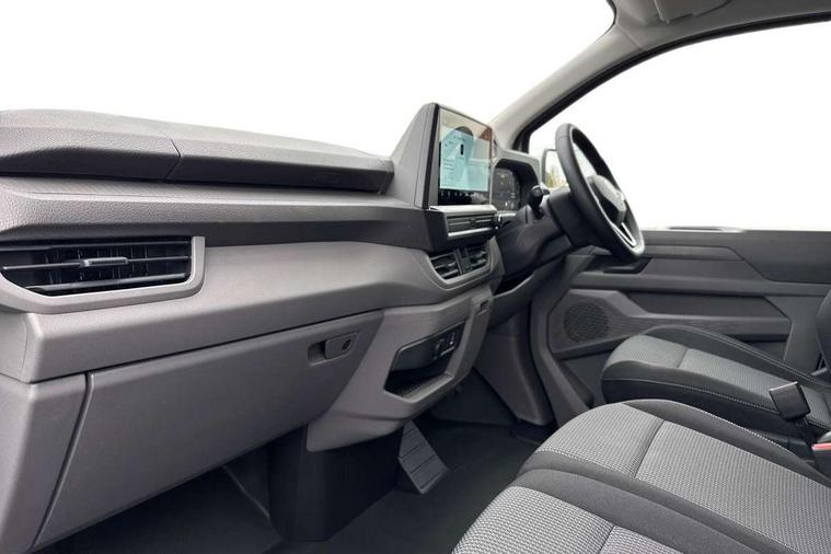 12" digital drivers display, 13" touchscreen infotainment display with wireless app connect and DAB radio, 5G Modem, Adaptive cruise control, Apple CarPlay and Android Auto, Dynamic road sign display, eCall emergency system, Electromechanical speed sensitive power steering, height and longitudinally adjustable steering column, Lane and blind spot assist with exit warning system, Preparation of VW connect and connect plus, Traffic jam assist, Wireless mobile phone charging, Wrong way driver warning, Body colour bumpers, Body coloured door handles, Body coloured door mirrors, Body coloured radiator grille, Electrically heated, adjustable and folding door mirrors, Heat reflecting side window glass, Mud flaps front and rear, Rear Transporter nameplate in black grained decorative trim, Vehicle opening configuration 1x 1st row of seats, 2x all doors, 12V outlet in centre console and 12V outlet on rear right D-pillar, 2x 15-W USB data/charging ports in dashboard and 1x USB-C, 1x USB-A center bottom, 2x LED lights in load compartment, 3x additional super bright LED lights in load compartment, 4 way height and tilt adjustable head restraints, 5 additional USB-C charging ports, Black plastic scuff plate for sliding door in cargo without illumination, Cabin interior lighting, Gear selector lever on steering wheel, Glasses compartment in driver side roof, Grab handle on A-pillar passenger side, Illuminated lockable glovebox, Lashing rings for reinforced floor covering, Narrow centre console with cup holder and compartment for mobile phone, Overhead storage compartment, Rubber floor covering in cab, Striped fabric upholstery, Without passenger seats in load compartment, Driver and front passenger airbag with front passenger airbag deactivation, Dual tone horn, Front and curtain airbags for driver and front passenger, Seat belt pretensioner for driver seat, Anti theft alarm system with interior monitoring in cab, backup horn and towing protection, Electronic immobiliser, Lockable wheel bolts, Preparation for alcohol ignition interlock, 5+ Promise, Alternator - 230A, Electromechanical brake booster, Electronic stability control, ABS, ASR with deactivation button, hill start assist and brake assist system,