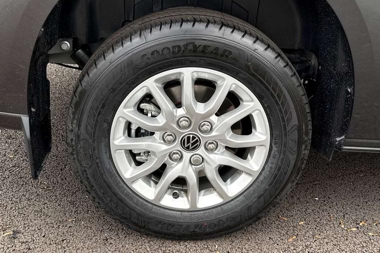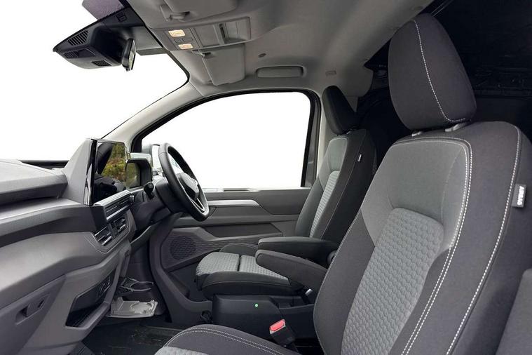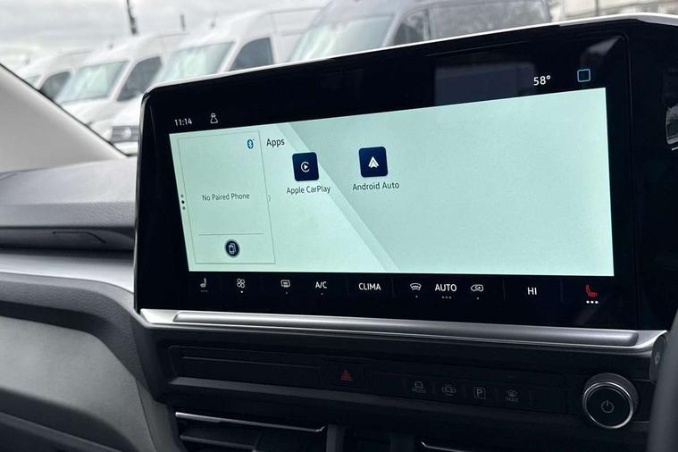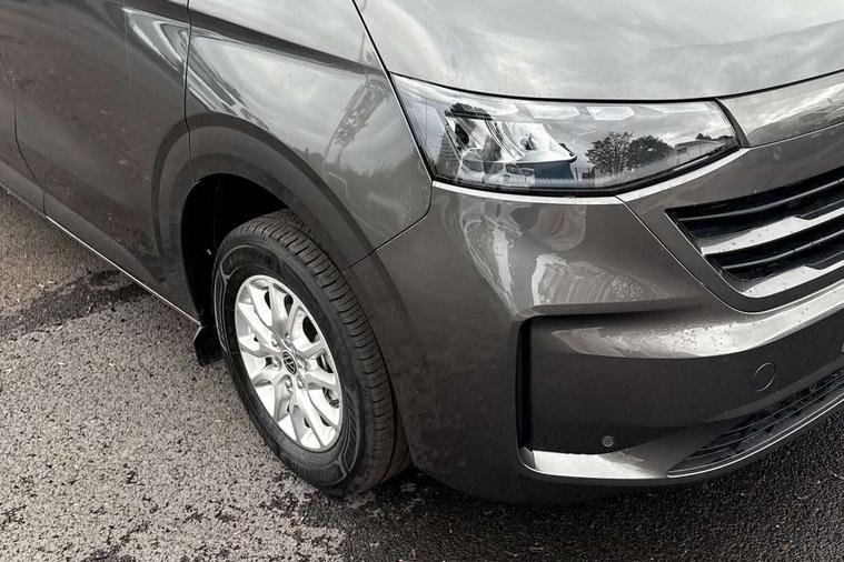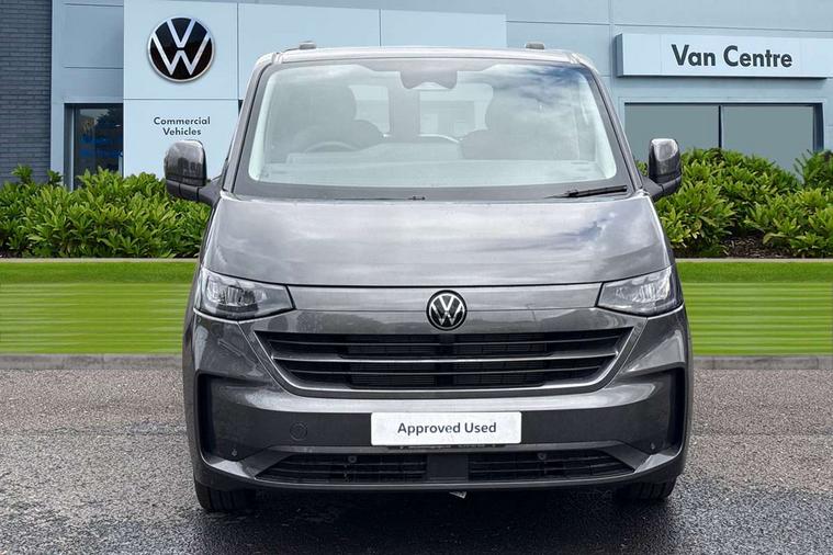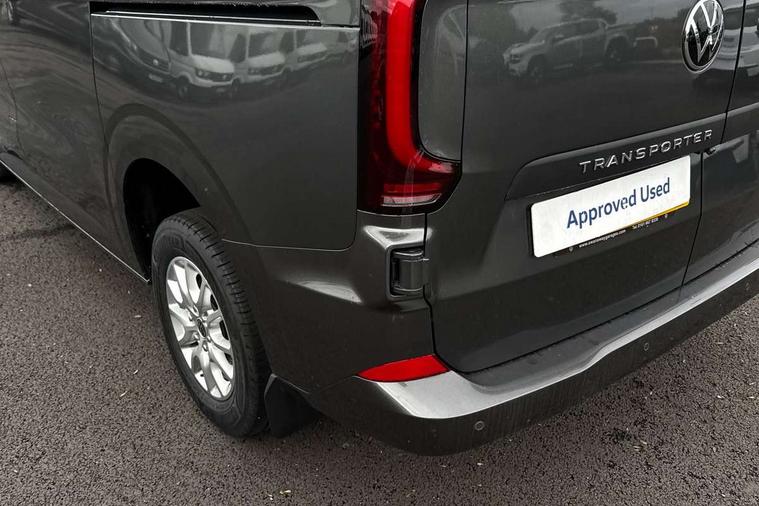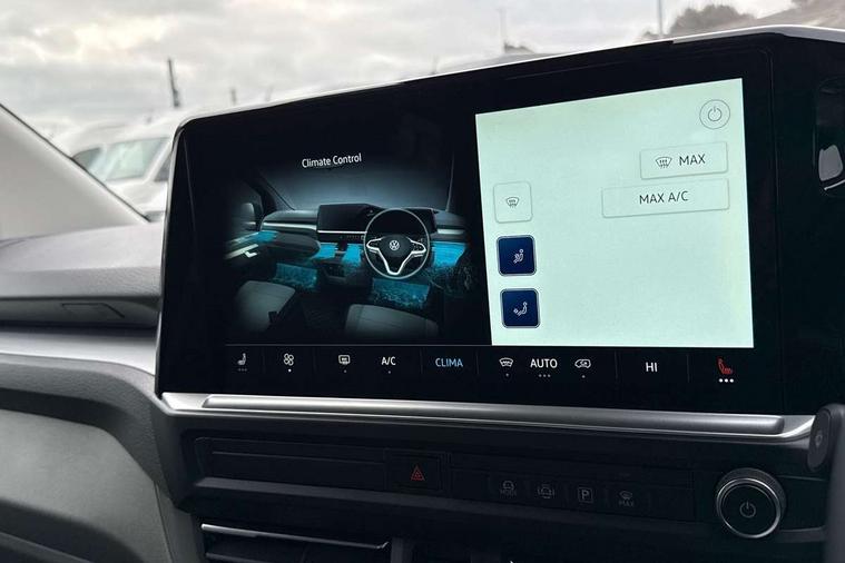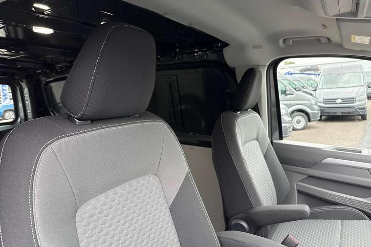 12" digital drivers display, 13" touchscreen infotainment display with wireless app connect and DAB radio, 5G Modem, Adaptive cruise control, Apple CarPlay and Android Auto, Dynamic road sign display, eCall emergency system, Electromechanical speed sensitive power steering, height and longitudinally adjustable steering column, Lane and blind spot assist with exit warning system, Preparation of VW connect and connect plus, Traffic jam assist, Wireless mobile phone charging, Wrong way driver warning, Body colour bumpers, Body coloured door handles, Body coloured door mirrors, Body coloured radiator grille, Electrically heated, adjustable and folding door mirrors, Heat reflecting side window glass, Mud flaps front and rear, Rear Transporter nameplate in black grained decorative trim, Vehicle opening configuration 1x 1st row of seats, 2x all doors, 12V outlet in centre console and 12V outlet on rear right D-pillar, 2x 15-W USB data/charging ports in dashboard and 1x USB-C, 1x USB-A center bottom, 2x LED lights in load compartment, 3x additional super bright LED lights in load compartment, 4 way height and tilt adjustable head restraints, 5 additional USB-C charging ports, Black plastic scuff plate for sliding door in cargo without illumination, Cabin interior lighting, Gear selector lever on steering wheel, Glasses compartment in driver side roof, Grab handle on A-pillar passenger side, Illuminated lockable glovebox, Lashing rings for reinforced floor covering, Narrow centre console with cup holder and compartment for mobile phone, Overhead storage compartment, Rubber floor covering in cab, Striped fabric upholstery, Without passenger seats in load compartment, Driver and front passenger airbag with front passenger airbag deactivation, Dual tone horn, Front and curtain airbags for driver and front passenger, Seat belt pretensioner for driver seat, Anti theft alarm system with interior monitoring in cab, backup horn and towing protection, Electronic immobiliser, Lockable wheel bolts, Preparation for alcohol ignition interlock, 5+ Promise, Alternator - 230A, Electromechanical brake booster, Electronic stability control, ABS, ASR with deactivation button, hill start assist and brake assist system,