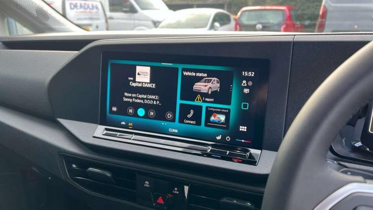 Bluetooth - Mobile phone interface, Car2X technology, Driver alert system, eCall emergency system, Intelligent Speed Assist, Lane assist, Seatbelt warning indicator, Service indicator, Start-stop system with regenerative braking, 2 USB interfaces type C in dashboard, DAB Radio, We Connect Basic Preparation, Automatic hazard light activation under emergency braking, Electric front windows, Heat insulating windscreen, Roof rail preparation, Windscreen wiper with variable intermittent delay and wash-wipe system, Dimming breakaway interior rear view mirror, Electronically controlled heating system, ergoComfort seats for driver, Interior light in headliner incorporting LED technology, Lockable glove compartment door with light, Manual heating and ventilation system, Manual height adjustment for front seats and seat cushion inclination and depth adjustment on drivers seat, Multi function leather steering wheel, Power-adjustable lumbar support for drivers seat, Reach and rake adjustable steering column, Six lashing points for securing loads, Steering wheel paddle shift, Storage compartments under driver and front passenger seats, Sun visors with mirror, airbag label on front passenger sun visor, 3-point seat belts in front, with pretensioner and height adjustment, Driver and front passenger airbag with front passenger airbag deactivation, Tyre pressure monitoring system, Anti-theft alarm system, interior monitoring, backup horn, and towing protection, Electronic engine immobiliser, Remote central locking with deadlocks, interior locking, Anti locking braking system (ABS), Automatic post collision braking system, Brake assist, Diesel particulate filter, Electric parking brake with auto hold function, Electronic brake force distribution (EBD), Electronic differential lock (EDL), Electronic stabilisation programme (ESP), Engine drag torque control (MSR), Hill hold assist, Traction control system (TCS), Decorative beige birch vein inserts, Full size wheel trims,