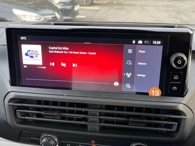 10" digital instrumental cluster, Central fascia display with digital clock, outside air temperature and audio information, Connectivity via BTA with RCE, Cruise control and speed limiter, Driver Attention Alert, level - 3, e-Call and b-Call, Electronic power steering (EPS), Energy absorbing steering column, Forward collision alert, Intelligent Speed Assist, Lane keeping assist, Live navigation plus, Mobile phone portal - Bluetooth, Vehicle microphone, Phone book access, Smartphone interface with Apple carplay/Android Auto, Multi-function trip computer, Multimedia pro nav system with AM/FM/DAB radio, 10" HD touchscreen with wireless mirror screen, 4G connectivity, Voice control and USB connection, Navigation IVI HIGH: HD, Rear parking distance sensor, TPMS (Tyre pressure monitoring system), Vauxhall connect, Audio controls mounted on steering wheel, Flexible multi-functional short antenna (200mm), Two speakers and two tweeters, Automatic headlamps on/off, Body colour door handles, Body colour side protection mouldings, Body colour side sliding door rail cover, Body coloured front bumper, Body coloured rear corner bumper with black centre section, Eco LED headlamps with integrated daytime running lights, Electrically adjustable + heated door mirrors, Familial vizor, Front electric windows with one touch facility, High beam assist, Laminated acoustic windscreen, Lockable fuel filler cap, Offside and nearside sliding side access doors, Painted decor strips, Painted exterior rear view mirror cover, Rain sensitive windscreen wipers, Twin solid rear doors, 12V socket in lower glove box (1 only in cabin), Air recirculation facility, Chilled glovebox facility, Curitiba cloth upholstery, Driver's seat armrest, Dual front passenger bench seat with under seat storage tray, Ergonomic 6-way adjustable driver's seat with reach, rake, height and lumbar adjustment, Fixed floor mounted load restraint lashing eyes x8, Fold flat centre seat backrest, Fold-up outside passenger seat, Interior roof trim, Manual air conditioning, Overhead console with 1 ceiling lamp (dome type and 3 lamps), Reach and rake adjustable steering wheel, TPO plastic flooring, USB socket in cabin (dashboard), City pack with dynamic surround view - Vivaro, Automatic fuel cut-off and door unlocking in event of accident, Driver and front passenger airbags, Height adjustable lap and diagonal inertia reel front seatbelts, Passenger airbag deactivation manually, Dashboard mounted central locking push button and auto locking above 7mph, Engine deadlock immobiliser, Remote control central deadlocking, Remote control ultrasonic security alarm system, Selective door locking, Two keys with integral remote, 22.5 litres AdBlue tank, 70 litre fuel tank, ABS, Advanced emergency braking system (AEBS), EBA, Electronic brake force distribution (EBFD), ESC, ESP, Floor mounted handbrake lever, Hill start assist, Manual parking brake, Traction control, Mistral black dashboard trim with liquid paladium decor strip in mid-section, Michelin Agilis tyres - 215/60 R17C,