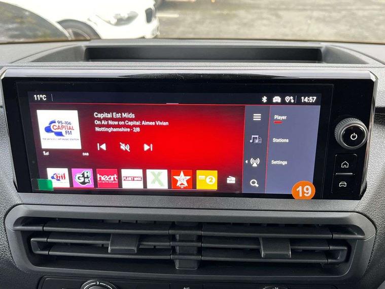 10" digital instrumental cluster, Central fascia display with digital clock, outside air temperature and audio information, Connectivity via BTA with RCE, Cruise control and speed limiter, Driver Attention Alert, level - 3, e-Call and b-Call, Electronic power steering (EPS), Energy absorbing steering column, Forward collision alert, Intelligent Speed Assist, Lane keeping assist, Live navigation plus, Mobile phone portal - Bluetooth, Vehicle microphone, Phone book access, Smartphone interface with Apple carplay/Android Auto, Multi-function trip computer, Multimedia pro nav system with AM/FM/DAB radio, 10" HD touchscreen with wireless mirror screen, 4G connectivity, Voice control and USB connection, Navigation IVI HIGH: HD, Rear parking distance sensor, TPMS (Tyre pressure monitoring system), Vauxhall connect, Audio controls mounted on steering wheel, Flexible multi-functional short antenna (200mm), Two speakers and two tweeters, Automatic headlamps on/off, Body colour door handles, Body colour side protection mouldings, Body colour side sliding door rail cover, Body coloured front bumper, Body coloured rear corner bumper with black centre section, Eco LED headlamps with integrated daytime running lights, Electrically adjustable + heated door mirrors, Familial vizor, Front electric windows with one touch facility, High beam assist, Laminated acoustic windscreen, Lockable fuel filler cap, Offside and nearside sliding side access doors, Painted decor strips, Painted exterior rear view mirror cover, Rain sensitive windscreen wipers, Twin solid rear doors, 12V socket in lower glove box (1 only in cabin), Air recirculation facility, Chilled glovebox facility, Curitiba cloth upholstery, Driver's seat armrest, Dual front passenger bench seat with under seat storage tray, Ergonomic 6-way adjustable driver's seat with reach, rake, height and lumbar adjustment, Fixed floor mounted load restraint lashing eyes x8, Fold flat centre seat backrest, Fold-up outside passenger seat, Interior roof trim, Manual air conditioning, Overhead console with 1 ceiling lamp (dome type and 3 lamps), Reach and rake adjustable steering wheel, TPO plastic flooring, USB socket in cabin (dashboard), City pack with dynamic surround view - Vivaro, Automatic fuel cut-off and door unlocking in event of accident, Driver and front passenger airbags, Height adjustable lap and diagonal inertia reel front seatbelts, Passenger airbag deactivation manually, Dashboard mounted central locking push button and auto locking above 7mph, Engine deadlock immobiliser, Remote control central deadlocking, Remote control ultrasonic security alarm system, Selective door locking, Two keys with integral remote, 22.5 litres AdBlue tank, 70 litre fuel tank, ABS, Advanced emergency braking system (AEBS), EBA, Electronic brake force distribution (EBFD), ESC, ESP, Floor mounted handbrake lever, Hill start assist, Manual parking brake, Traction control, Mistral black dashboard trim with liquid paladium decor strip in mid-section, Michelin Agilis tyres - 215/60 R17C,
