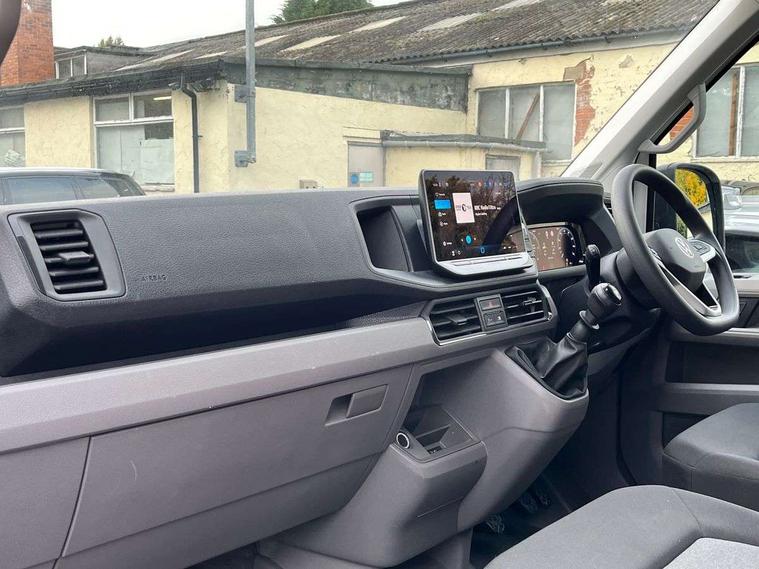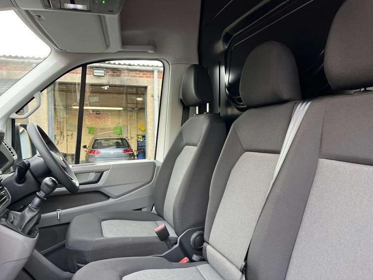 Advanced driver attention and drowsiness monitor, Blind spot monitor, Bluetooth, Digital clock, Digital cockpit with active Info display, Dynamic road sign display, E-call + We connect basic preparation, Forward collision warning with warning and braking reaction to vehicles, pedestrians and cyclists, Front assist including city emergency braking, Instrument cluster, Lane keeping assist, Lights on warning buzzer, Locking fuel cap, Rev counter, Roof console for interior lighting control, Service indicator, Speedometer, USB socket at top of windscreen, Wireless charging, 2 USB C ports in dashboard, DAB Radio, Auto low beam mode, Leaving home function and manual coming home function, Black unpainted plastic front bumper, Cab doors, Convex and wide angle mirror, Driver seatbelt warning light, Electric windows, Heat insulating glass, Indicators in front door mirrors, One towing eye in front, Rear badges, Special identification plate, Touch panel control for exterior lights, Unpainted radiator grille, Windscreen wiper auto control with light and rain sensor, Air recirculation system, Ashtray, Centre console storage tray, CFCU preparation, Charcoal filter, Document holder on centre console, Drinks holders, Electromechanical Servotronic steering, Electronically controlled heating system, Fully adjustable suspension type driver seat, Height adjustable head restraints, Height and reach adjustable steering wheel, Illuminated glove compartment with lockable lid, Interior light, including 2 reading lights, Interior light, switchable by door, Jack and tool kit, Preparation for interface for external use with terminal block, Storage compartments in doors and in step, right, Storage tray on dashboard, Two 12V outlets in the cab (in the dashboard), Without rear side trim panel passenger load compartment, Non-smokers pack - Crafter, 3 point inertia reel belt on all seats, Automatic hazard light with emergency braking, Crosswind assist, Driver and front passenger airbag with front passenger airbag deactivation, Height adjustable seatbelts for outer cab seats, 1 rigid key, Central locking system with Keyless Go without SAFELOCK entry - Keyless entry and start, Engine immobiliser, ABS, Automatic post collision braking system, EBA, EBD, EDL, Electronic parking brake - hill hold control, ESP, Front disc brakes, HBA, Hill start assist, Start and stop system with regenerative braking, TCS, Hub cap covers,
