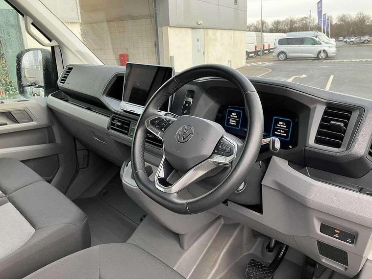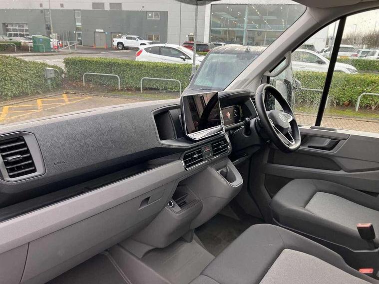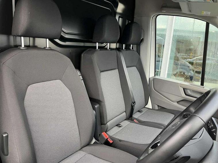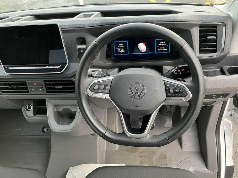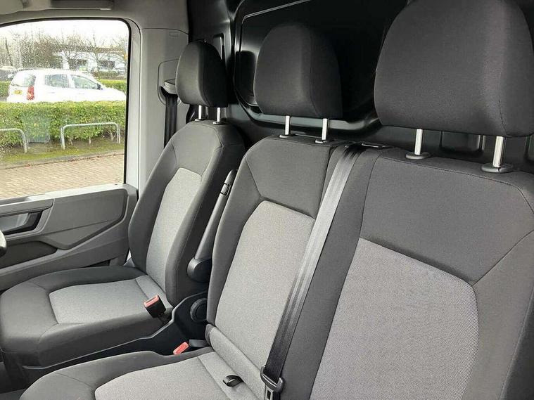 Bluetooth, Digital clock, Driver alert system, E-call + We connect basic preparation, Instrument cluster, Lights on warning buzzer, Locking fuel cap, Multi-function Display Plus, Rev counter, Service indicator, Speedometer, Voice control system, Composition media with 6.5" with we connect plus prep, 4 speaker, multifun display plus, USB, mob interface, app con, "We connect function", DAB Radio, Auto low beam mode, Leaving home function and manual coming home function, Cab doors, Convex and wide angle mirror, Driver seatbelt warning light, Electric windows, Electrically heated and adjustable door mirrors, Half painted front bumper, Heat insulating glass, Indicators in front door mirrors, One towing eye in front, Rear wing doors with 270 degree hinges, Special identification plate, Unpainted radiator grille, Air recirculation system, Ashtray, Centre console storage tray, CFCU preparation, Charcoal filter, Climatic air conditioning, Document holder on centre console, Drinks holders, Electromechanical Servotronic steering, Electronically controlled heating system, Fully adjustable suspension type driver seat, Grab handles on rear entry pillars, Height adjustable head restraints, Height and reach adjustable steering wheel, Illuminated glove compartment with lockable lid, Interior light, including 2 reading lights, Interior light, switchable by door, Jack and tool kit, Preparation for interface for external use with terminal block, Storage compartments in doors and in step, right, Storage tray on dashboard, Two 12V outlets in the cab (in the dashboard), Without rear side trim panel passenger load compartment, Non-smokers pack - Crafter, 3 point inertia reel belt on all seats, Automatic hazard light with emergency braking, Crosswind assist, Driver and front passenger airbag with front passenger airbag deactivation, Height adjustable seatbelts for outer cab seats, 1 rigid key, Anti-theft alarm with interior monitor, back up horn and tow away protect, overhead storage with two 1-DIN, reading light, SAFELOCK with 2 remote keys, Engine immobiliser, ABS, Automatic post collision braking system, EBA, EBD, EDL, ESP, Front disc brakes, HBA, Hill start assist, Parking brake - hill hold control, Start and stop system with regenerative braking, TCS, Hub cap covers,