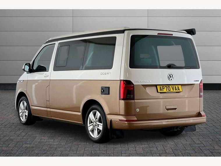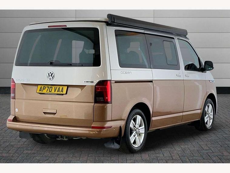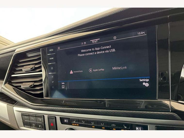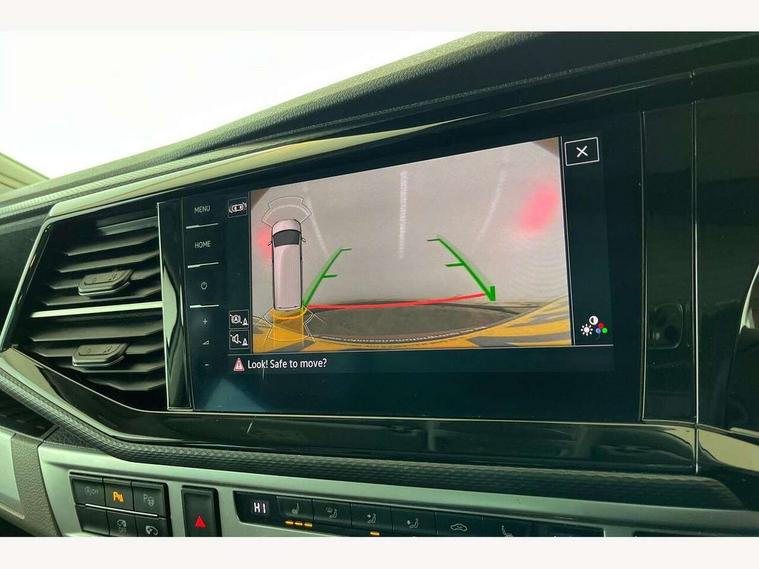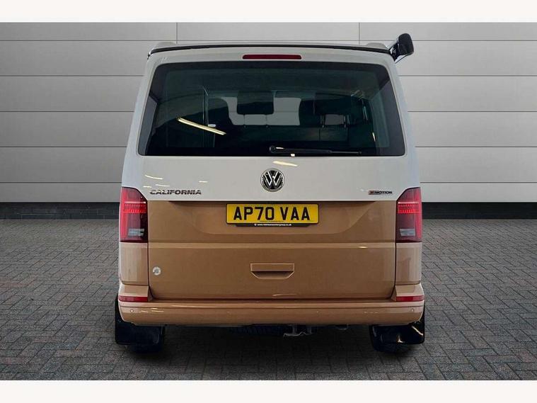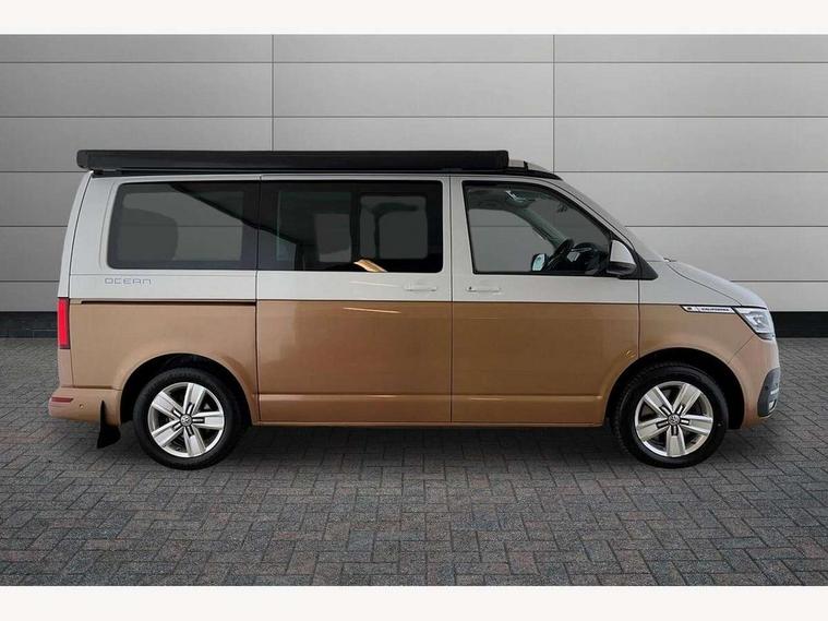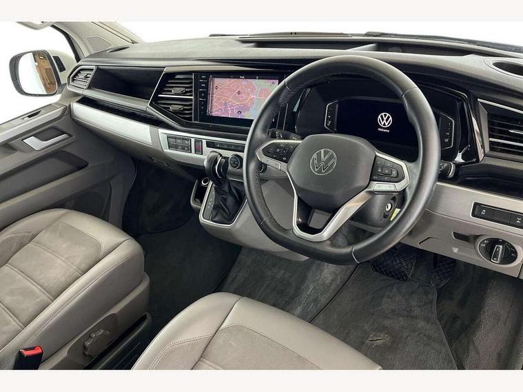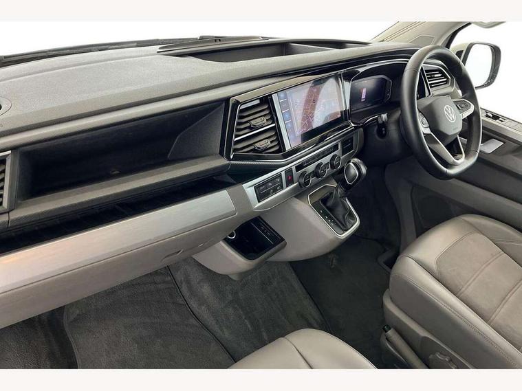 Cross wind assist, Digital cockpit and driver alert system, eCall emergency system, Mobile phone interface, Service interval indicator, Speed limiter, Start/stop system with regenerative braking, Tailgate latch without unlocking function from inside, Tailgate with window aperture and with power latching, Voice control system, Wired and wireless app connect, 17 inch chassis with 17 inch disc brakes in front and 16 inch disc brake in rear, 2 (type C) USB interfaces in dashboard, 8 speakers (4 tweeters + 4 woofers), Digital radio reception (DAB+), Additional dust seals on the outside, Auto dimming breakway interior rearview mirror, Automatic headlight range control, Body colour bumpers, California nameplate on the fender and on the rear, Front fog lights with cornering light, Heat insulating cab side windows, passenger compartment side windows tinted and with double glazing, Heated washer nozzles in front and washer fluid level indicator, LED headlamps with LED separate daytime running light, Left convex exterior mirror, Manual coming and leaving home function, Mounting rails on the roof (preparation for movable roof rack), Power adjustable, heated, power folding exterior mirrors, folding possible via vehicle key, Privacy glass with heat insulation, Radiator grille painted in black with 5 chrome trims, additional chrome trim at lower radiator grille, Rear window with insulating glass, rear window wiper and washer system, Right convex exterior mirror, Sliding window in front and fixed window in rear in load/passenger compartment at left, Windshield wiper intermittent control with rain sensor, Without left sliding door in load/passenger compartment, 1 waste bin in door storage compartment of the cab, 12V outlets in dashboard X 2, 2 velour floor mats, 2-seater bench/bed, movable along rail system and folds down into a two person bed, 230V inlet with charging feature for vehicle batteries and 230V outlet in the interior, 3 spoke leather wrapped multifunction steering wheel, Allergen filter, Armrest for both cab seats, Camping table for inside/outside in sliding door and 2 folding chairs in tailgate, Child seat anchors ISOFIX and top tether for Multivan/California in 2nd to 4th row of seats, Climatronic 3 zone air conditioning with 2nd evaporator, auxiliary heater, air conditioned headliner and additional passenger control, Dimmable illuminated instruments, Electromechanical speed sensitive power steering, height and longitudinally adjustable steering column, Front head restraints, Glove compartment with illumination, Grab handles on A pillar for access, on driver and front passenger side, Heated driver and front passenger seats, Illuminated steps in passenger/load compartment, Illuminated sun visors with mirror and airbag label on front passenger sun visor, Interior light concept for camper with comfort in passenger compartment, Interior loading edge protection in plastic, Jack and tool kit, Manually adjustable lumbar supports for left and right single seat in the 1st row of seats, Operating voltage 12V including 230V outlet on driver seat, Plastic floor covering in passenger/load compartment, Programmable parking heater with radio remote control and auxiliary heater, Rear head restraints, Refrigerant R1234yf, Roof bed (2000 x 1200 mm) with spring plates and mattress, Soft folding grab handles on roof frame, Special interior noise suppression measures, Special sound deadening measures in cab and passenger compartment, Step illumination with California lettering, Swivel seat on the left, with lumbar support in 1st row of seats, Swivel seat on the right, with lumbar support in 1st row of seats, Waeco compressor fridge, Without height adjustment for driver and single passenger seats, Smokers pack - California, Airbags - Drivers and front passengers side and curtain airbags, Driver/Front Passenger airbags, Electronic stability control, ABS, ASR, EDL, brake assist system, Front assist with Autonomous emergency braking for Adaptive cruise control (ACC), Height adjustable 3 point seat belts on outer seats in cab with electric pretensioners, Hill start assist, Passenger airbag deactivation system, Power operated child safety locks, Single tone horn, Warning buzzer and light for driver seat belt not fastened, Anti theft alarm system with interior monitoring in cab, backup horn and towing protection, Central locking system with radio remote control, system controls inside and safelock, Lockable wheel bolts, Comfort dashboard lower part in palladium with chrome elements and bezels painted in black,