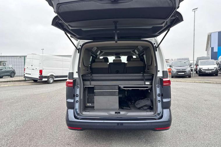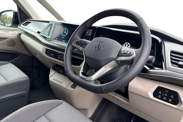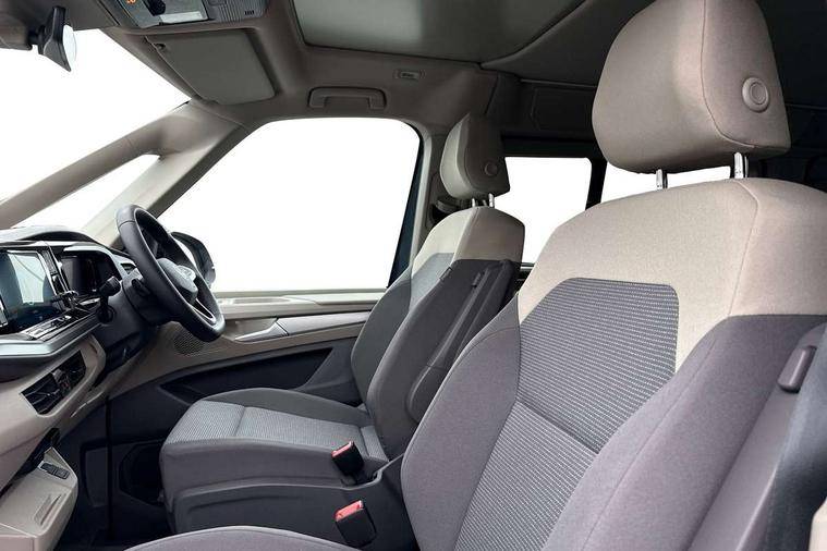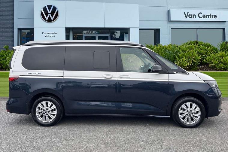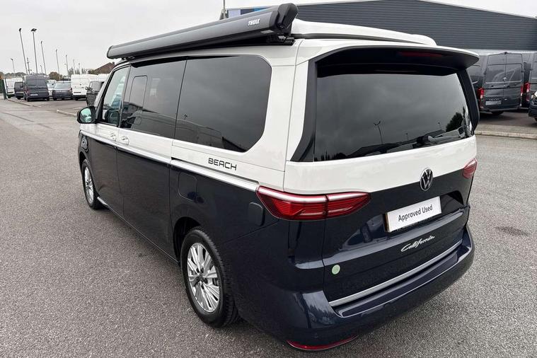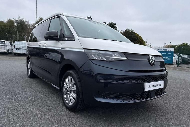 Adaptive cruise control ACC stop and go, Advanced driver attention and drowsiness monitor, California on tour app, Car2X high variant, Digital cockpit pro, Dynamic road sign display, eCall emergency system, Front cross traffic assist, Function control unit, IDA voice assistant and voice enhancer, Lane change assistant, Lane keeping system Lane Assist, Mobile phone interface, Motorhome Registration, Multifunction camera, PAS, Preparation for online services, Preparation for We connect and We connect plus, Servotronic speed sensitive power steering, Speed limiter and predicative speed limiter, Turn assist with evasive assistance, Volkswagen wired and wireless app connect, Auxiliary battery with a low-voltage converter, Battery 380 A (68 Ah), Battery without capacity specification, Standard battery/generator, 10.4 inch infotainment system with scalable module options, 2 USB-C ports at the front, 4 USB-C charging sockets in the passenger compartment, 8 Speakers, Digital radio reception (DAB), 3rd brake light, Canvas sides -Basalt grey includes panorama window, Four speed control for windscreen wipers, Heat and sound insulating laminated safety glass windshield, High gloss black door mirrors, Interior noise reduction, LED Headlights, Manually operated pop-up roof Bellows - Basalt Grey, Molding between headlamps painted to glossy black, Nameplate set California, Poor weather light including cornering light, Radiator grille, Rear boot, Red LED tail lights, Sliding window in front and fixed window in rear in load/passenger compartment on driver side, Windscreen wiper intermittent control, 230V external inlet with charging feature for vehicle batteries, 230V inverter with socket on driver seat, 3 single seats with integrated seatbelt and sleeping mat, Additional interior noise attenuation, Armrest on front swivel seats in both sides with electric lumbar support, Auxiliary pre-heater, Bright dots bi-color cloth upholstery, Darkening roller blinds and curtain, Drawers under the outer seats in the cab and passenger compartment & 2 waste bins, Front and rear headrests, Lockable glove compartment without lighting, Mini-kitchen at rear with slide-out single-flame gas cooker including electrical equipment box with Camper battery 230-V outlet, Multifunction leather steering wheel with paddle shifters, Plastic floor covering in passenger/load compartment, Single front passenger seat, Storage compartment left and right 1st row of seats, Sun visors with mirror, illuminated, ticket holder on the driver side, with airbag label on sun visor and B-pillar, Surround lighting in door area, Swivel seat on left with height adjustable including drawer, Swivel seat on right with height adjustable including drawer, Tailgate latching without unlatching function from inside, Without loading edge protection, Without luggage compartment cover, Lighting package - California, 3x3 point automatic seatbelts at the rear outside with ECE label, with/without belt tensioner, Autonomous emergency braking, Child locks, Driver and front passenger airbags with front passenger airbag deactivation button, First aid kit with warning triangle and safety vest, Front Assist with pedestrian and cyclist detection, Front disc brakes, Height adjustable three point automatic seatbelts at front with belt and end fitting tensioners, Occupants detection only display, Side and curtain airbags for driver and front passenger, curtain airbags for outer seats in rear, centre airbag in front, Swerve support and oncoming vehicle braking when turning, Tyre pressure loss indicator, Warning signal and warning lamp for front and rear seat belts not fastened, Anti theft alarm system with interior monitoring in cab, backup horn and towing protection, Lockable wheel bolts, Preparation for alcohol interlock, 5+ Promise service plan, Scale light grey decorative inlays, Tool kit, Trims for alloy wheels,