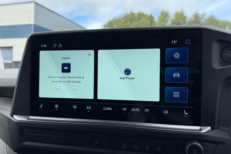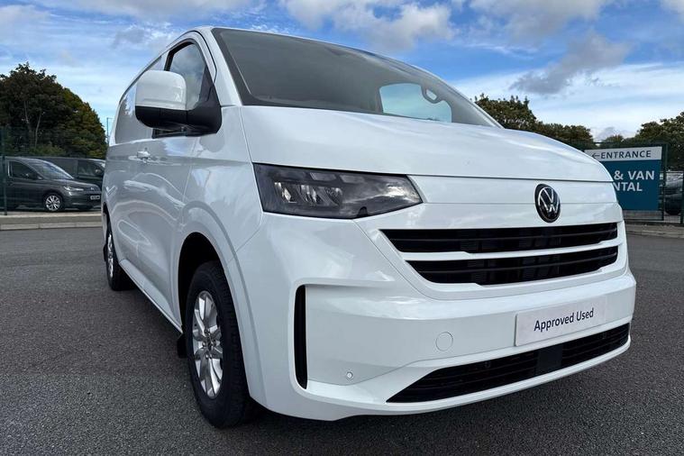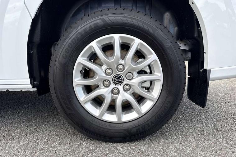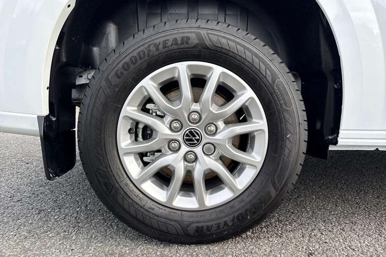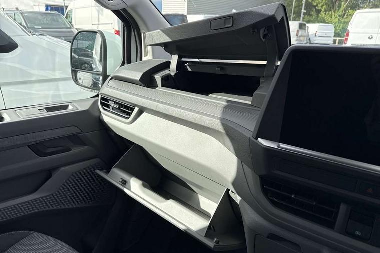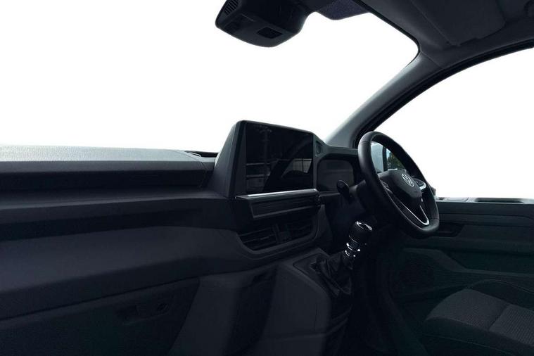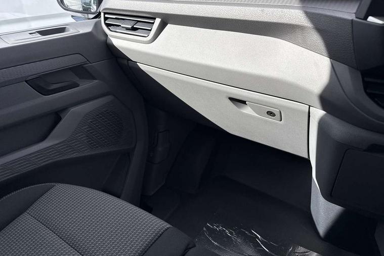 12" digital drivers display, 13" touchscreen infotainment display with wireless app connect and DAB radio, 5G Modem, Adaptive cruise control, Apple CarPlay and Android Auto, Dynamic road sign display, eCall emergency system, Electromechanical speed sensitive power steering, height and longitudinally adjustable steering column, Lane and blind spot assist with exit warning system, Preparation of VW connect and connect plus, Wireless mobile phone charging, Wrong way driver warning, Body colour bumpers, Body coloured door handles, Body coloured door mirrors, Body coloured radiator grille, Electrically heated, adjustable and folding door mirrors, Heat reflecting side window glass, Mud flaps front and rear, Rear Transporter nameplate in black grained decorative trim, Vehicle opening configuration 1x 1st row of seats, 2x all doors, 12V outlet in centre console and 12V outlet on rear right D-pillar, 2x 15-W USB data/charging ports in dashboard and 1x USB-C, 1x USB-A center bottom, 2x LED lights in load compartment, 3x additional super bright LED lights in load compartment, 4 way height and tilt adjustable head restraints, 5 additional USB-C charging ports, Black plastic scuff plate for sliding door in cargo without illumination, Cabin interior lighting, Glasses compartment in driver side roof, Grab handle on A-pillar passenger side, Illuminated lockable glovebox, Lashing rings for reinforced floor covering, Leatherette gear lever, Narrow centre console with cup holder and compartment for mobile phone, Overhead storage compartment, Rubber floor covering in cab, Striped fabric upholstery, Without passenger seats in load compartment, Driver and front passenger airbag with front passenger airbag deactivation, Dual tone horn, Front and curtain airbags for driver and front passenger, Seat belt pretensioner for driver seat, Anti theft alarm system with interior monitoring in cab, backup horn and towing protection, Electronic immobiliser, Lockable wheel bolts, Preparation for alcohol ignition interlock, 5+ Promise, Alternator - 230A, Electromechanical brake booster, Electronic stability control, ABS, ASR with deactivation button, hill start assist and brake assist system,