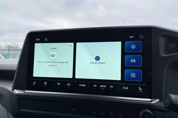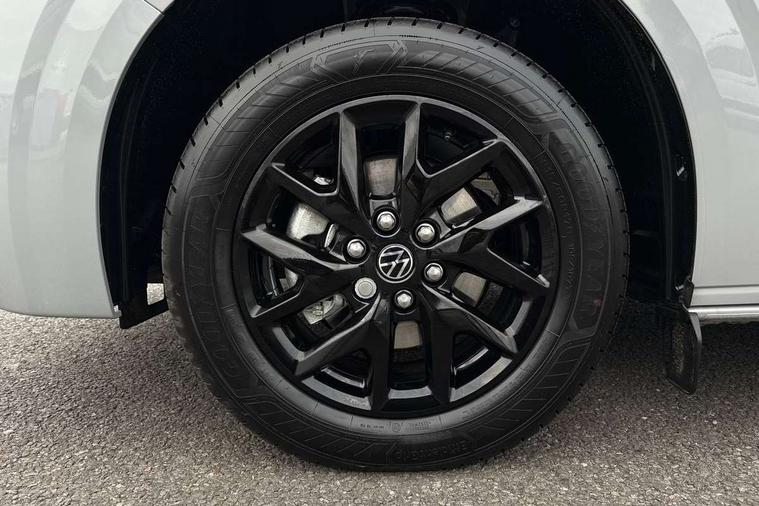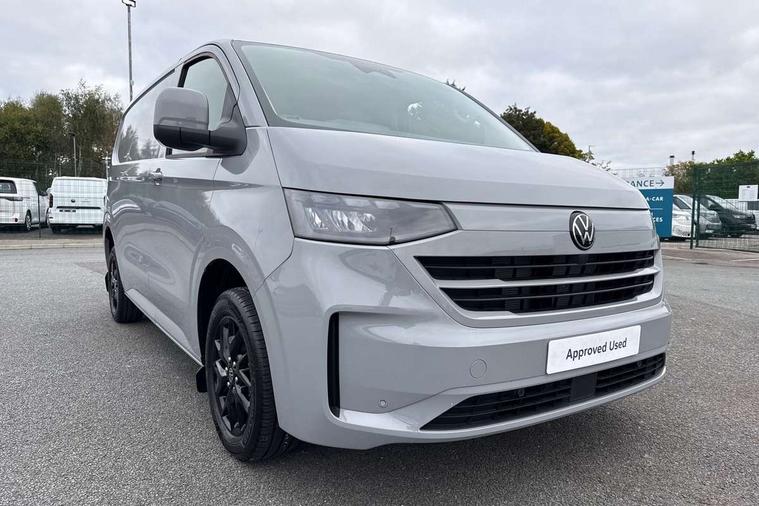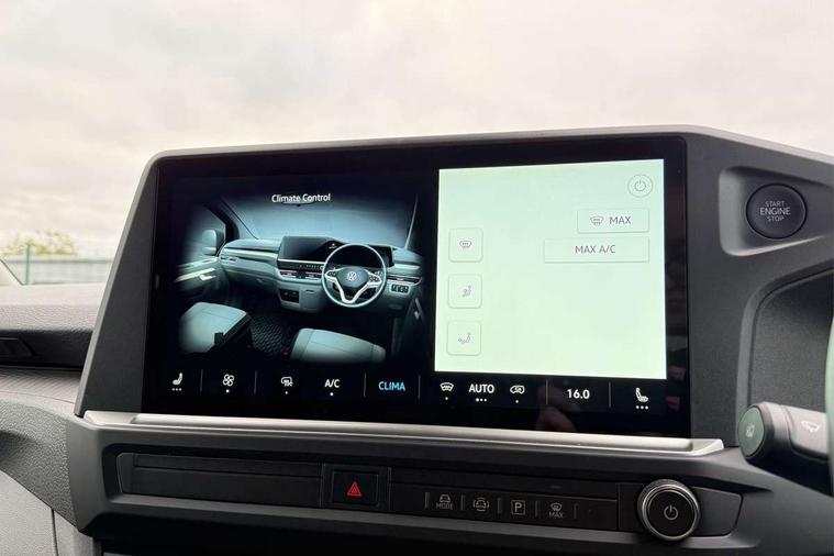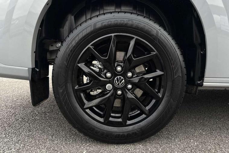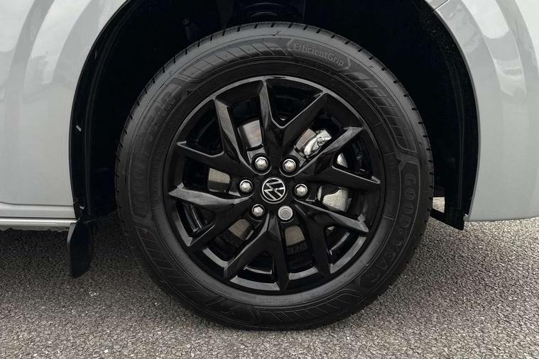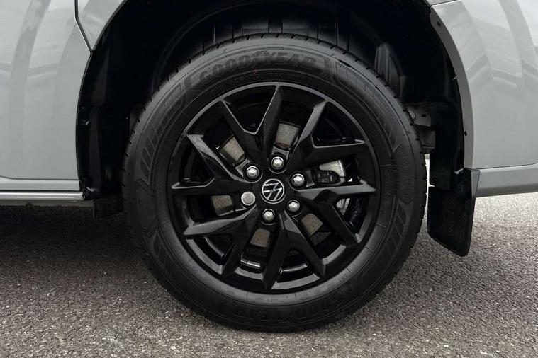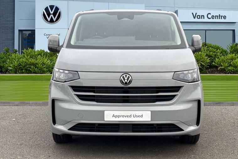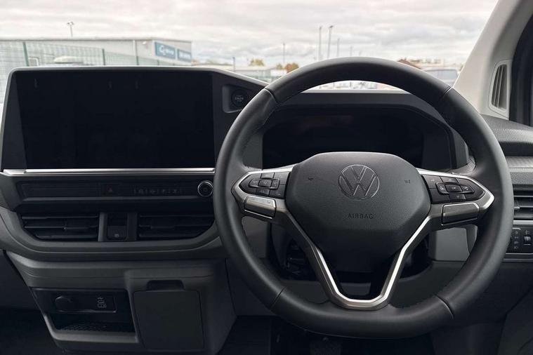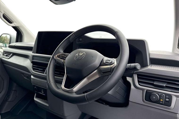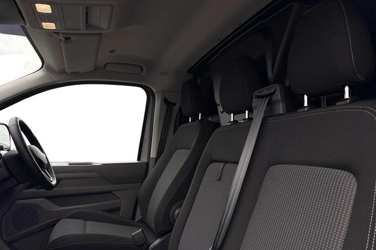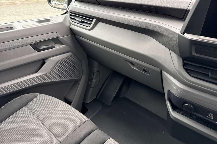 12" digital drivers display, 13" touchscreen infotainment display with wireless app connect and DAB radio, 5G Modem, Adaptive cruise control, Apple CarPlay and Android Auto, Dynamic road sign display, eCall emergency system, Electromechanical speed sensitive power steering, height and longitudinally adjustable steering column, Lane and blind spot assist with exit warning system, Preparation of VW connect and connect plus, Traffic jam assist, Wireless mobile phone charging, Wrong way driver warning, Body colour bumpers, Body coloured door handles, Body coloured door mirrors, Body coloured radiator grille, Electrically heated, adjustable and folding door mirrors, Heat reflecting side window glass, Mud flaps front and rear, Rear Transporter nameplate in black grained decorative trim, Vehicle opening configuration 1x 1st row of seats, 2x all doors, 12V outlet in centre console and 12V outlet on rear right D-pillar, 2x 15-W USB data/charging ports in dashboard and 1x USB-C, 1x USB-A center bottom, 2x LED lights in load compartment, 3x additional super bright LED lights in load compartment, 4 way height and tilt adjustable head restraints, 5 additional USB-C charging ports, Black plastic scuff plate for sliding door in cargo without illumination, Cabin interior lighting, Gear selector lever on steering wheel, Glasses compartment in driver side roof, Grab handle on A-pillar passenger side, Illuminated lockable glovebox, Lashing rings for reinforced floor covering, Narrow centre console with cup holder and compartment for mobile phone, Overhead storage compartment, Rubber floor covering in cab, Striped fabric upholstery, Without passenger seats in load compartment, Driver and front passenger airbag with front passenger airbag deactivation, Dual tone horn, Front and curtain airbags for driver and front passenger, Seat belt pretensioner for driver seat, Anti theft alarm system with interior monitoring in cab, backup horn and towing protection, Electronic immobiliser, Lockable wheel bolts, Preparation for alcohol ignition interlock, 5+ Promise, Alternator - 230A, Electromechanical brake booster, Electronic stability control, ABS, ASR with deactivation button, hill start assist and brake assist system,