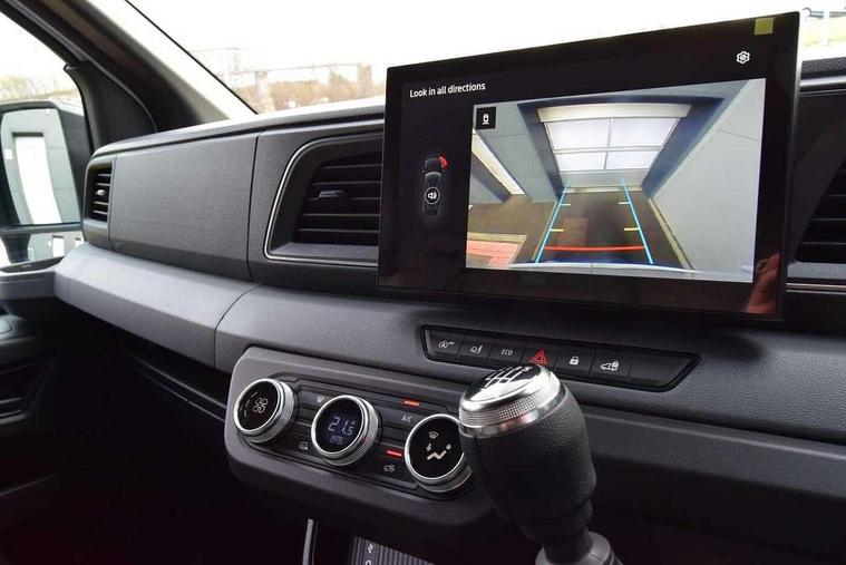 16" steel wheels, Full size spare wheel, Full wheel covers, Alcohol interlock predisposition, Deadlocks, Insurance approved immobiliser, Radio frequency remote central locking, Thatcham alarm system, 12V socket in load area, ABS + EBD, Automatic forward emergency braking system (AEBS), ESP, Hill start assist, Trailer sway assist, 10.1" Touchscreen multimedia display, Apple Carplay/Android Auto, Audio switch on steering wheel, Aux port, Digital radio (DAB), USB socket, Driver's airbag, Passenger airbag, Tyre pressure monitoring system, Roadside assistance - 5 Years / Unlimited Miles, Automatic headlights, Automatic high/low beam, Automatic windscreen wipers, Electric door mirrors, Electric front windows with one touch drivers window, Heated door mirrors, Heated windscreen, LED Daytime running lights, LED front fog lights, LED low beam and halogen high beam Headlights, Left side sliding door, Rear step, Unglazed 270 degree degree rear french doors, 2 in-dash cupholders, 8 x cargo floor load mounting hooks, Cargo load mounting hooks 4 on C pillar and 6 on D pillar, Cloth upholstery, Driver's armrest, Driver's seat with longitudinal, height and backrest inclination adjustments, Drivers seat with lumbar support, Foldable Passenger bench with fixed table, Front automatic air conditioning, Front headrests, Full steel bulkhead, LED cabin lights, LED lighting in load area, Overhead parcel shelves, Passenger underseat storage box, Steering wheel rake adjustment, Steering wheel reach adjustment, 3.5" B&W TFT screen in dials dash, Bluetooth, Distance Warning in TFT cluster, Driver drowsiness and attention warning, eCall emergency system, Flank protection with object tracking, Front parking sensor, Intelligent Speed Assist (cruise control with speed limiter and traffic sign recognition), Lane departure warning system, Lane keeping assist, Low fuel level warning light, PAS, Rear parking sensor, Rear view camera, Service indicator, Trip computer,