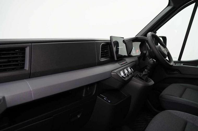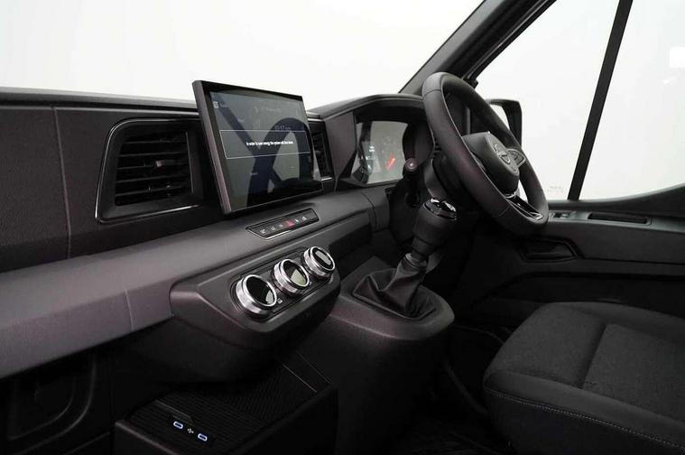 16" steel wheels, Full size spare wheel, Alcohol interlock predisposition, Deadlocks, Insurance approved immobiliser, Radio frequency remote central locking, Thatcham alarm system, ABS + EBD, Automatic forward emergency braking system (AEBS), ESP, Hill start assist, Trailer sway assist, 10.1" Touchscreen multimedia display, Apple Carplay/Android Auto, Audio switch on steering wheel, Aux port, Digital radio (DAB), USB socket, Driver's airbag, Passenger airbag, Tyre pressure monitoring system, Roadside assistance - 5 Years / Unlimited Miles, Automatic headlights, Automatic high/low beam, Automatic windscreen wipers, Electric door mirrors, Electric front windows with one touch drivers window, Heated door mirrors, LED Daytime running lights, LED front fog lights, LED low beam and halogen high beam Headlights, Left side sliding door, Rear step, Unglazed 180 degree rear french doors, 2 in-dash cupholders, 6 x Cargo floor load mounting hooks, Cloth upholstery, Driver's armrest, Driver's seat with longitudinal, height and backrest inclination adjustments, Foldable Passenger bench with fixed table, Front headrests, Front manual air conditioning, Full steel bulkhead, LED cabin lights, LED lighting in load area, Overhead parcel shelves, Passenger underseat storage box, Steering wheel rake adjustment, Steering wheel reach adjustment, 3.5" B&W TFT screen in dials dash, Bluetooth, Distance Warning in TFT cluster, Driver drowsiness and attention warning, eCall emergency system, Intelligent Speed Assist (cruise control with speed limiter and traffic sign recognition), Lane departure warning system, Lane keeping assist, Low fuel level warning light, PAS, Rear parking sensor, Service indicator, Trip computer,