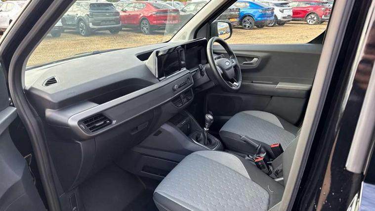 8" touchscreen, Door open warning light, Driver alert system, Easy fuel capless refuelling system, eCall emergency system, Electric power assisted steering (EPAS), Ford pass connect modem, Intelligent Speed Assist, Lane keeping alert, Reverse parking sensor, Tachometer, Traffic sign recognition, Trip computer, Tyre pressure monitor, Wireless charging pad, 4 front speakers, Aux input socket, Steering wheel radio controls, Auto High Beam Assist, Automatic windshield wiper, Body colour upper front bumper, Body coloured door handles, Complete tinted glass, Front grille with chrome spear, Halogen headlamps, Halogen taillamps, High mounted stop lamp, Hinged rear cargo door, Power front windows with power one touch up and down on both sides, Self colour lower front bumper, Self coloured rear bumper, Self coloured rear bumper end caps, Side load door track cover, 12V power socket in front, 2 Front USB ports, 2 way front headrestraints, Barlo pin hex cloth upholstery, Electronic air temperature control (EATC), Floor mounted console, Glovebox with lid, Header courtesy light with 2 map lights, Overhead console, Rubber floor cover in cab area, Silver interior door handles, Sunvisor - Driver side with mirror, Tilt and telescopic adjustable steering wheel, Child proof rear door locks, Curtain airbags - left and right, Driver and passenger front seatbelt pre-tensioner, Driver and passenger seatbelt reminder, Driver and passenger side airbags, Driver's airbag, Front 3 point seatbelts, Passenger airbag, Passenger airbag deactivation switch, 2 remote fobs, Immobiliser, Keyless start, Emergency brake assist, ESC + ABS, Front disc and rear drum brakes, H6 70 AH EFB CCA 700 Alternator, Heavy duty battery, Hill launch assist, Mechanical parking brake, Roll over mitigation, Start/stop system, Traction control, 16" 10 spoke sparkle silver finish alloy wheels including locking wheel nut, Any vendor tyre eco tread,