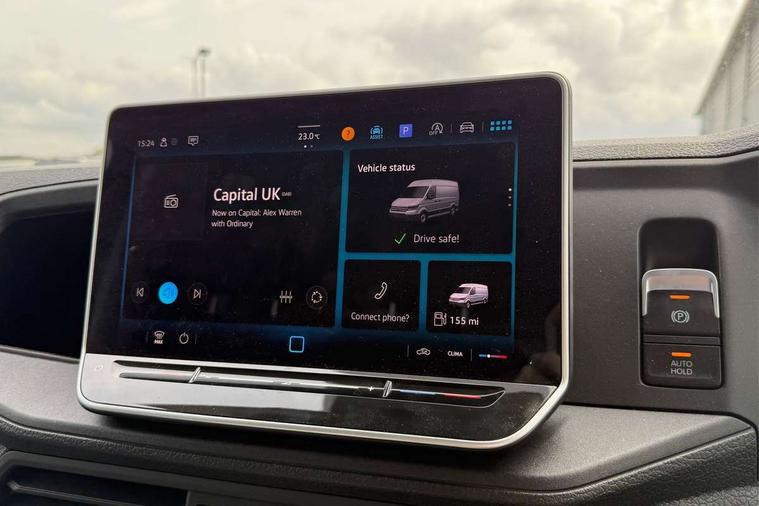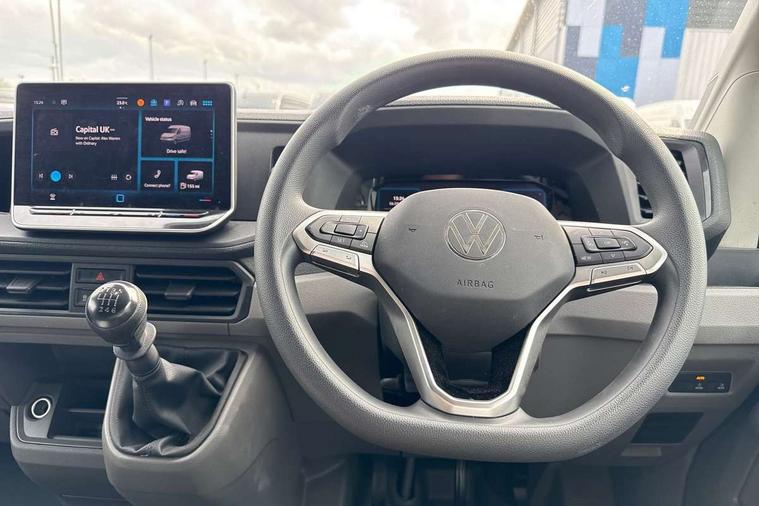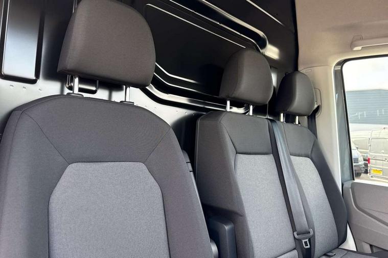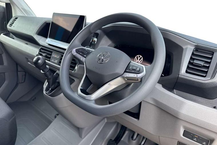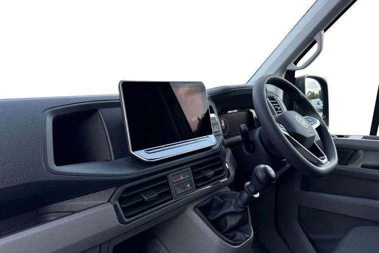 Bluetooth, Digital clock, Driver alert system, E-call + We connect basic preparation, Instrument cluster, Lights on warning buzzer, Locking fuel cap, Multi-function Display Plus, Rev counter, Service indicator, Speedometer, Voice control system, Composition media with 6.5" with we connect plus prep, 4 speaker, multifun display plus, USB, mob interface, app con, "We connect function", DAB Radio, Auto low beam mode, Leaving home function and manual coming home function, Cab doors, Convex and wide angle mirror, Driver seatbelt warning light, Electric windows, Electrically heated and adjustable door mirrors, Half painted front bumper, Heat insulating glass, Indicators in front door mirrors, One towing eye in front, Rear wing doors with 270 degree hinges, Special identification plate, Unpainted radiator grille, Air recirculation system, Ashtray, Centre console storage tray, CFCU preparation, Charcoal filter, Climatic air conditioning, Document holder on centre console, Drinks holders, Electromechanical Servotronic steering, Electronically controlled heating system, Fully adjustable suspension type driver seat, Grab handles on rear entry pillars, Height adjustable head restraints, Height and reach adjustable steering wheel, Illuminated glove compartment with lockable lid, Interior light, including 2 reading lights, Interior light, switchable by door, Jack and tool kit, Preparation for interface for external use with terminal block, Storage compartments in doors and in step, right, Storage tray on dashboard, Two 12V outlets in the cab (in the dashboard), Without rear side trim panel passenger load compartment, Non-smokers pack - Crafter, 3 point inertia reel belt on all seats, Automatic hazard light with emergency braking, Crosswind assist, Driver and front passenger airbag with front passenger airbag deactivation, Height adjustable seatbelts for outer cab seats, 1 rigid key, Anti-theft alarm with interior monitor, back up horn and tow away protect, overhead storage with two 1-DIN, reading light, SAFELOCK with 2 remote keys, Engine immobiliser, ABS, Automatic post collision braking system, EBA, EBD, EDL, ESP, Front disc brakes, HBA, Hill start assist, Parking brake - hill hold control, Start and stop system with regenerative braking, TCS, Hub cap covers,
