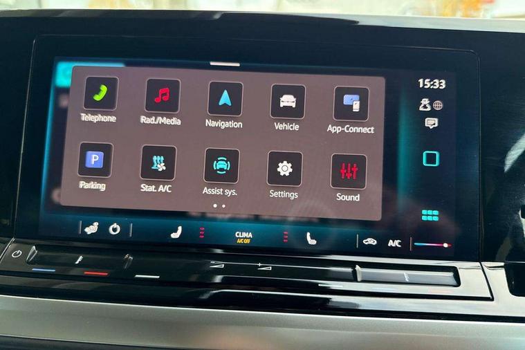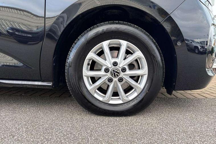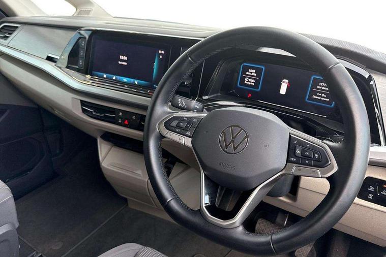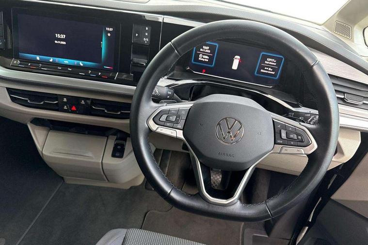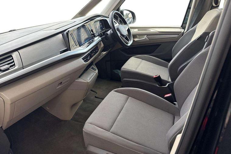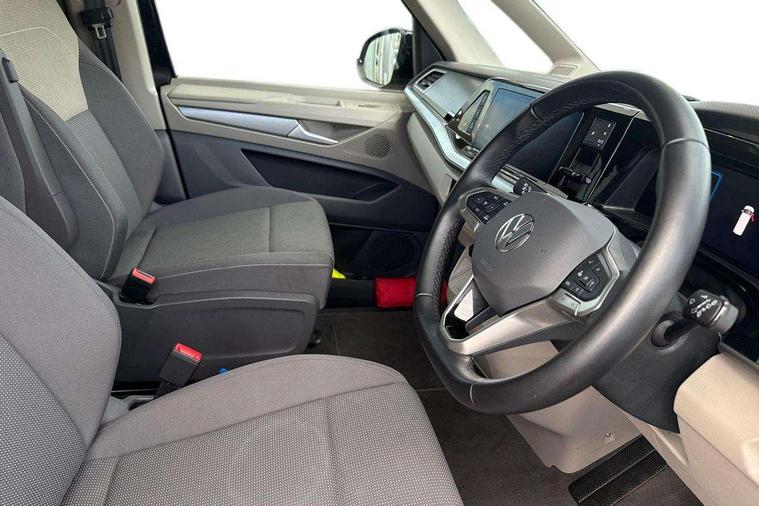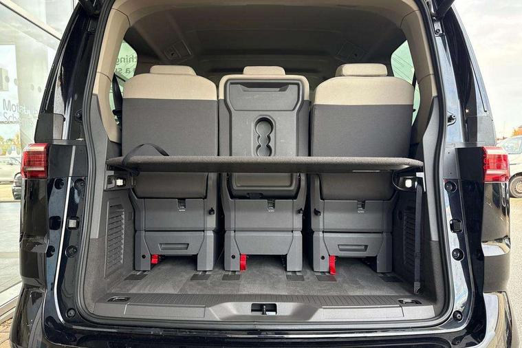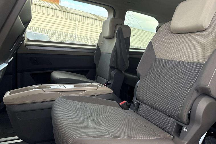 Adaptive cruise control with C2X including front assist and city emergency braking system, App-Connect incl. App-Connect Wireless for Apple CarPlay and Android Auto, Driver alert system, Dynamic road sign display, eCall emergency system, Lane change system with side assist including blind spot monitor, rear traffic alert and exit warning system, Lane keeping system Lane Assist, Mobile phone interface, Park sensors - front and rear park with park assist, PAS, Rear view camera, Tailgate, Travel assist, We connect preparation, Electronic differential lock, 2 USB-C ports in front and 4 USB-C ports in passenger compartment, Digital radio reception (DAB+), Automatic headlight control with welcome home lights, Body coloured exterior door handles, Break away auto dimming rear view interior mirror, Dynamic headlight range control (self adjusting), Electrically adjustable, heated and folding door mirrors, Front fog lights, Glossy black painted radiator grille with 2 chrome trims, Heated rear window with window wiper and washer system, High gloss black exterior mirror housing, Interior noise reduction measures, Laminated safety glass windshield, heat and sound insulating, LED 3rd brake lamp, LED main headlamps with LED separate daytime running light, LED rear combination lamps, Rear wiper, Sliding door on left/right with power latching, Windshield wiper intermittent control with rain sensor, 1 x 12V sockets on the dash panel, 12V socket in passenger compartment, 3 seat bench in 3rd row, 7 single seats removable/movable, Carpet mats in cab, Front and rear head restraints, Grab handles on A pillar for access, on driver and front passenger side, Height adjustable seats, Height and longitudinal adjustment steering wheel with gear shift paddles, Illumination lockable glovebox compartment, ISOFIX (including i-size) and top tether in all seats in 2nd and 3rd rows, LED luggage compartment lighting X 2, Load compartment partition to 20kg with bag hooks and luggage net, Luggage compartment lid power latching with unlatching from inside, Multifunction leather steering wheel with tiptronic, Reinforced carpet floor covering in passenger compartment, Removable armrests for front seats with power adjustable lumbar support and folding table for 2nd row passenger seats, Removable armrests in 2nd row passenger seats, Single front passenger seat, Slidable multifunction table/centre console with 3 cup holders, Storage compartment under the 2nd and 3rd row seat and two waste bins, Sun visors with illuminated vanity mirrors and airbag warning label on front passenger sun visors, Surround lighting in door area, 3x3 point rear seat belts, ABS, Automatic post collision braking system, Autonomous emergency braking front assist with pedestrian and cyclist monitoring, Driver and front passenger airbag with front passenger airbag deactivation, Electric childproof lock, Electronic stability control (ESC) and Electromechanical brake booster, ESP, First aid kit with warning triangle and safety vest, Hill hold assist, Seat belt warning for the drivers and all passengers seats if unfastened, Side and curtain airbags for driver and front passenger, curtain airbags for outer seats in rear, centre airbag in front, Single tone horn, Traction control, Tyre pressure monitoring system, Anti theft alarm system with interior monitoring in cab, backup horn and towing protection, Keyless Start, Start/stop button on centre console, Dark silver brushed decorative inserts,