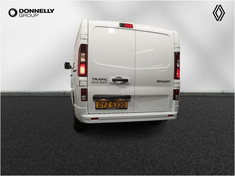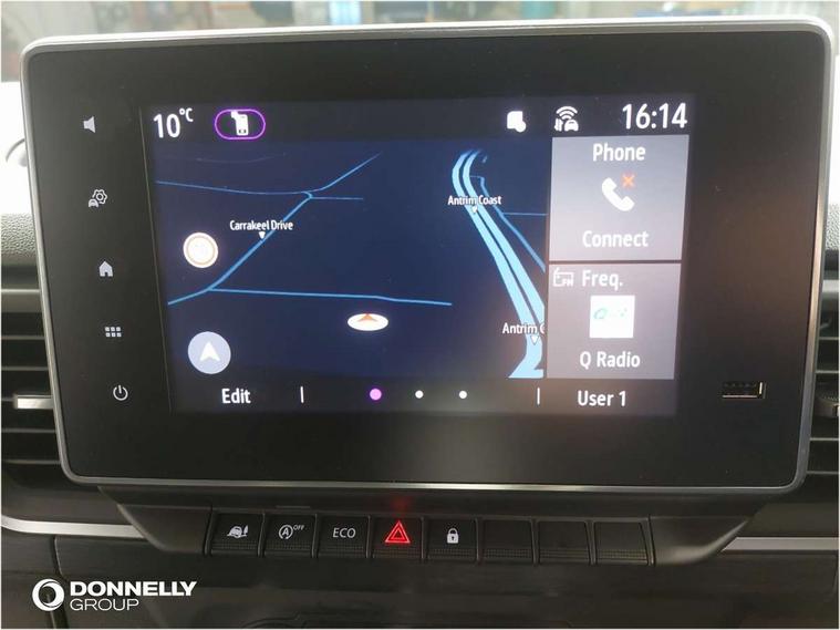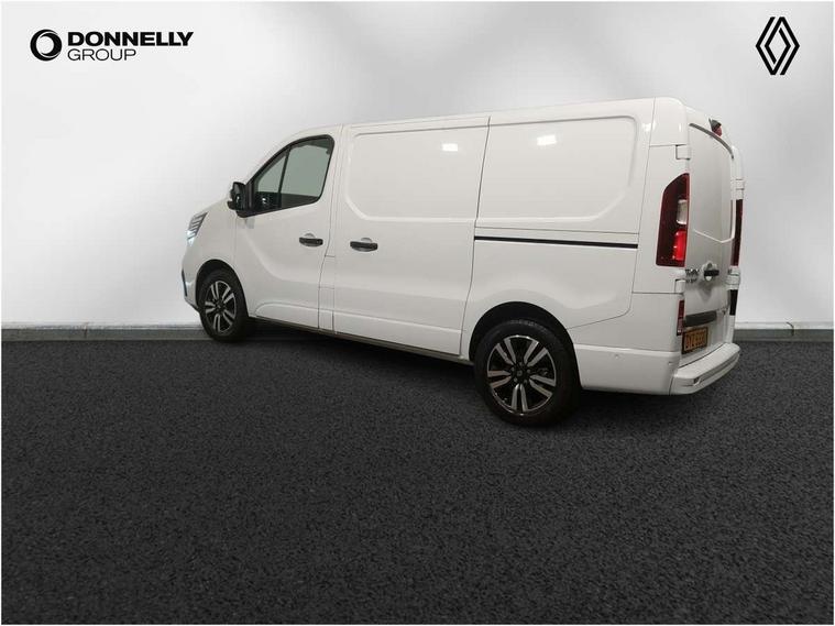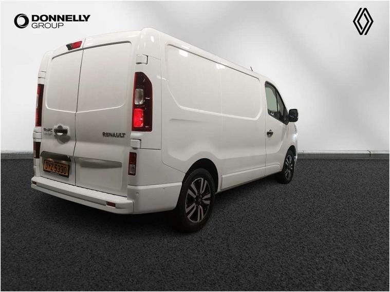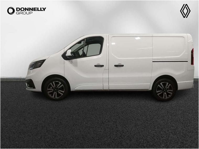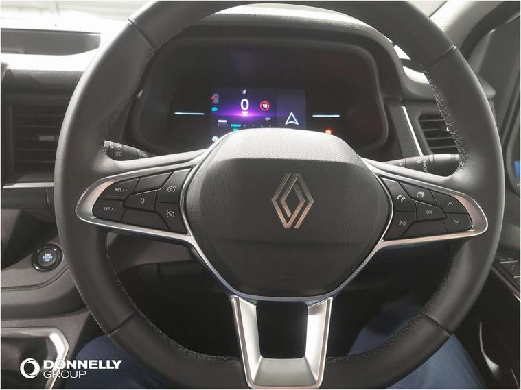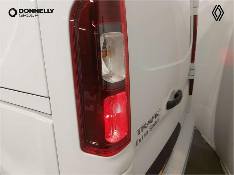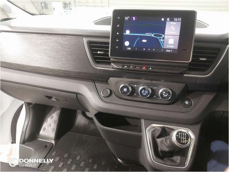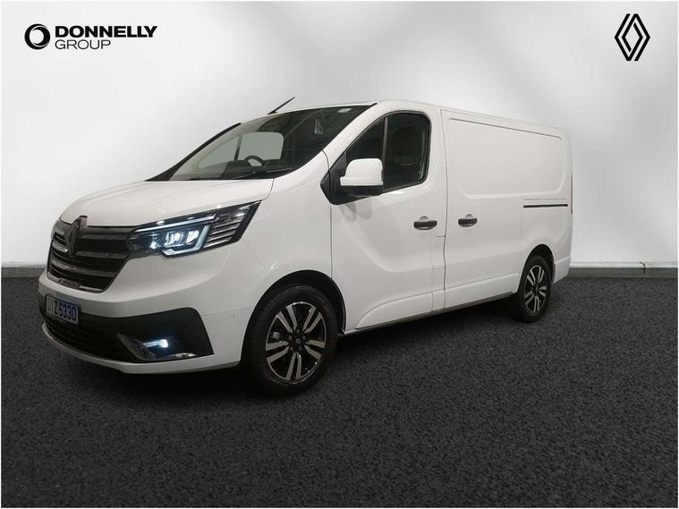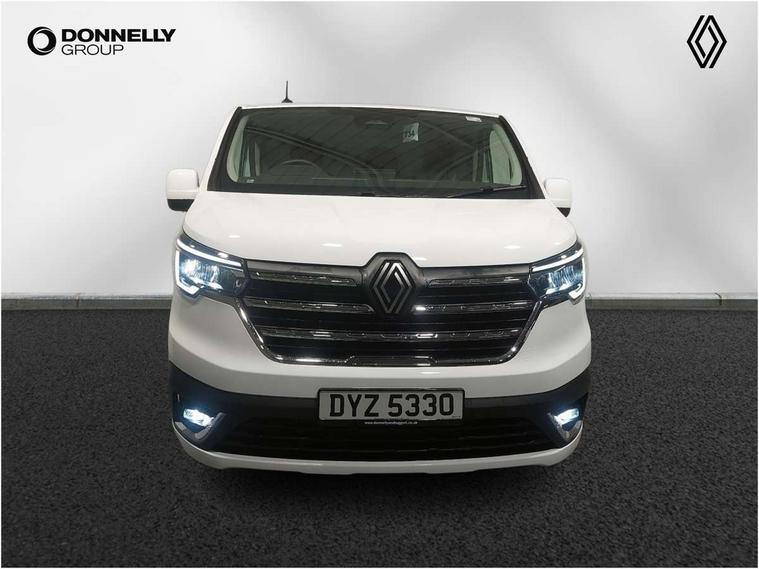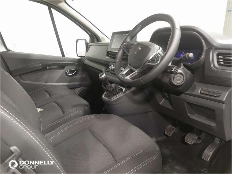 360 degree parking sensors (front, rear and lateral ultra sonic sensors), 7" Colour TFT driver information display, Driver attention alert, Driver drowsiness warning, E-Call - automated emergency call, Easy link navigation with 8" touchscreen DAB radio with bluetooth, USB + aux input, compatible with Apple CarPlay and Android Auto, ECO mode button, Gearshift indicator, Intelligent Speed Assist, Lane departure warning system, PAS, Rear parking camera, Trip computer, Wireless smart phone integration with Android auto & Apple CarPlay, Automatic high beam, Blind spot mirror on passenger sunvisor, Body coloured door mirrors, Body coloured door rail and rear tail light column with chrome grille, Body coloured front bumper, Body coloured side mouldings, Chrome Grille, Electric folding door mirrors, Electric front windows with one touch drivers window, Front fog lights, Full LED headlights with C-shaped DRL, New brand identity, Roof bar fixings, Wide view mirror, 12V power socket in front, 14 load anchorage points, Climate control, Closed glovebox, Height adjustable drivers seat with armrest and lumbar adjustment, Interior LED cabin lighting, Java cloth upholstery, LED load space lighting, Premium dashboard with horizontal grain and chrome styling, Premium faux leather steering wheel, Look pack - Trafic, Parking pack - Trafic, Visibility pack - Trafic, 3 point height adjustable seatbelts with pretensioners and load limiter, Driver and passenger airbags, Driver and passenger seatbelt reminder, Front lateral and curtain airbags and passenger airbag with deactivation, Alarm - Thatcham T1 volumetric alarm, Alcohol interlock pre-device, Deadlocking, Electronic immobiliser, Hands free key card with push button stop/start function, Keyless entry system, Remote central locking, 20L AdBlue tank, 4 disc brakes, 6 speed gearbox, 80 litre fuel tank, ABS with EBD (Electronic Brake force Distribution), Active emergency braking system, ESC (Electronic Stability Control) with Hill Start Assist and Grip Xtend, 17" Avens diamond cut alloy wheels,