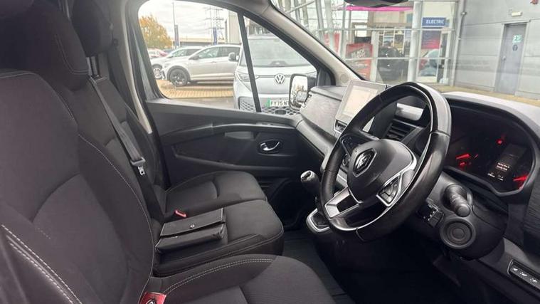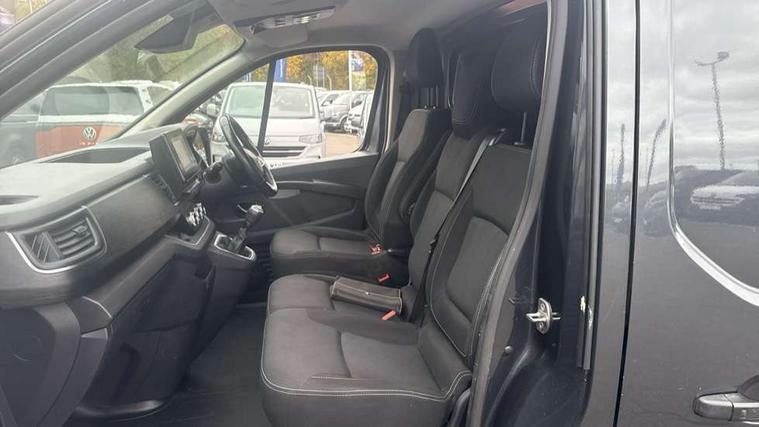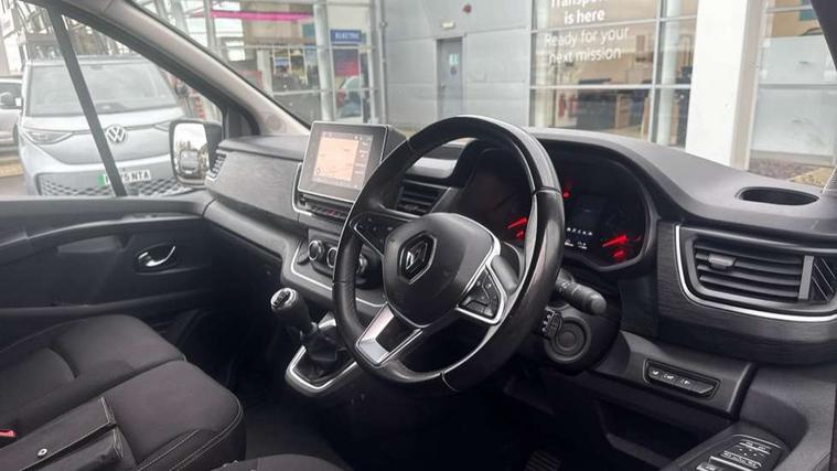 4.2" TFT colour driver information display, Cruise control with speed limiter, Driver attention alert, ECO mode button, Gearshift indicator, Lane departure warning system, PAS, Smart phone integration with Android auto & Apple CarPlay, Traffic sign recognition, Trip computer, Body coloured door mirrors, Body coloured door rail and rear tail light column with chrome grille, Body coloured front bumper, Body coloured side mouldings, Electric folding door mirrors, Electric front windows with one touch drivers window, Full LED headlights with C-shaped DRL, Heated with electric adjustment door mirrors and external temperature sensors, Roof bar fixings, Wide view mirror, 12V power socket in front, 16 load anchorage points, Climate control, Closed glovebox, Height adjustable drivers seat with armrest and lumbar adjustment, Interior LED cabin lighting, Java cloth upholstery, Mobile office, Passenger seat bench with under seat storage, Premium dashboard with horizontal grain and chrome styling, Premium faux leather steering wheel, Reach and rake adjustable steering column, Visibility pack - Trafic, 3 point height adjustable seatbelts with pretensioners and load limiter, Driver and passenger seatbelt reminder, Driver's airbag, Alarm - Thatcham T2 volumetric alarm, Deadlocking, Electronic immobiliser, Hands free key card with push button stop/start function, Keyless entry system, Remote central locking, 12v socket in loadspace, 20L AdBlue tank, 4 disc brakes, 80 litre fuel tank, ABS with EBD (Electronic Brake force Distribution), Active emergency braking system, ESC (Electronic Stability Control) with Hill Start Assist and Grip Xtend, 17" Avens diamond cut alloy wheels,