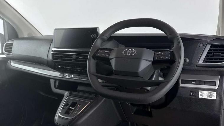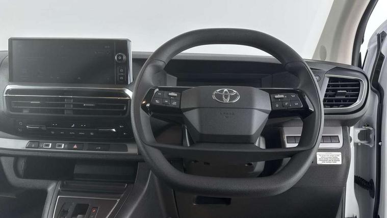 10 inch Touchscreen with digital clusted, Analogue speedometer, Analogue tachometer, Audio switches behind steering wheel, Bluetooth handsfree connectivity, Coloured TFT information display, Cruise control switch behind steering wheel, Cruise control with speed limiter, Default design of tachometer, Driver Monitoring Camera on Pre-Collision System, Intelligent Speed Assist, Lane Departure Alert, Lane keep assist, Navigation system, PAS, Rear parking sensors, Road sign assist, Speed Limiter Information, Tyre pressure warning system (TPWS), USB Type-C connector, Wireless charger, 4 speakers, Apple Carplay/Android Auto, Digital radio (DAB), Multimedia system, 180 degree opening rear doors, Acoustic windscreen, Auto up and down on power window, Automatic high beam, Black door handles, Black door mirrors, Black protection moulding on side door, Body colour front bumper, Body colour rear bumpers, Body Coloured roof, chrome insert on upper front grille, Daytime running lights, ECO Architecture cornering lamp, Front power windows, Heated door mirrors, LED front fog lights, Manual Double side doors, Manually adjustable day/night rear view mirror, Multi reflector halogen headlights, Noise reduction layer on windscreen, Panel (without side windows), Panel rear wing doors, Power adjustable door mirrors, Power retractable door mirrors, Rain and dusk sensor, Rear combination lights, Roof antenna, Short Antenna, Silver surround on lower front grille, Silver surrounds on front fog lights, Smoke tinted (30%) privacy glass, Standard roof, Thermal insulated windshield glass, Two manual sliding side doors, 12v power outlet - Cargo area, 12v power outlet - Front, 2 seat front passenger bench, 3-spoke urethane steering wheel, Additional digital speedometer in multi-information display, Adjustable lumbar support on drivers seat, Automatic air conditioning, Cargo area room lights x2, Closed upper dashboard storage compartment, Cooler in upper glovebox, Driver and front passenger floor mats, Driver seat armrest, Fabric upholstery, Front cup holders, Front door pockets, Front room lights, Glovebox light, Height adjustable drivers seat, Lane departure alert switch on steering wheel, LED Driver and front passenger personal lights, Manually reclining and sliding driver and front passenger seats, Panel bulkhead, Plastic floor trim and in driver cabin, Push-button start, Smart cargo, Standard opening on lower glovebox, Driver and front passenger airbags, Driver attention assist, Front passenger airbag on/off switch, Supplement restraint system (SRS) 2 airbags, Anti tamper, glass breaking sensors, intrusion and motion sensor alarm, Deadlocks + 2 remote keys, Remote power door lock, Smart entry and start system, AEB with forward collision warning, Anti lock braking system (ABS), Brake Assist (BA), Extra payload, Manual handbrake, Stop/start function, Toyota traction select, Vehicle stability control (VSC) and hill start assist control (HAC), Chromed Plastic decors on dashboard surrounded air vents, 17" 5-double-spoke black alloy wheels, Agilis(rough road/ summer season) tyres, Default centre caps, Full size spare wheel,