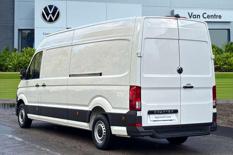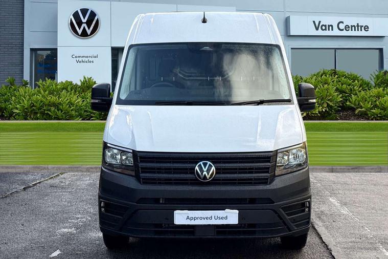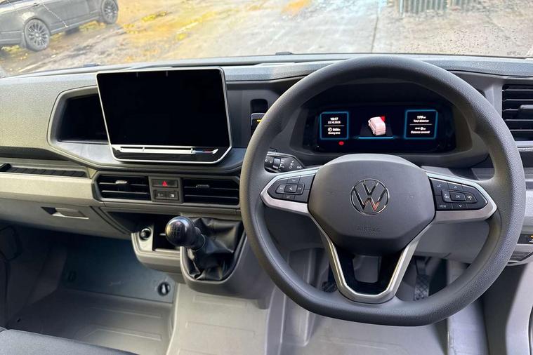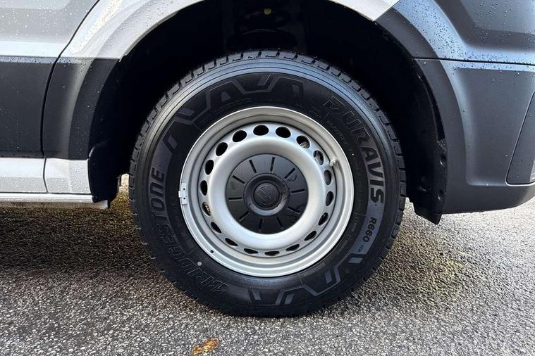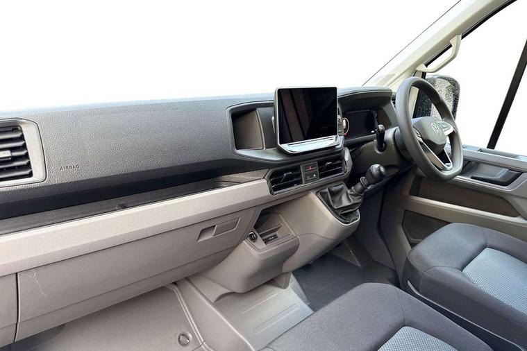 Advanced driver attention and drowsiness monitor, Blind spot monitor, Bluetooth, Digital clock, Digital cockpit with active Info display, Dynamic road sign display, E-call + We connect basic preparation, Forward collision warning with warning and braking reaction to vehicles, pedestrians and cyclists, Front assist including city emergency braking, Instrument cluster, Lane keeping assist, Lights on warning buzzer, Locking fuel cap, Rev counter, Roof console for interior lighting control, Service indicator, Speedometer, USB socket at top of windscreen, Wireless charging, 2 USB C ports in dashboard, DAB Radio, Auto low beam mode, Leaving home function and manual coming home function, Black unpainted plastic front bumper, Cab doors, Convex and wide angle mirror, Driver seatbelt warning light, Electric windows, Heat insulating glass, Indicators in front door mirrors, One towing eye in front, Rear badges, Special identification plate, Touch panel control for exterior lights, Unpainted radiator grille, Windscreen wiper auto control with light and rain sensor, Air recirculation system, Ashtray, Centre console storage tray, CFCU preparation, Charcoal filter, Document holder on centre console, Drinks holders, Electromechanical Servotronic steering, Electronically controlled heating system, Fully adjustable suspension type driver seat, Height adjustable head restraints, Height and reach adjustable steering wheel, Illuminated glove compartment with lockable lid, Interior light, including 2 reading lights, Interior light, switchable by door, Jack and tool kit, Preparation for interface for external use with terminal block, Storage compartments in doors and in step, right, Storage tray on dashboard, Two 12V outlets in the cab (in the dashboard), Without rear side trim panel passenger load compartment, Non-smokers pack - Crafter, 3 point inertia reel belt on all seats, Automatic hazard light with emergency braking, Crosswind assist, Driver and front passenger airbag with front passenger airbag deactivation, Height adjustable seatbelts for outer cab seats, 1 rigid key, Central locking system with Keyless Go without SAFELOCK entry - Keyless entry and start, Engine immobiliser, ABS, Automatic post collision braking system, EBA, EBD, EDL, Electronic parking brake - hill hold control, ESP, Front disc brakes, HBA, Hill start assist, Start and stop system with regenerative braking, TCS, Hub cap covers,